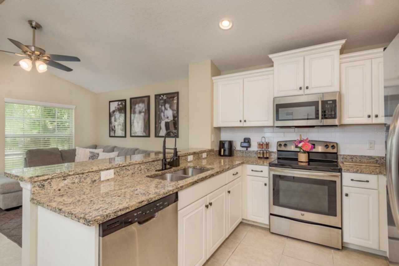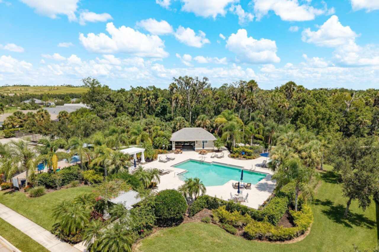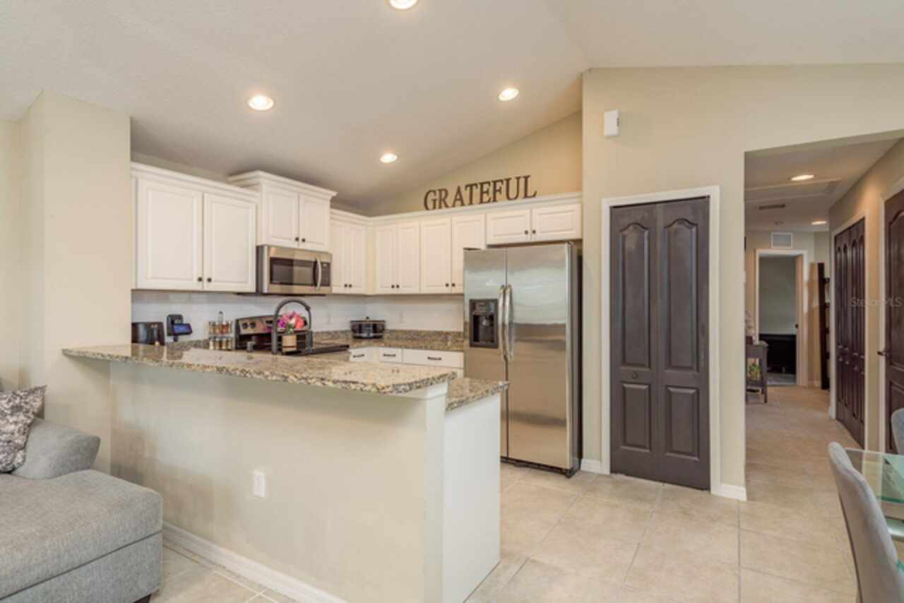 Welcome to 6405 Autumn Woods Way, a beautifully maintained 2-bedroom, 2-bathroom corner-lot home in the highly desirable GATED COMMUNITY of Woodbrook. Built in 2013, this single-story residence offers 1, 080 sqft. of thoughtfully designed living space, combining modern finishes with a warm, inviting atmosphere. From the moment you arrive, the charming covered front porch, manicured landscaping, and corner-lot setting create fantastic curb appeal. Step inside to an OPEN-CONCEPT FLOOR PLAN with soaring ceilings, tray accents, and large windows that fill the home with natural light. The spacious living and dining areas flow seamlessly into the kitchen, which features GRANITE COUNTERTOPS, STAINLESS STEEL APPLIANCES, a breakfast bar, SOLID WOOD CABINETRY, and ample storage—ideal for both everyday living and entertaining. The primary suite offers a peaceful retreat with a WALK-IN CLOSET and a private en-suite bath featuring DUAL VANITIES, solid-surface counters, and a spacious walk-in shower. The second bedroom is generously sized and perfect for guests or a home office, with an adjacent full bathroom. Additional highlights include an INTERIOR LAUNDRY AREA with WASHER AND DRYER INCLUDED, ENERGY EFFICIENT WINDOWS, and ceiling fans throughout. Outside, enjoy your morning coffee on the covered front porch or relax in the private rear courtyard. A rear-entry 2-car garage with a paved driveway adds convenience and maintains the home’s attractive streetscape. Residents of Woodbrook enjoy a RESORT-STYLE COMMUNITY POOL, shaded cabanas, a park, playground, and scenic sidewalks—all maintained with low HOA fees and no CDD. This pet-friendly neighborhood is perfectly located just minutes from shopping, dining, I-75, University Town Center, and the beautiful Gulf Coast beaches. This move-in ready home is the perfect combination of comfort, style, and location—ready for you to make it your own!