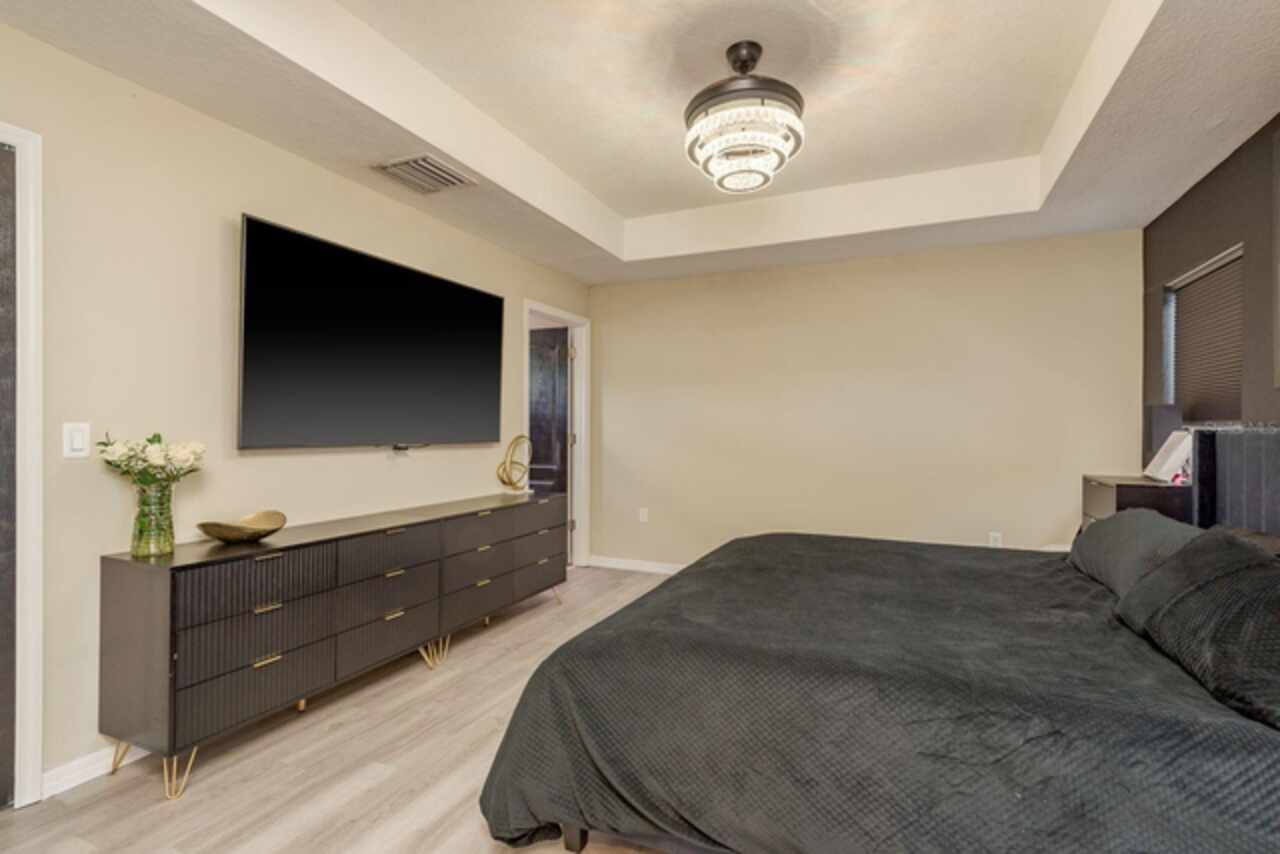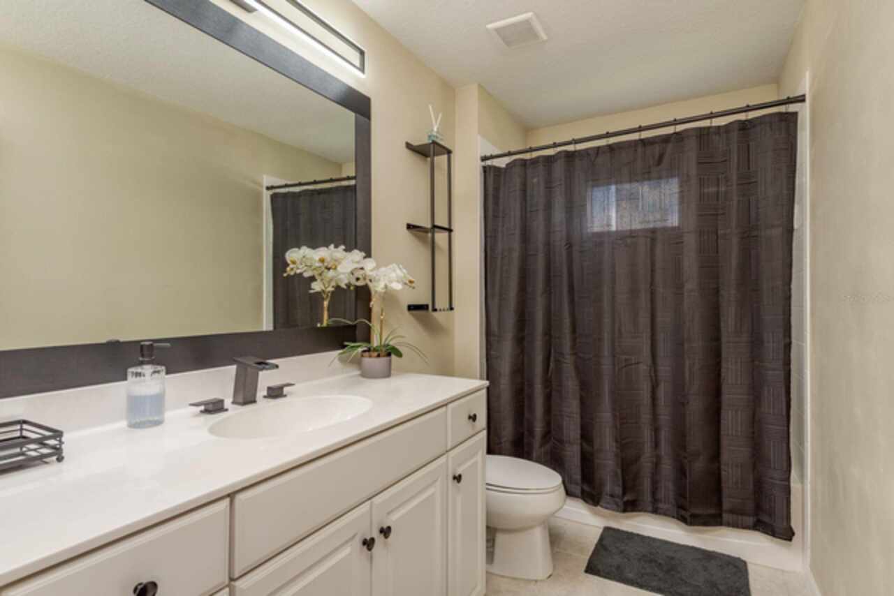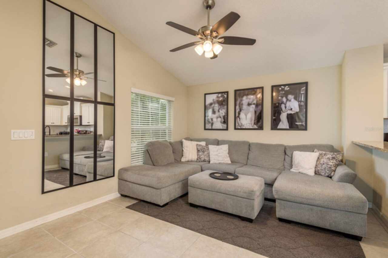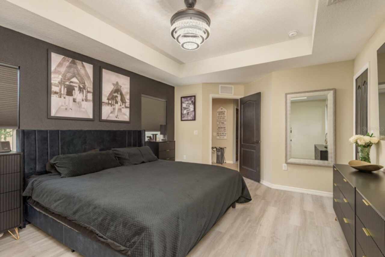 Welcome to 6405 Autumn Woods Way, a beautifully maintained 2-bedroom, 2-bathroom corner-lot home in the highly desirable GATED COMMUNITY of Woodbrook. Built in 2013, this single-story residence offers 1, 080 sqft. of thoughtfully designed living space, combining modern finishes with a warm, inviting atmosphere. From the moment you arrive, the charming covered front porch, manicured landscaping, and corner-lot setting create fantastic curb appeal. Step inside to an OPEN-CONCEPT FLOOR PLAN with soaring ceilings, tray accents, and large windows that fill the home with natural light. The spacious living and dining areas flow seamlessly into the kitchen, which features GRANITE COUNTERTOPS, STAINLESS STEEL APPLIANCES, a breakfast bar, SOLID WOOD CABINETRY, and ample storage—ideal for both everyday living and entertaining. The primary suite offers a peaceful retreat with a WALK-IN CLOSET and a private en-suite bath featuring DUAL VANITIES, solid-surface counters, and a spacious walk-in shower. The second bedroom is generously sized and perfect for guests or a home office, with an adjacent full bathroom. Additional highlights include an INTERIOR LAUNDRY AREA with WASHER AND DRYER INCLUDED, ENERGY EFFICIENT WINDOWS, and ceiling fans throughout. Outside, enjoy your morning coffee on the covered front porch or relax in the private rear courtyard. A rear-entry 2-car garage with a paved driveway adds convenience and maintains the home’s attractive streetscape. Residents of Woodbrook enjoy a RESORT-STYLE COMMUNITY POOL, shaded cabanas, a park, playground, and scenic sidewalks—all maintained with low HOA fees and no CDD. This pet-friendly neighborhood is perfectly located just minutes from shopping, dining, I-75, University Town Center, and the beautiful Gulf Coast beaches. This move-in ready home is the perfect combination of comfort, style, and location—ready for you to make it your own!