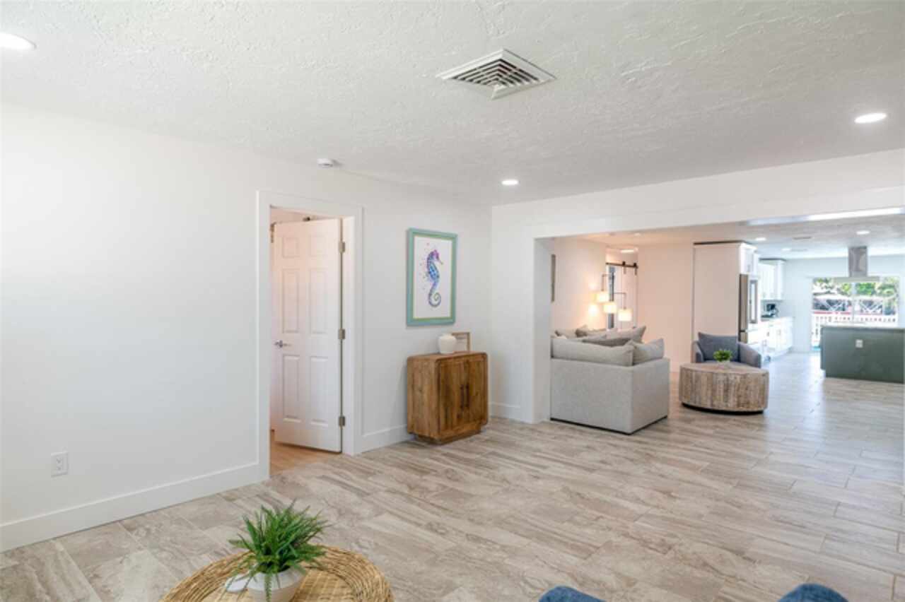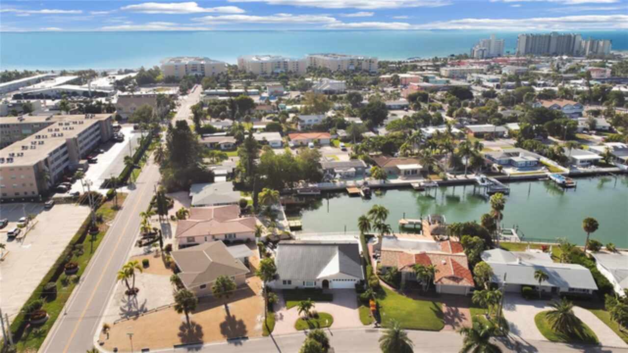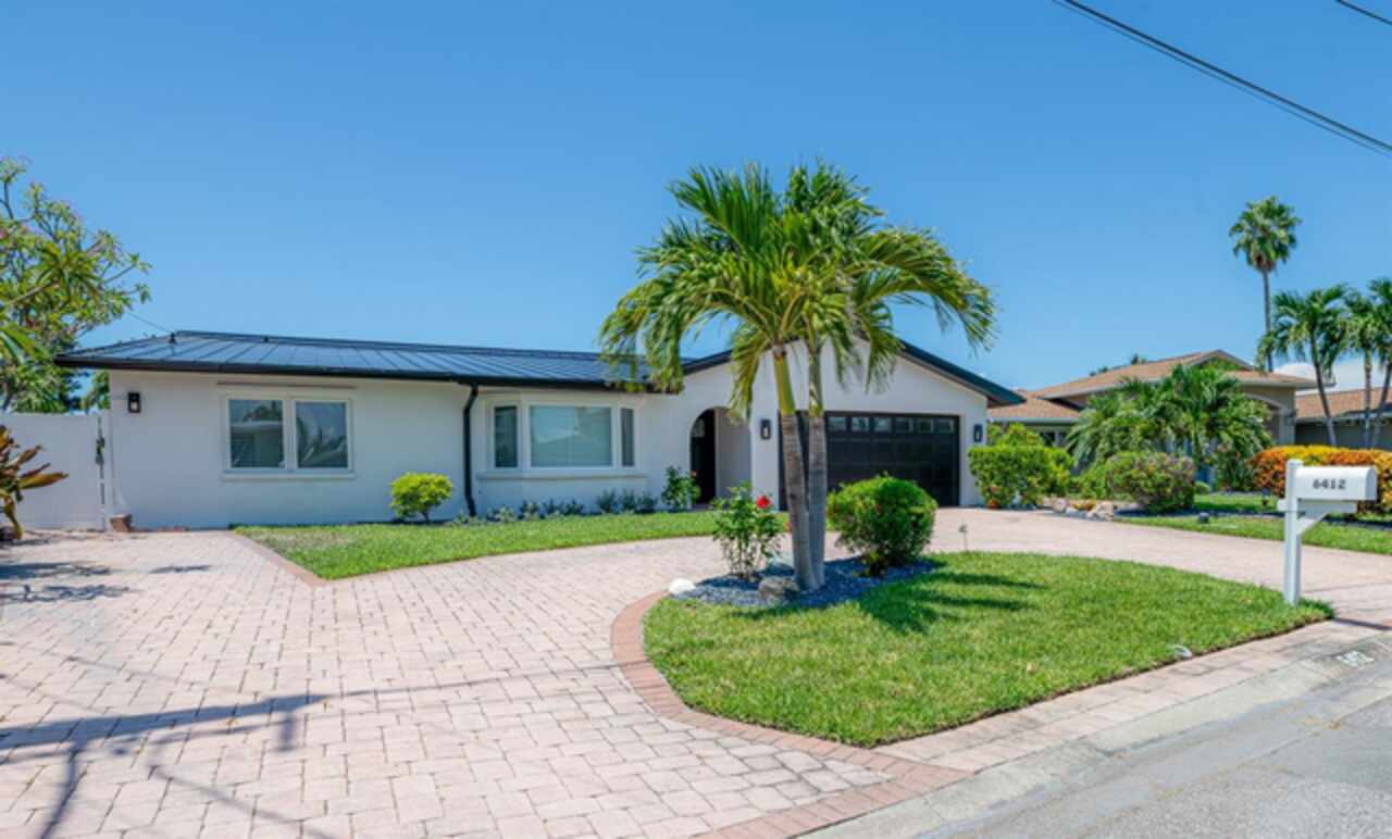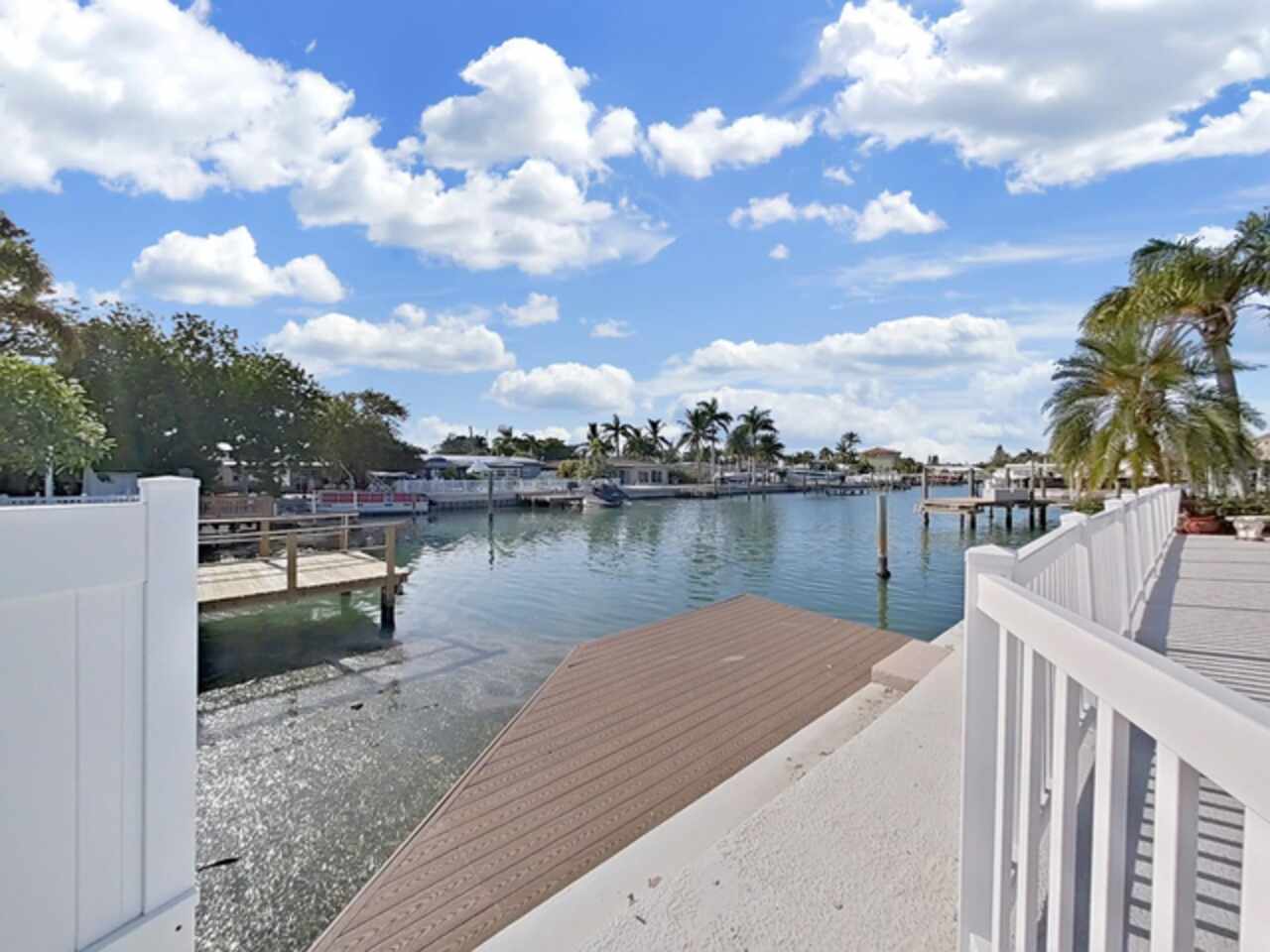 Looking for the perfect beach investment property or a beautiful home to call your own? This is your chance to own a turn-key waterfront retreat just a five-minute walk to one of the top-rated beaches in the country! This exceptional four-bedroom, three-bathroom executive home boasts a modern open floor plan with a split-bedroom design, including two spacious master suites. Upon entry, you’ll be greeted by abundant natural light and a bright, inviting atmosphere. Inside, you’ll find brand-new kitchen and bathroom cabinetry, stainless steel appliances, fantasy brown granite countertops, and an apron sink — all designed for style and function. The living, dining, and kitchen areas flow seamlessly, making entertaining effortless, and the oversized island is perfect for casual gatherings or informal dinners. Enjoy beautiful views from the kitchen and dining area and primary bedroom, extending out to the pool and beyond to the saltwater canal. The home has been thoughtfully updated throughout with new flooring in the secondary bedrooms, a new AC system, new water heater, and all-new pool equipment. The entire home has been completely rewired for modern efficiency and safety, and fresh landscaping adds to its curb appeal. The oversized master suite is a private retreat, complete with a sitting area, sliding doors to the pool and canal, a walk-in closet, and a beautifully updated en-suite bath. Step outside to enjoy your own Florida paradise featuring a large saltwater pool, sunny lounging areas, a relaxing pergola, and gorgeous water views. This home has also been a highly successful vacation rental, generating $134, 000 in gross bookings in 2022, and can be sold fully furnished for a seamless transition — perfect for investors or those seeking a personal getaway. Nestled in the desirable Three Palm Point subdivision on a quiet dead-end street, this home offers the perfect combination of modern upgrades, investment potential, and a lifestyle that captures the very best of Florida living.