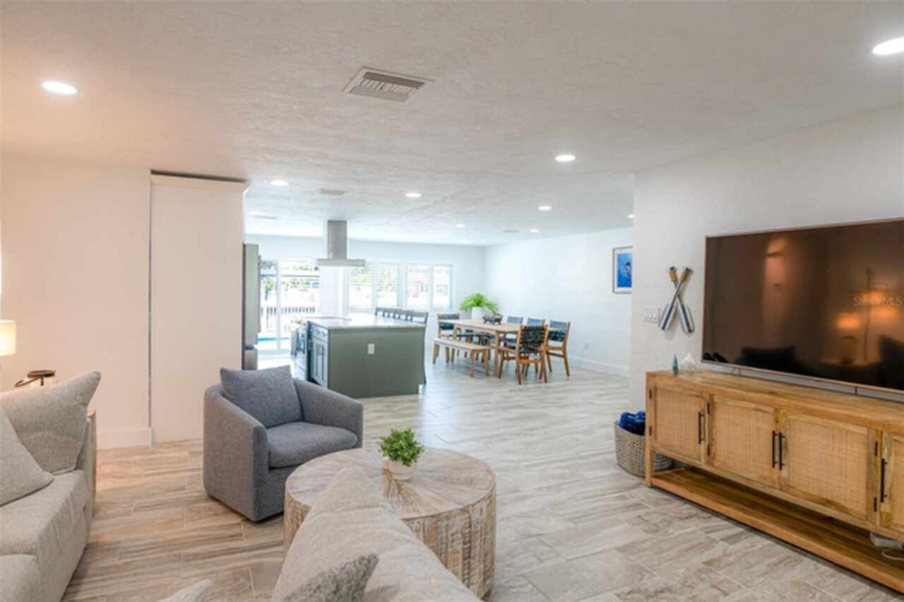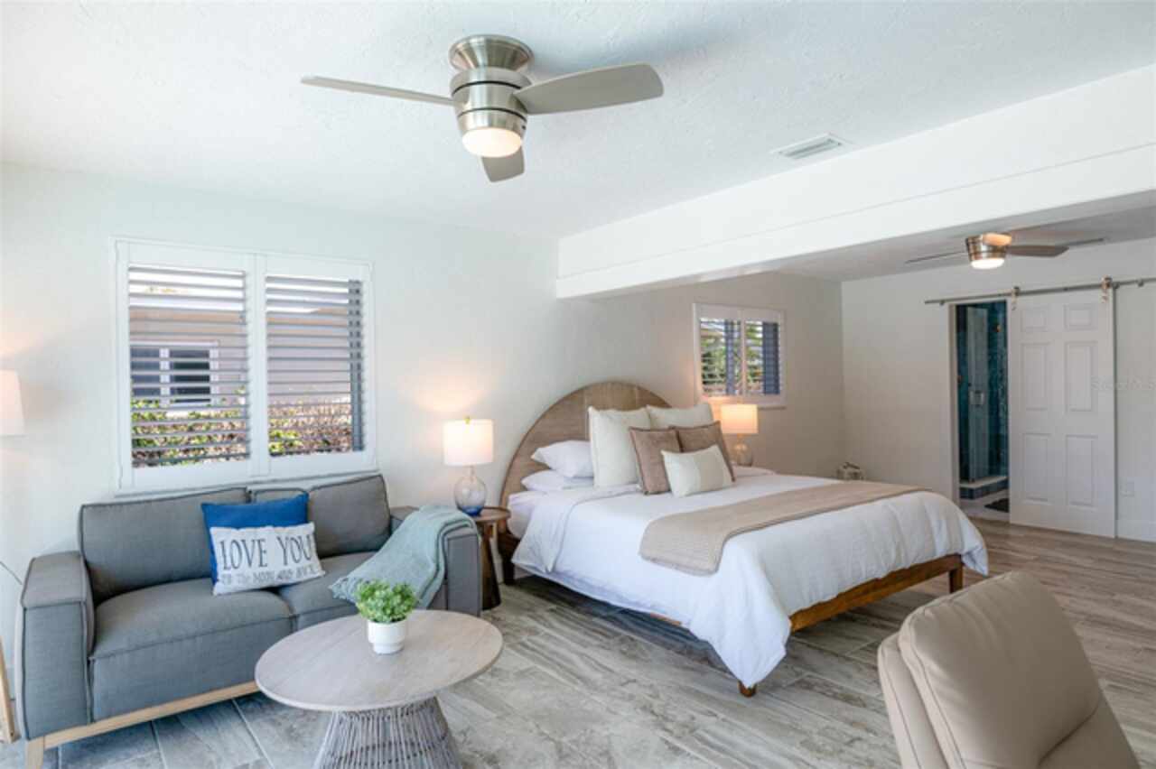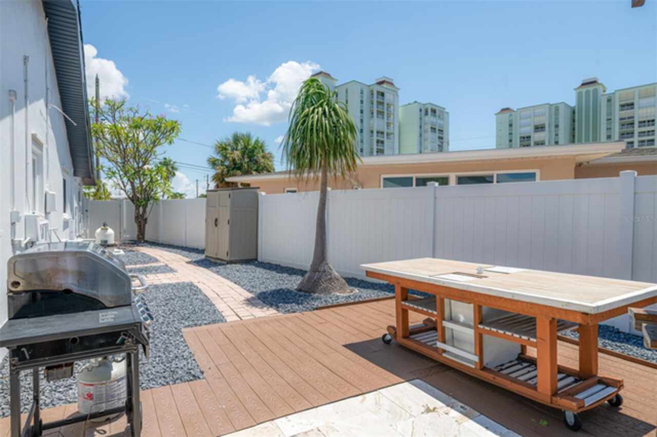 Looking for the perfect beach investment property or a beautiful home to call your own? This is your chance to own a turn-key waterfront retreat just a five-minute walk to one of the top-rated beaches in the country! This exceptional four-bedroom, three-bathroom executive home boasts a modern open floor plan with a split-bedroom design, including two spacious master suites. Upon entry, you’ll be greeted by abundant natural light and a bright, inviting atmosphere. Inside, you’ll find brand-new kitchen and bathroom cabinetry, stainless steel appliances, fantasy brown granite countertops, and an apron sink — all designed for style and function. The living, dining, and kitchen areas flow seamlessly, making entertaining effortless, and the oversized island is perfect for casual gatherings or informal dinners. Enjoy beautiful views from the kitchen and dining area and primary bedroom, extending out to the pool and beyond to the saltwater canal. The home has been thoughtfully updated throughout with new flooring in the secondary bedrooms, a new AC system, new water heater, and all-new pool equipment. The entire home has been completely rewired for modern efficiency and safety, and fresh landscaping adds to its curb appeal. The oversized master suite is a private retreat, complete with a sitting area, sliding doors to the pool and canal, a walk-in closet, and a beautifully updated en-suite bath. Step outside to enjoy your own Florida paradise featuring a large saltwater pool, sunny lounging areas, a relaxing pergola, and gorgeous water views. This home has also been a highly successful vacation rental, generating $134, 000 in gross bookings in 2022, and can be sold fully furnished for a seamless transition — perfect for investors or those seeking a personal getaway. Nestled in the desirable Three Palm Point subdivision on a quiet dead-end street, this home offers the perfect combination of modern upgrades, investment potential, and a lifestyle that captures the very best of Florida living.