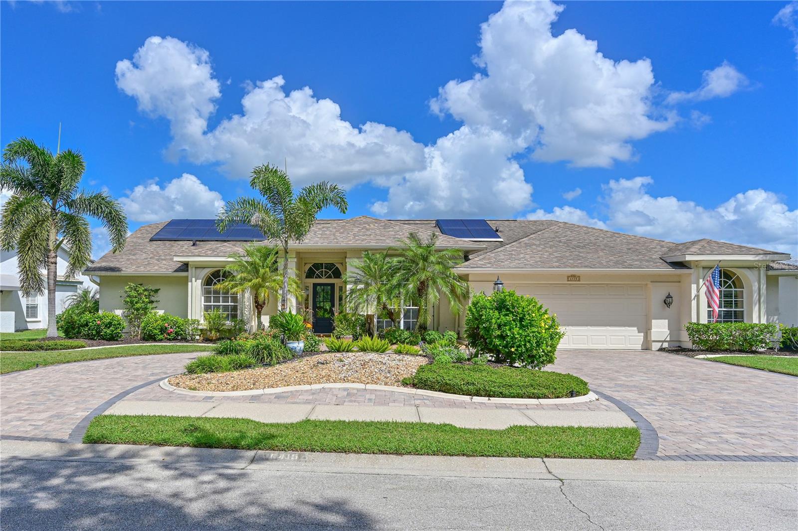 Love where you live...Charm, Elegance, Sophistication and Comfort are some of the words that come to mind in this beautifully updated three-bedroom, three full bath home with spacious office/bonus room. Positioned perfectly on one of Tara's largest lots, lake views out back and lush Florida landscaping out front, offering privacy, space and awesome views of the signature 16th hole of our championship golf course. Welcome to Tara Golf and Country Club, one of Southwest Florida's premier private golf communities- where resort-style living meets modern luxury. This home features open concept with elegant tile flooring throughout the living area. Gourmet eat-in kitchen featuring quartz countertops, custom cabinetry and KitchenAid stainless steel appliances. Two sinks for all your cooking and prep needs. Large island and lots of storage with roll out shelving.Updated in 2024. Family Room has triple pocket sliders to the lanai, an electric fireplace and decorative shiplap framing the room. Living room and dining room are showcased with crown molding, oversized windows and triple sliders that pocket open. Luxurious primary suite with vaulted ceiling, sliders to the lanai, 2 walk-in closets, updated ensuite bath with walk-in shower, double sinks and private water closet. Split floor plan with two guest bedrooms, one having its own en suite bath with walk-in shower. Custom closets. Plantation shutters in all bedrooms, automatic shades in living and dining room. Back bath has door to the pool area for the convience for your swimmers. Bonus room off the garage is presently being used as a home office/ sewing room. Would be great for an exercise room or hobby space as well. Expansive picture screen lanai with heated salt water pool and spa. Pool and spa resurfaced in 2024 with Pebble-Tec. New salt cell 2025. Full outdoor kitchen with gas cooktop, sink, refrigerator and Fire Chef gas grill. 80 gallon propane gas tank, in ground, for outdoor kitchen and pool/spa heater. Large under cover area for your dining and entertaining during any type of weather. Extended area with double door entry for golf cart parking. Tesla solar panels provide up to 85% of the homes electricity, offering incredible energy effciency. Owner owned. Whole home water filtration system for clean, high-quality water throughout. Solar panels for the pool.2024 Hurricane shutters across the front of the house 2025.(Storm Smart) AC 2025! Solar guard tinting on all the windows for sun protection and energy efficiency. Newer fans throughout the home. Electric panel replaced 2019, Fast charge electric car plug installed 2024 in garage. New garage door Smart garage door opener 2025. Epoxy garage floor and new garage door 2020. Roof 2014. Roof Max treatment 2025 extending the life of the shingles guaranteed 5 years. Paver circular driveway. Comes with a Class A membership to TGCC. 18 hole championship golf course which was renovated in 2023. Brand new Pickle Ball Facility with 5 courts 2025. Bocce, Tennis, Full Fitness Center and Exercise Classes, Community Pool, and fantastic clubhouse with active grill room/bar, dining and loads of events to fill your calendar all year long.The best bang for your buck for all you golfers looking for the best golf course for the best price! No CDDs. Welcome to Taradise.