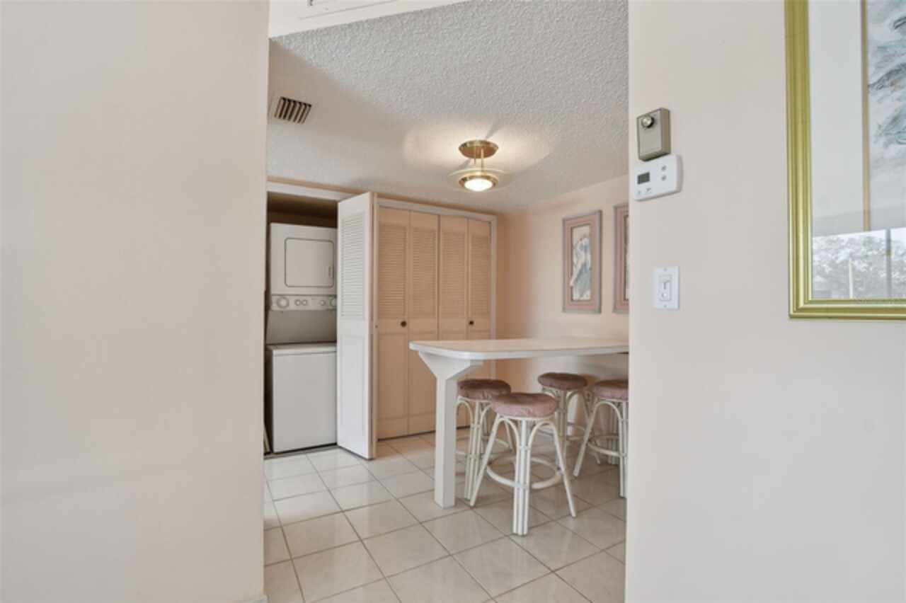 BEST VALUE on the Island for SPACE, LAUNDRY in Unit, and COVERED Parking!!! Welcome Home to Island Point Condominiums, a WATERFRONT Complex! This building offers spacious rooms with large windows, creating a light and bright ambiance. While there's no balcony, the living room features Floor-to-Ceiling Windows. Additionally, a COVERED parking space #47 is part of the package! No Hurricane or water damage here, high and dry! Enjoy a range of amenities, including a waterfront pool, boat docks, when available (first-come, first-served for residents), a fishing dock, and a kayak launch with storage. Island Estates provides a self-contained community atmosphere, yet you're just a Jolley Trolley ride away from the vibrant Clearwater Beach festivities year-round. The building, constructed with block construction, has recently completed a painting/envelope project. Additional upgrades include new elevators, meeting the criteria required for valuable improvements. Island Point allows one rental per year with a cap of nine at a time, requiring one year of ownership and an application and approval process for proposed tenants. The condominium allows NEW Buyers to have one cat or dog (with restrictions). New owners are welcome to bring their furry friend, but are not permitted to replace them, per condo documents and rules. This location is unbeatable – just minutes from the beach and within walking distance to dining, a bar and grill, a grocery store, UPS, a nail salon, and the Clearwater Marine Aquarium. Whether you seek a great condo getaway, a conclusion to your 1031 Exchange, or a full-time residence, this is the perfect opportunity! What are you waiting for? Come Live the Lifestyle, Come Live on the Island!