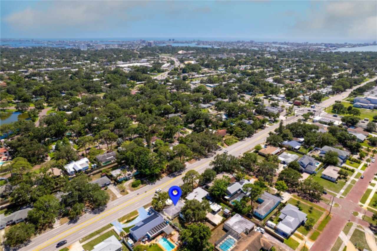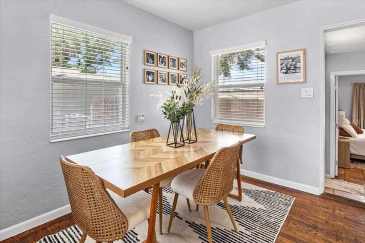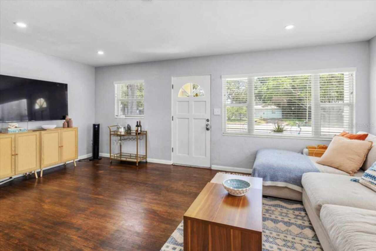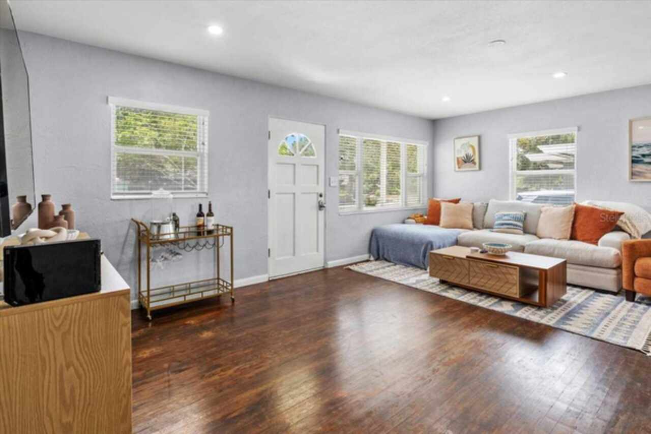 Location! Location! Discover this charming 3-bedroom, 2.5-bath home ideally situated between the stunning Gulf Beaches (7 minutes) and the vibrant heart of downtown (15 minutes) St. Pete! With 1, 257.94 sq ft of living space and a large fenced-in backyard, this home offers the perfect blend of comfort, function, and flexibility. Enjoy peace of mind with several major updates, including a newer HVAC (2022), updated electric panel, and a tankless hot water heater. The home also features an added laundry room and a spacious primary bath. The split floor plan includes a rear bedroom with its own private entrance from the side and backyard, a full en-suite bath, and sliding glass doors—ideal for guests, in-laws, or rental income potential. The open-concept living area is centered around a beautifully updated kitchen featuring stainless steel appliances, quartz countertops, and a long breakfast bar—perfect for entertaining. The roof was replaced in 2013, and there's plenty of off-street parking. Nestled in a prime location close to shopping, restaurants, and entertainment, this home offers convenience and lifestyle in one fantastic package. Don’t miss this one!