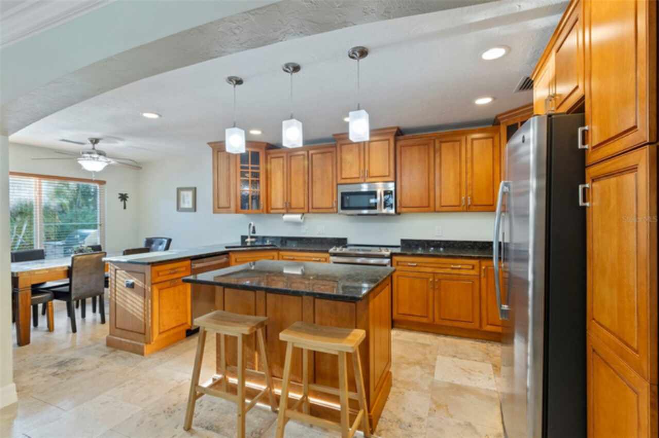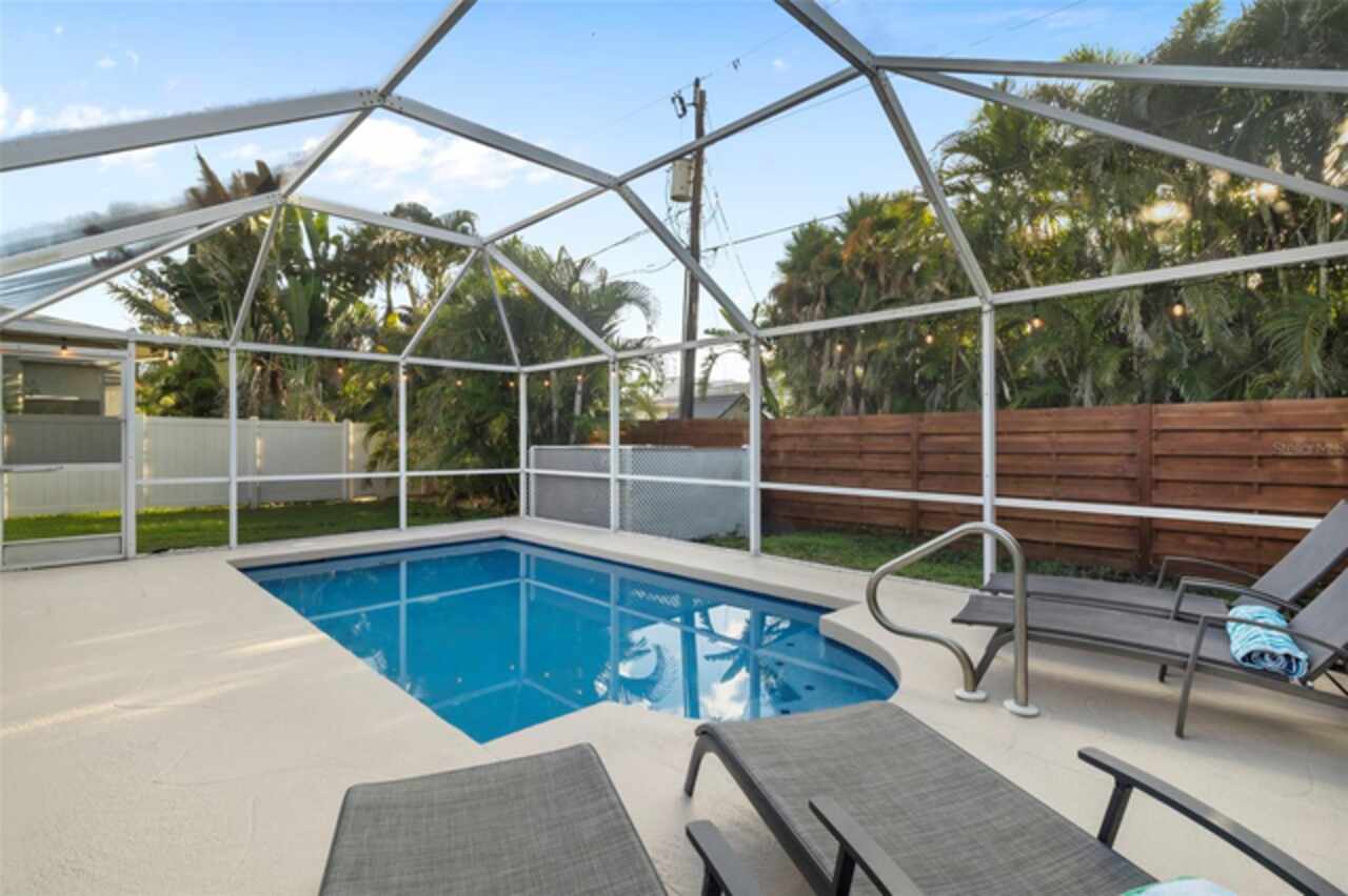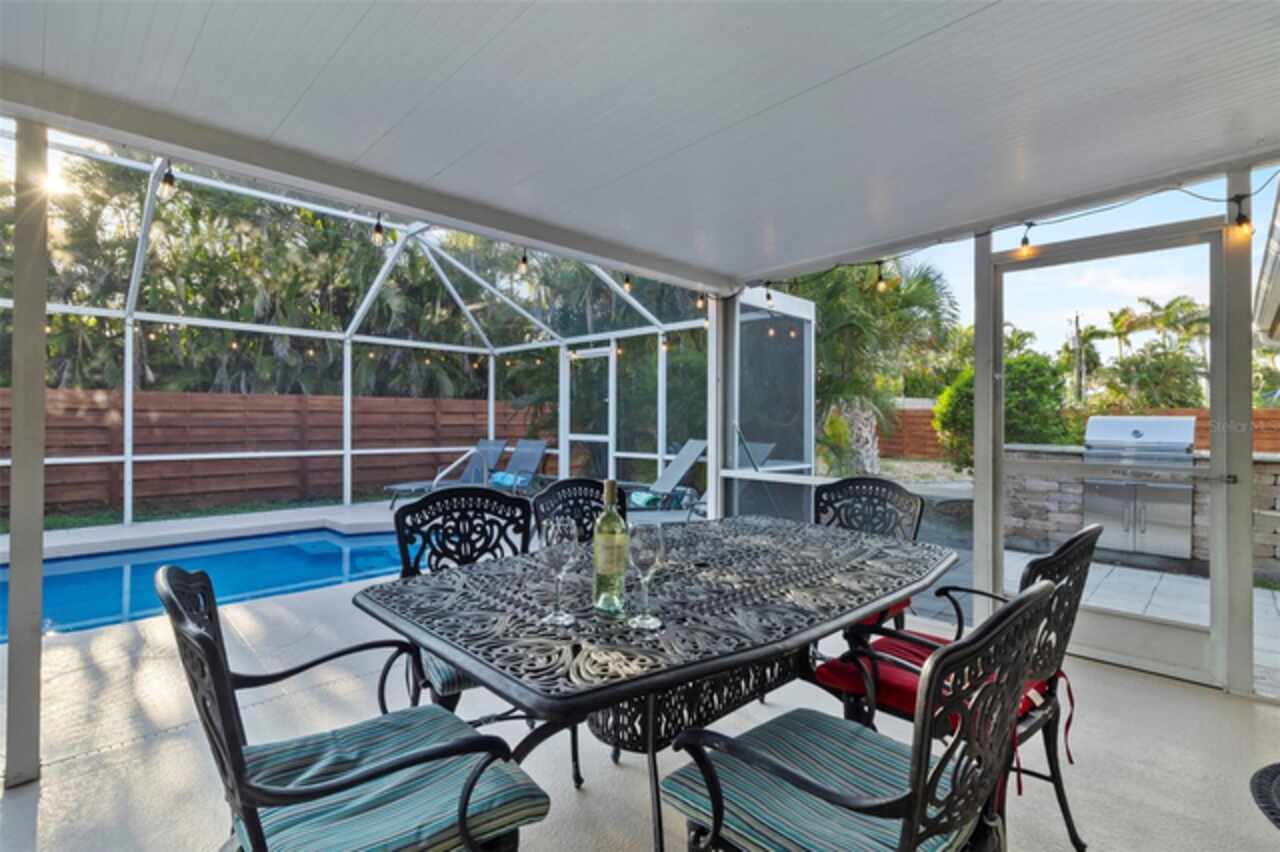 COMFORT-SPACE & LOCATION...This spacious and inviting residence features 3 generously sized bedrooms plus a versatile bonus room—perfect for a home office, playroom, or a 4th bedroom. The open floor plan offers multiple sitting areas, ideal for both relaxing and entertaining. The eat-in kitchen is a chef’s delight, complete with stainless steel appliances, a center island, and plenty of room for gathering. Cozy up in the den for movie nights or family game time. Step outside to your own tropical oasis. Enjoy the caged pool deck, surrounded by swaying palm trees, string lights, and various seating areas that create a magical ambiance. There is a built-in barbecue area and ample yard space outside of the pool cage allowing plenty of room for your dogs to run freely. The yard is fully enclosed with a brand new fence. All windows and doors are impact and full roof replacement one year ago! Additional features include indoor laundry, generous closet space, and extra outdoor storage. Located just across the bridge from Siesta Key, home to the world-famous crystal sand beach, and close to restaurants, boat rentals, and all the best of Sarasota. Whether you're looking for a full-time residence or a place for family vacations that you can rent out when not in use, this home offers the perfect blend of comfort, space, and location. Come live the Florida lifestyle in a beautiful family home where you can truly spread out and enjoy!