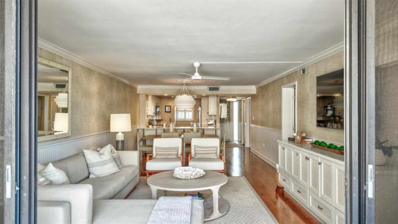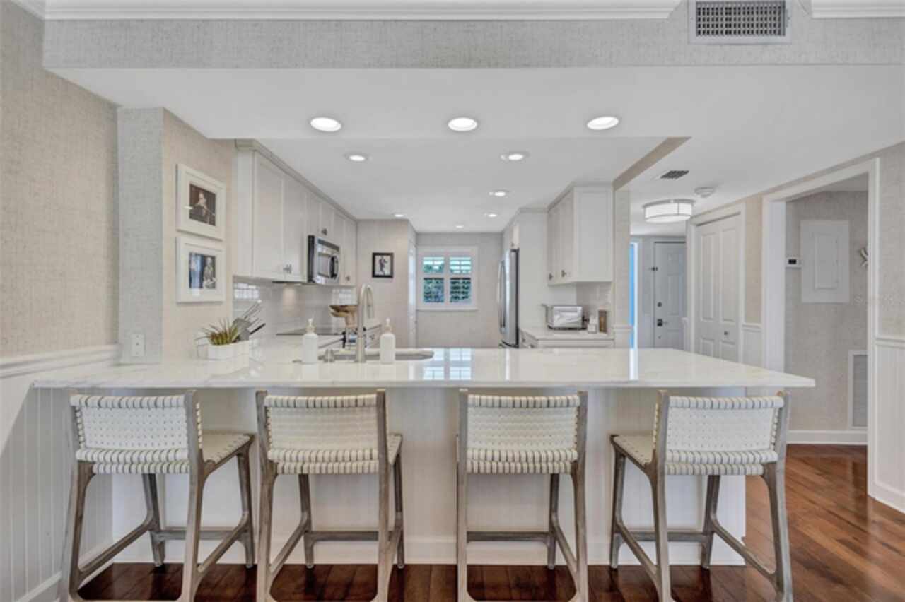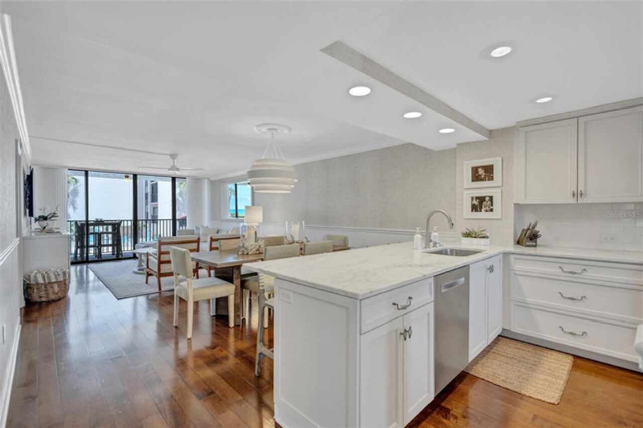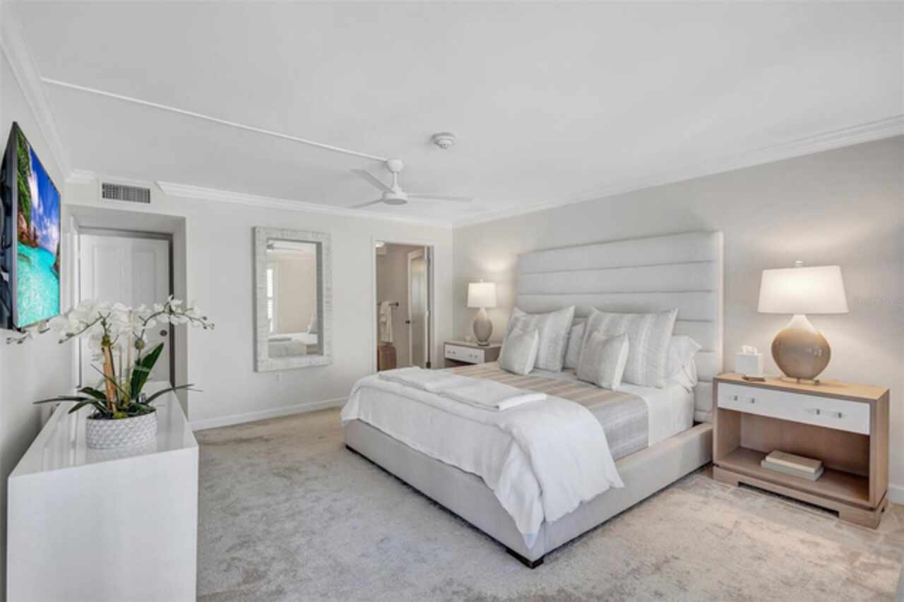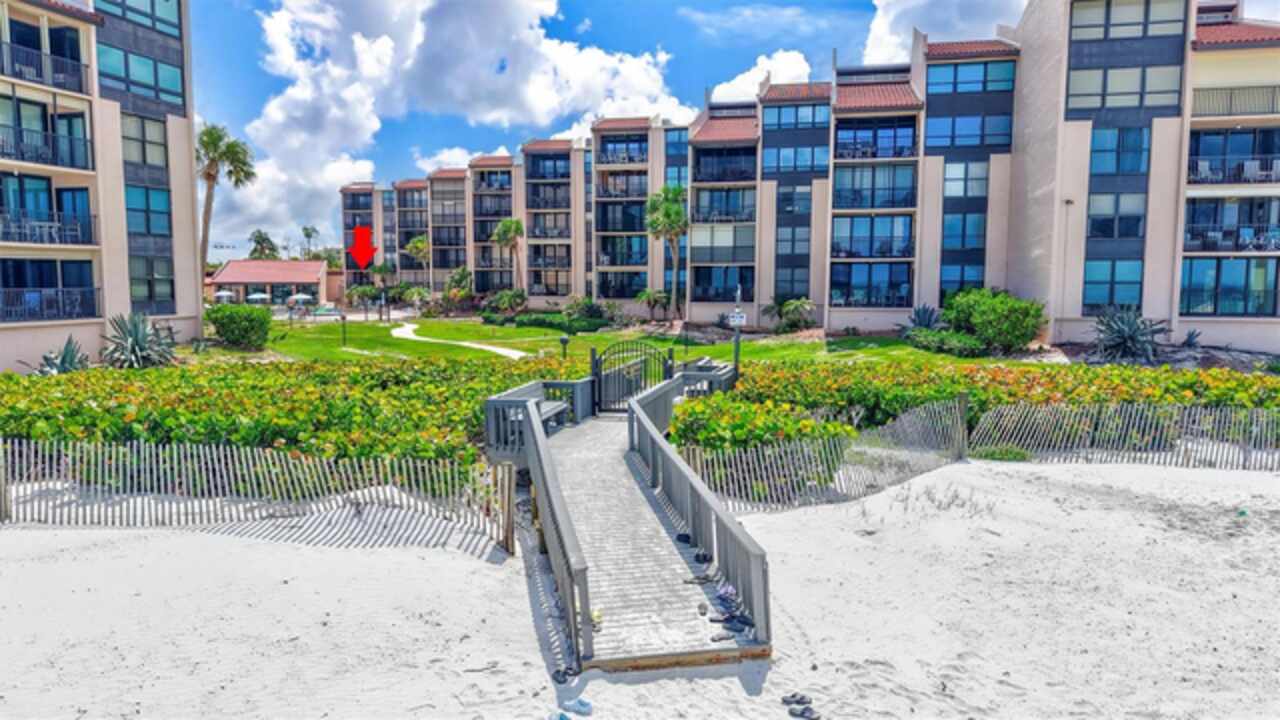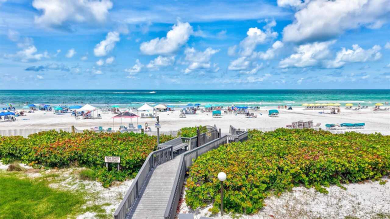Rare, exquisitely curated beachfront condo on Siesta Key. This lightly used - meticulously cared for - end unit home has never been rented, although the community allows much desired weekly rentals generating healthy investment income. Located on Crescent Beach, known for its tranquil beach vibe, enjoy 300 feet of prime location deeded beach access with quartz-crystal, powder-soft fine white sand that remains cool even on the hottest days. This two-bedroom, two-bath condo has been renovated and designed with an upscale and sophisticated feel within a light and airy beach home. All furnishings, accessories, dishes and linens included in this TURNKEY FURNISHED condo. The open floorplan is perfect for entertaining family and friends. The resort feel primary bedroom includes a large walk-in closet and oversized bathroom. The second bedroom has been redesigned to comfortably sleep 4 with ample storage. The living room, primary bedroom and balcony all feature stunning views of the beach, gulf and Siesta’s spectacular sunsets. This condo is in Siesta Breakers, a gated complex within easy walking distance of dining, shopping, and a full-service marina with boat rentals. Play a game of tennis or pickleball on the two community courts. Leave your car at home and walk or take the free Trolley to nearby Siesta Key Village. This ideal location features easy access on and off the Key allowing more time to enjoy your coastal waterfront living. Welcome home to Siesta Key.