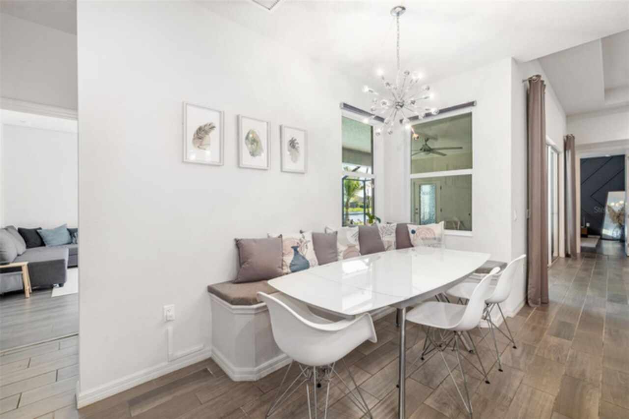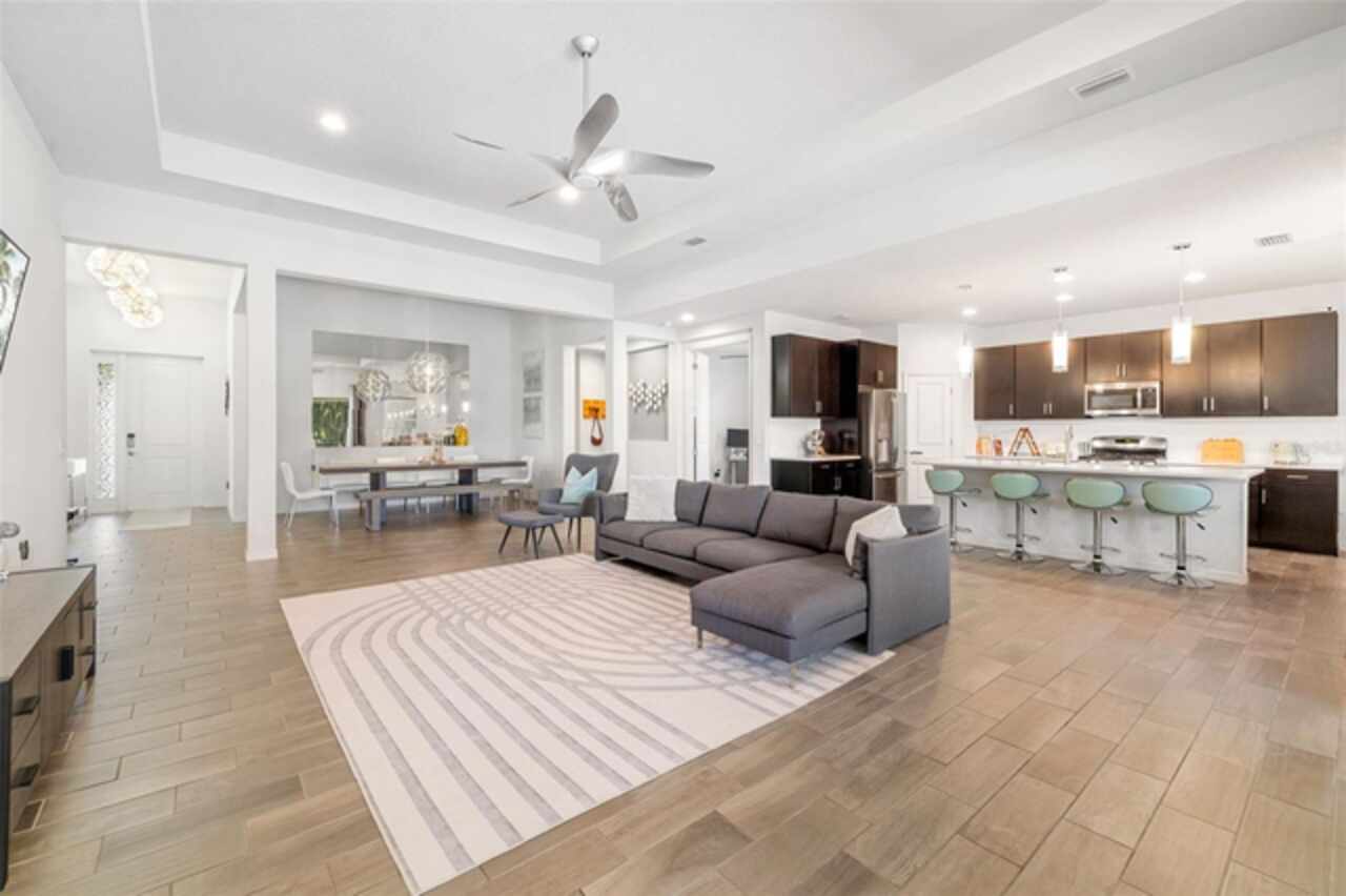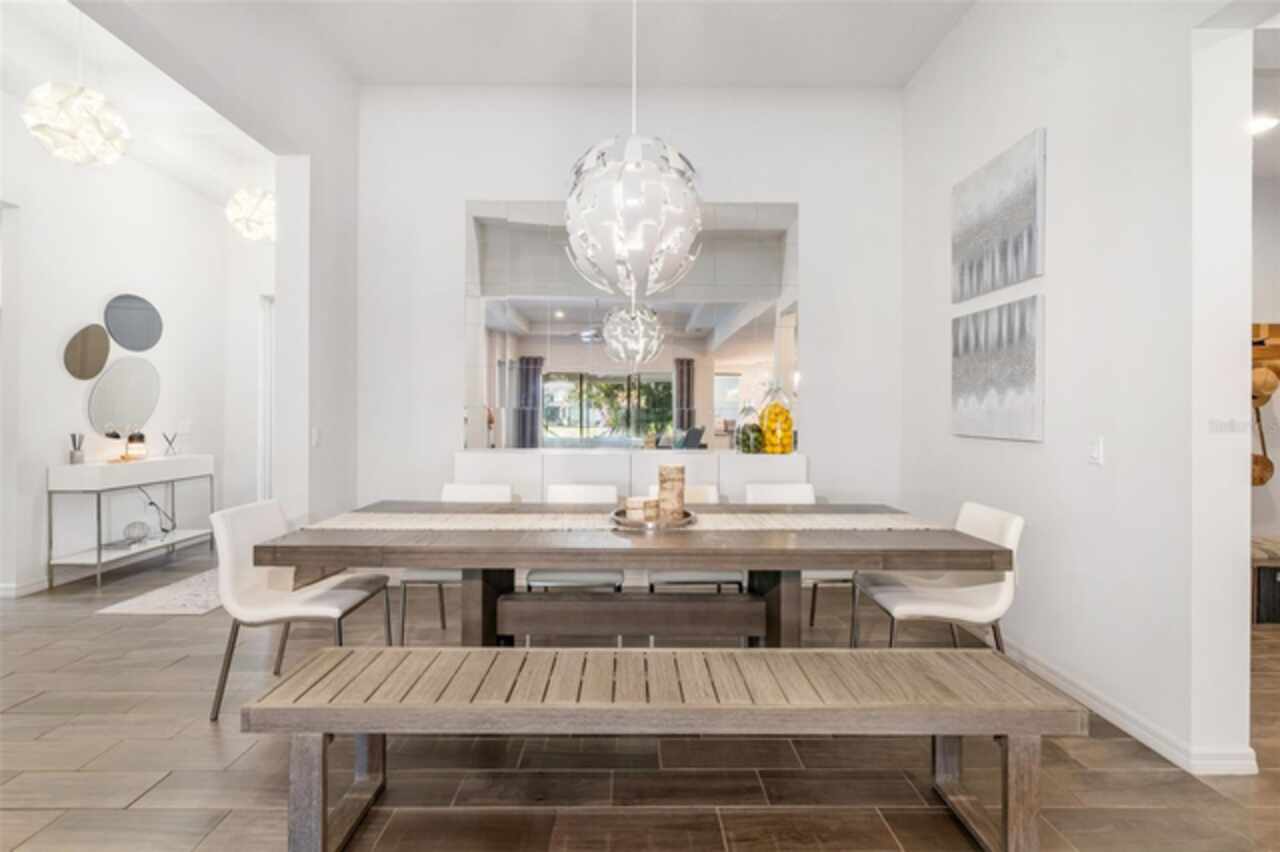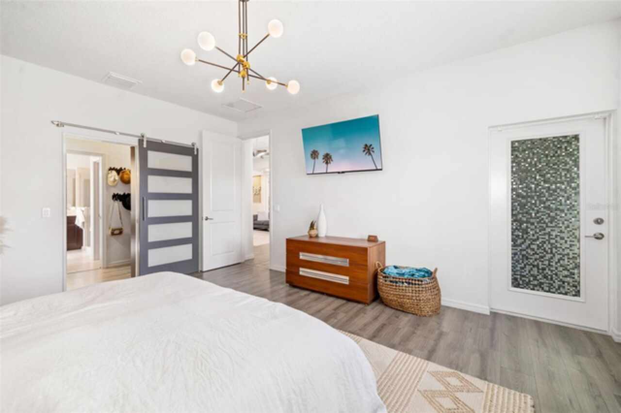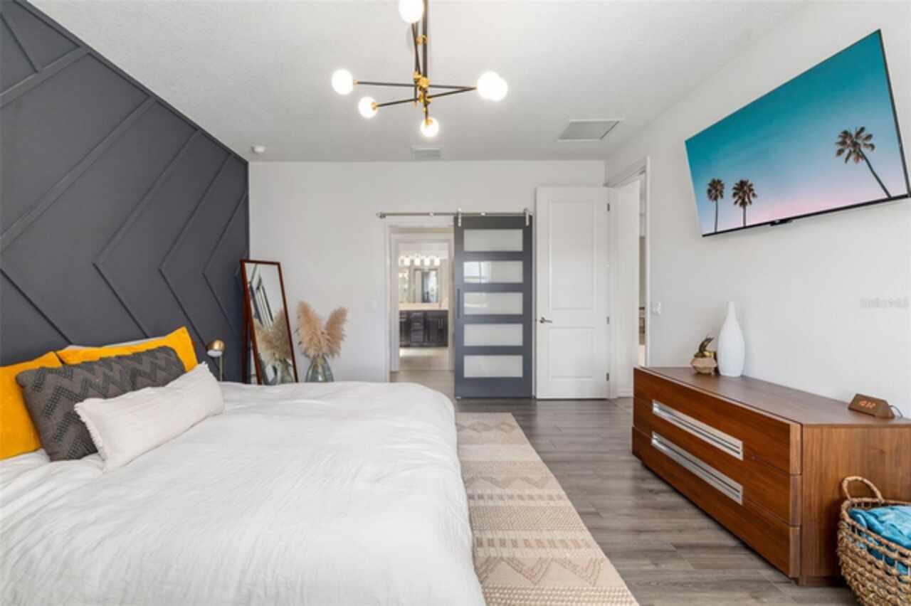 Premium private water views and an oversized corner lot set this Greyhawk Landing multigenerational Florida home apart. Built by Homes by Towne, this 4-bedroom, 2.5-bath residence, office, den space potential 5th bedroom, blends timeless design with modern comfort surrounded by lush tropical Florida palms. The open floor plan highlights tray ceilings, wood-look tile floors, and living spaces that are bright bringing in the natural light and flowing effortlessly out to the screened in lanai. Enjoy year-round living with a heated saltwater pool, large, covered areas, and serene lake views. The chef’s kitchen features quartz counters, island, gas range, and stainless appliances. The primary suite is a serene retreat with its own access to the lanai and pool, custom geometric accent wall, and designer lighting. A sliding barn door leads to the spa-like ensuite bath complete with dual sinks, a Roman walk-in shower, private water closet, makeup vanity, and a spacious walk-in closet. Additional features include engineered hardwood in bedrooms, laundry room, and 3-car garage. Greyhawk Landing, allows fencing, and residence have access to two resort-style pools, fitness centers, tennis and pickleball courts, playgrounds, trails that wind throughout the community, fishing pier, soccer and baseball fields and clubhouses, large bodies of lakes, lush tropical Florida landscaping, and frequent wildlife sightings. With easy access to Lakewood Ranch, shopping, restaurants and I-75, Gulf Coast beaches, top rated schools and colleges, IMG academy, Nathan Benderson Park, this is where everyday living feels like a vacation.