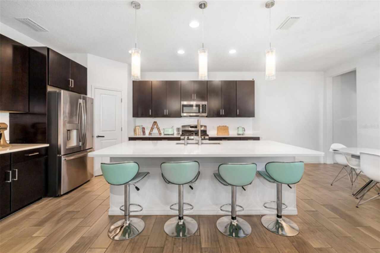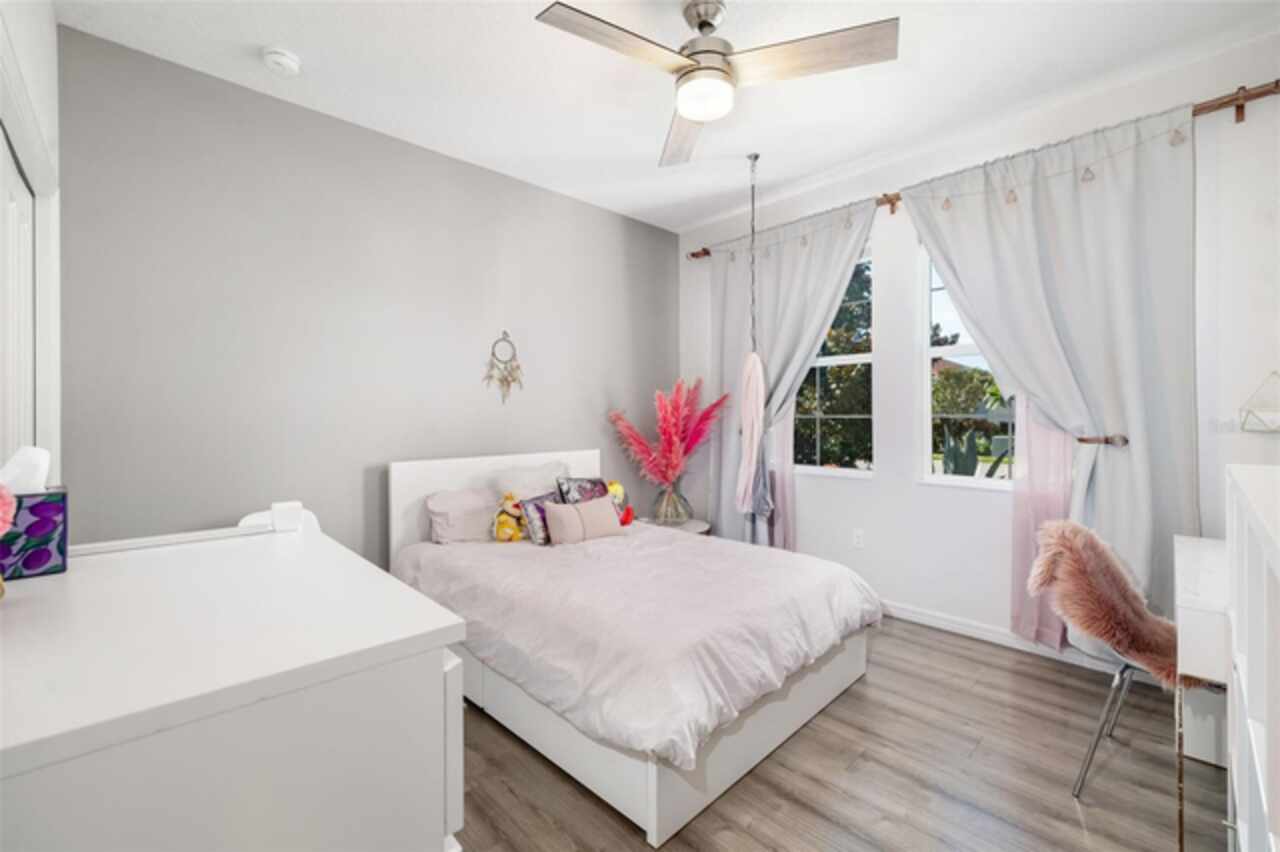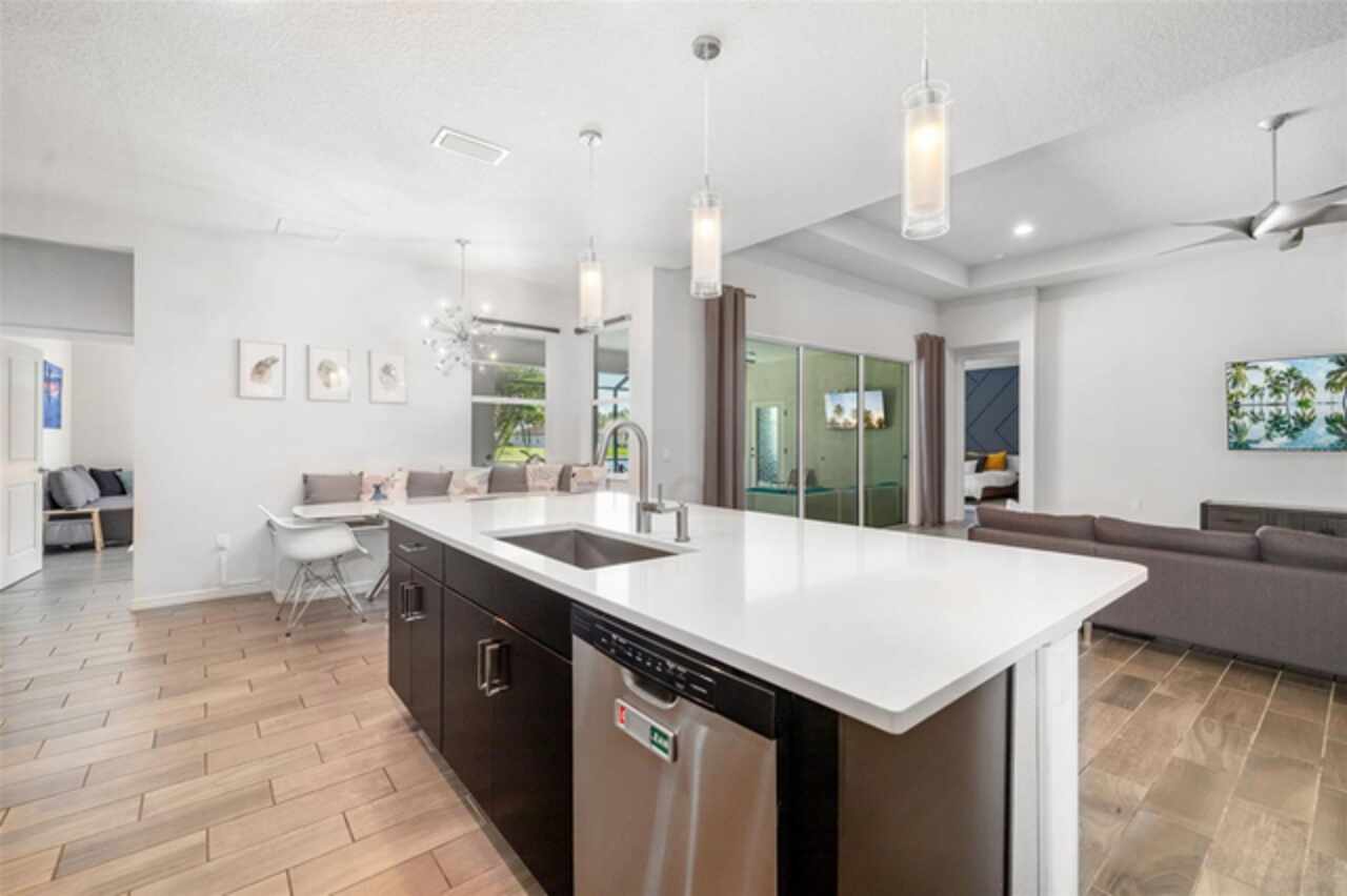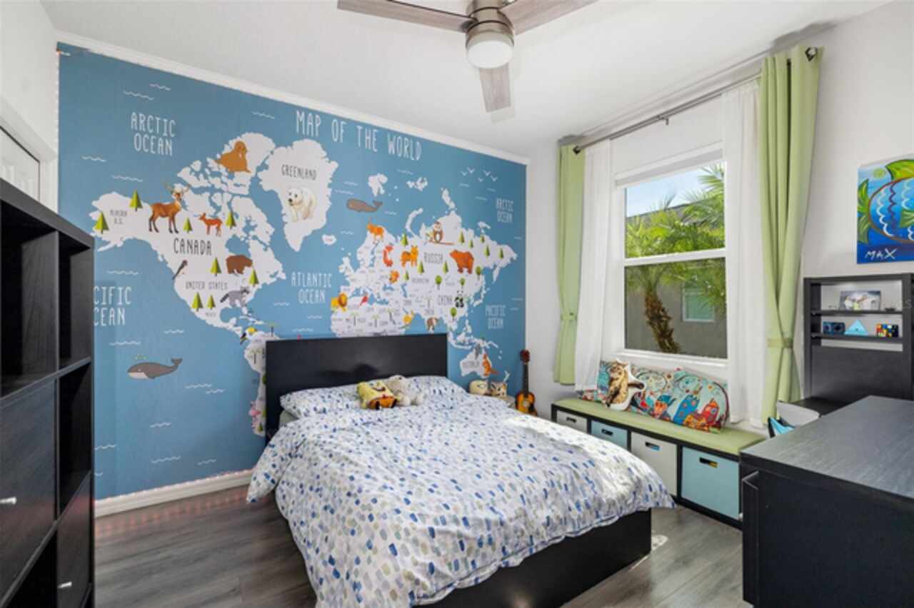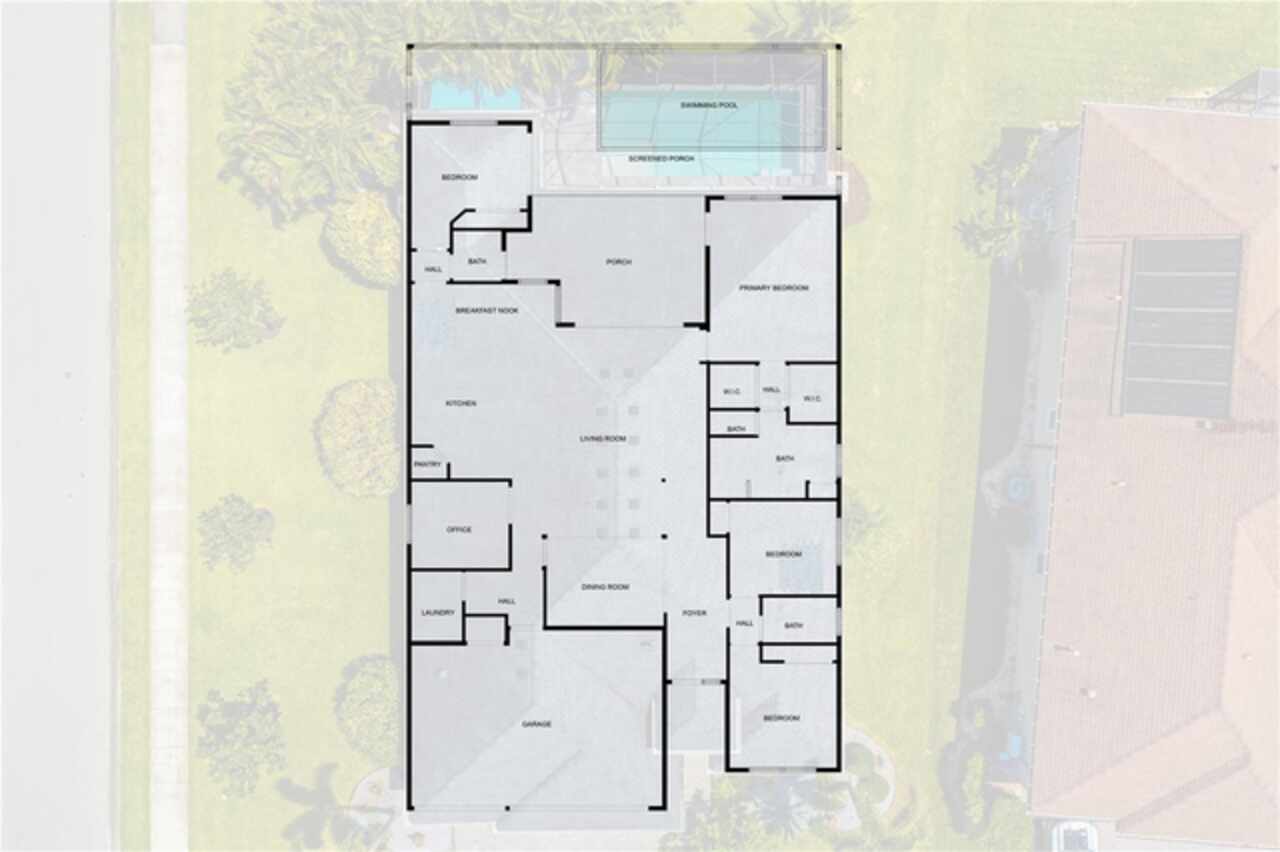 Premium private water views and an oversized corner lot set this Greyhawk Landing multigenerational Florida home apart. Built by Homes by Towne, this 4-bedroom, 2.5-bath residence, office, den space potential 5th bedroom, blends timeless design with modern comfort surrounded by lush tropical Florida palms. The open floor plan highlights tray ceilings, wood-look tile floors, and living spaces that are bright bringing in the natural light and flowing effortlessly out to the screened in lanai. Enjoy year-round living with a heated saltwater pool, large, covered areas, and serene lake views. The chef’s kitchen features quartz counters, island, gas range, and stainless appliances. The primary suite is a serene retreat with its own access to the lanai and pool, custom geometric accent wall, and designer lighting. A sliding barn door leads to the spa-like ensuite bath complete with dual sinks, a Roman walk-in shower, private water closet, makeup vanity, and a spacious walk-in closet. Additional features include engineered hardwood in bedrooms, laundry room, and 3-car garage. Greyhawk Landing, allows fencing, and residence have access to two resort-style pools, fitness centers, tennis and pickleball courts, playgrounds, trails that wind throughout the community, fishing pier, soccer and baseball fields and clubhouses, large bodies of lakes, lush tropical Florida landscaping, and frequent wildlife sightings. With easy access to Lakewood Ranch, shopping, restaurants and I-75, Gulf Coast beaches, top rated schools and colleges, IMG academy, Nathan Benderson Park, this is where everyday living feels like a vacation.
