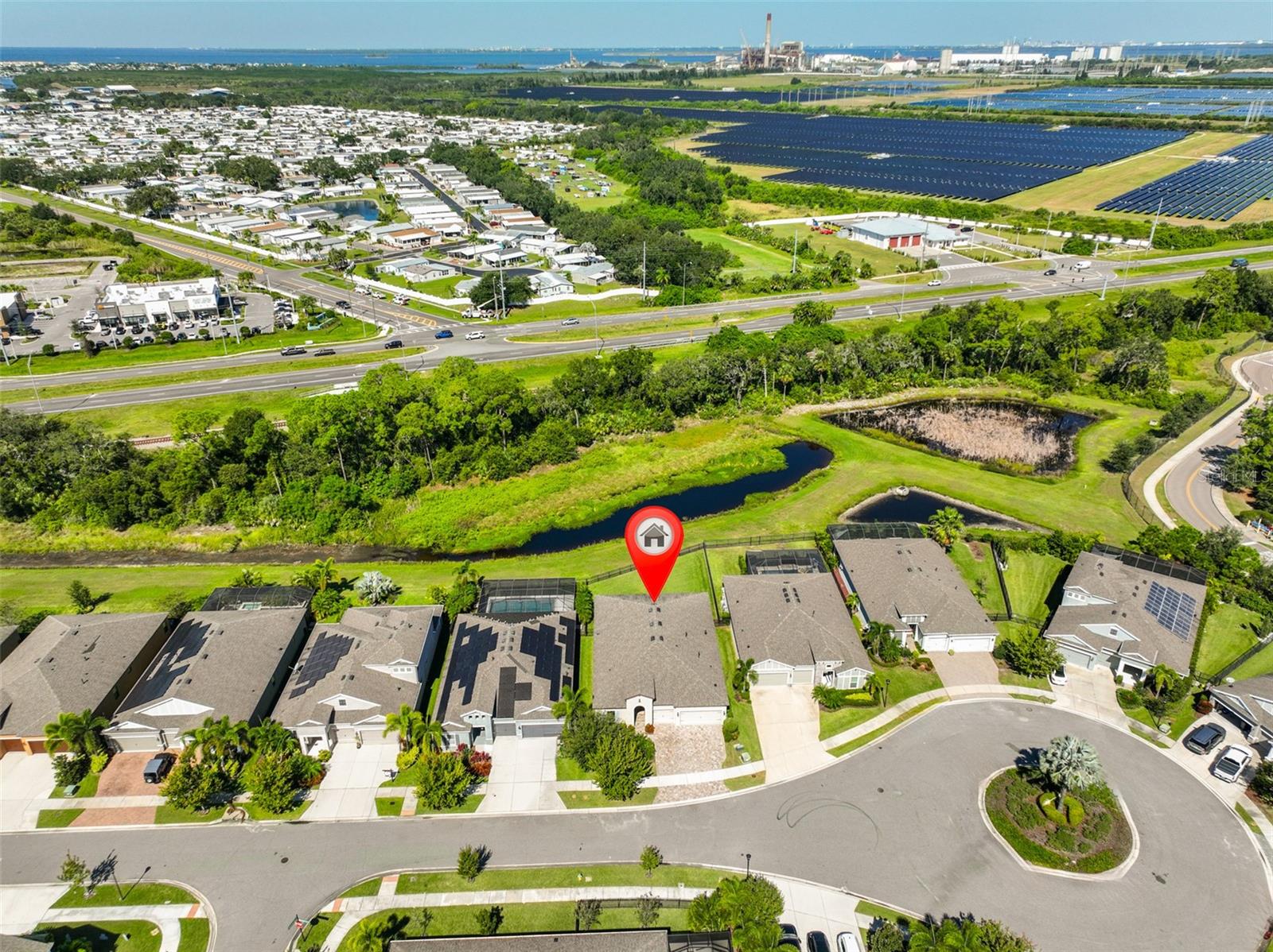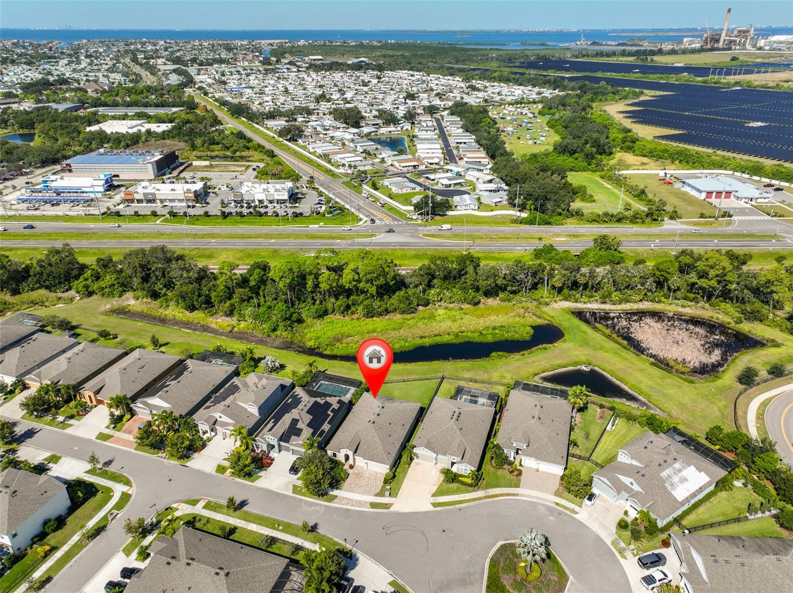 One or more photo(s) has been virtually staged. Welcome to this beautiful executive style home, the Bayshore I floor plan, built in 2019 by Homes by WestBay and meticulously maintained by one-owner, located in the award-winning community of Waterset! Exceptional curb appeal greets you with mature landscaping, a paver driveway, a three-car garage, and a covered front porch entrance. Inside, an elegant open floor plan features tray ceilings, crown molding, and stylish tile flooring. The upgraded kitchen showcases a large center island with expansive storage, beautiful quartz countertops, a farmhouse sink, deep pan drawers, designer backsplash, gas cooktop, stainless steel range hood, and built-in wall oven and microwave. The staggered cabinetry design creates visual interest and dimension and adds to the beauty. The kitchen flows seamlessly into the dining, living and eat-in areas, creating the perfect space for everyday living and entertaining. A wall of sliding glass doors opens all the way to a covered lanai pre-plumbed for an outdoor kitchen, ideal for extending your indoor-outdoor living space. The primary bedroom offers two walkin closets, an en-suite bath with dual vanities, a walk-in shower, a separate water closet, and a private door with direct lanai access for future pool plans. Three additional bedrooms, including one with French doors perfect for an office, feature easy-care luxury vinyl flooring and convenient bath access. Situated on a spacious lot with a fully fenced backyard, you will enjoy serene pond and preserve views, offering privacy and plenty of room for a pool, playground, or pets. No backyard neighbors and no through traffic on this quiet cul-de-sac street. Living in Waterset means embracing an active and vibrant lifestyle with multiple pools, fitness centers, pickleball and tennis courts, basketball courts, playgrounds, miles of walking/biking trails, a splash pad, and dog parks. The community hosts outdoor concerts, food trucks, and family-friendly events throughout the year. The home is within walking distance to the new Waterset Yard retail complex with restaurants, shopping, nail salon, doggy daycare and grooming, and Crunch Fitness. A multi-sport complex and multiple schools are located within the community and the close proximity to major highways allows easy access to Tampa, St. Pete, Sarasota, Gulf beaches, and Disney. Don't miss your opportunity to own this exceptional home in one of the Tampa Bay area's premier communities!