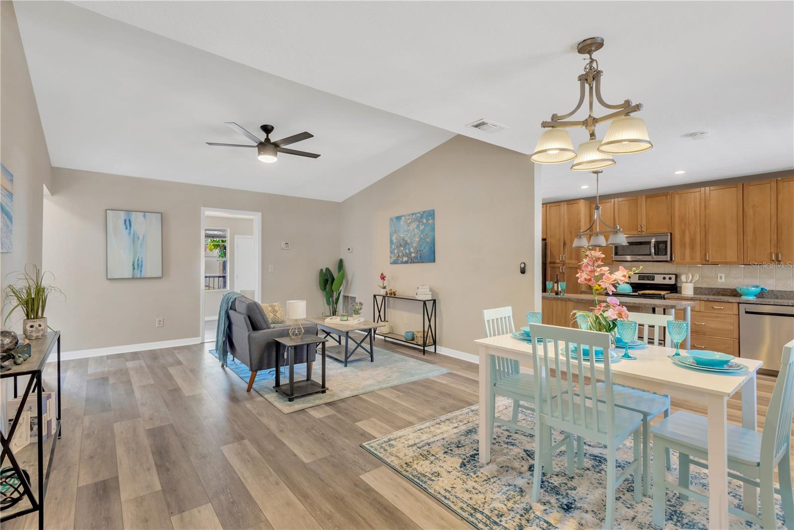 Eat-in Kitchen, Living Room/Dining Room Combo, Primary Bedroom Main Floor, Solid Wood Cabinets, Split Bedroom, Stone Counters
