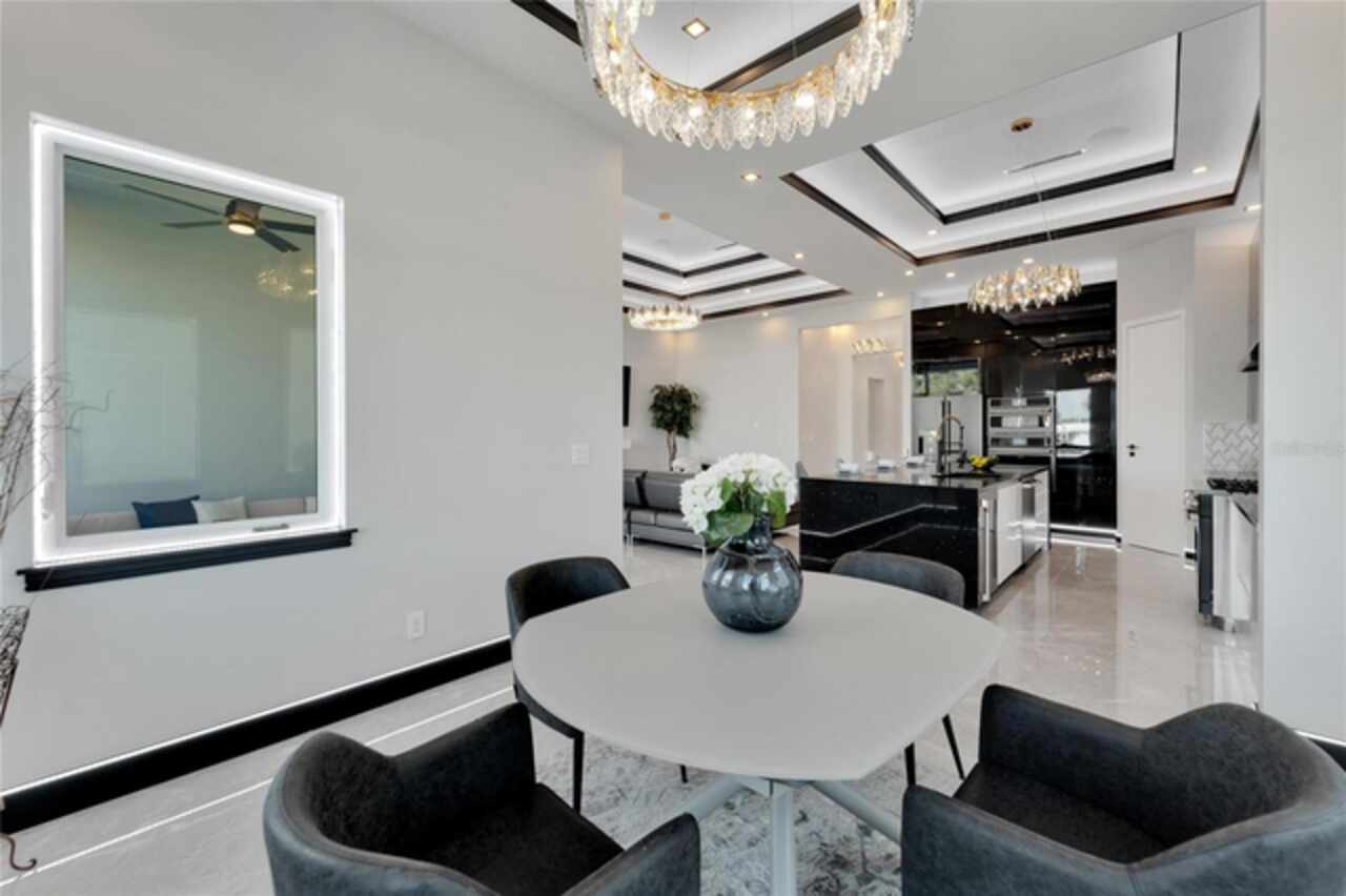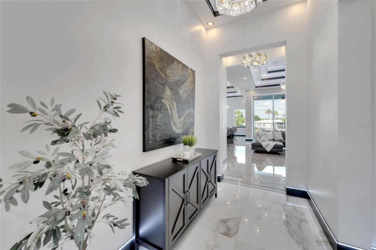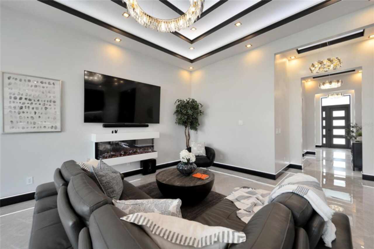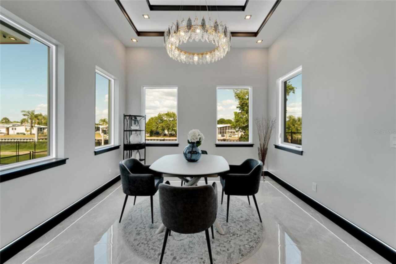 6542 Simone Shore Circle | The Marlin Floorplan 4 Beds | 3 Baths | 2-Car Garage | 2, 139 Living Sq. Ft. | 12 ft Elevation Be the first to own this 2024 custom-built home by Bistro Builders in the waterfront community of Hemingway Estates. This single-story Marlin floorplan offers 4 bedrooms, 3 full baths, and a 2-car garage with unmatched upgrades inside and out. Enjoy modern smart home living, solar energy, and a private dock with quick access to the bay. Built with solid block construction and a stem wall foundation, this home stands at a 12 ft elevation. High-efficiency hurricane-rated windows, and fire-resistant, seamless hardware doors add safety and durability. The hurricane-rated, insulated garage doors, along with icynene spray foam insulation, help keep the home quiet and energy efficient. The home also features a hardwired internal and external security system with fingerprint and facial recognition entry. Inside, triple tray ceilings with custom lighting, and smooth-finish walls create a clean, modern look. The great room includes an electric fireplace, triple sliding glass doors, surround sound throughout, and built-in TV and sound system. Imported tile floors flow throughout the main living spaces. The kitchen is built for real cooks, with quartz countertops, a waterfall island, high-end gas appliances, a pot filler, a wine cooler, and two-tone custom cabinetry with organizational pull-down shelving. The dining room is filled with natural light and opens to the lanai. The private primary suite offers pool and canal views, custom lighting, and a large walk-in closet with a European organization system. The bathroom includes dual sinks, a jetted soaking tub, and a floor-to-ceiling tiled shower with multiple shower heads that adjust pressure, color, and temperature. Secondary bedrooms are oversized with tray ceilings and built-in custom closets. The split bedroom layout allows for privacy. The laundry room includes storage cabinets and countertop workspace. Smart home technology runs throughout the house—control solar, lights, thermostat, security, garage, and pool from your phone or the mounted iPads. Other standout features include floor-to-ceiling shower tile, tall bidet toilets with heating, and custom soffit, window, and baseboard lighting. The garage features epoxy flooring and a dedicated AC unit. Outside, heated saltwater pool and spa, and new seawall. The private dock with a 10, 000 lb lift makes boating easy. Solar roof tiles with battery wall storage provide energy independence. The HOA includes lawncare, irrigation and landscaping. Located in Apollo Beach across from the Tampa Aquarium Turtle Rescue Center and near the Manatee Viewing Center, this home is close to shopping, dining, hospitals, highways, and schools.