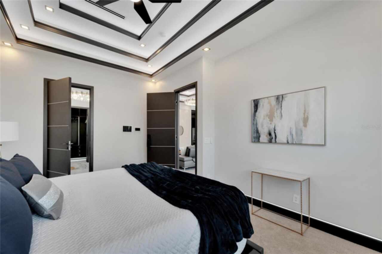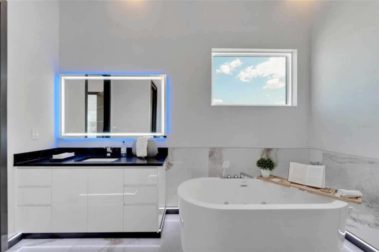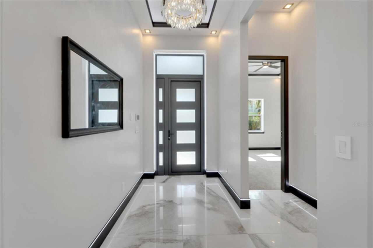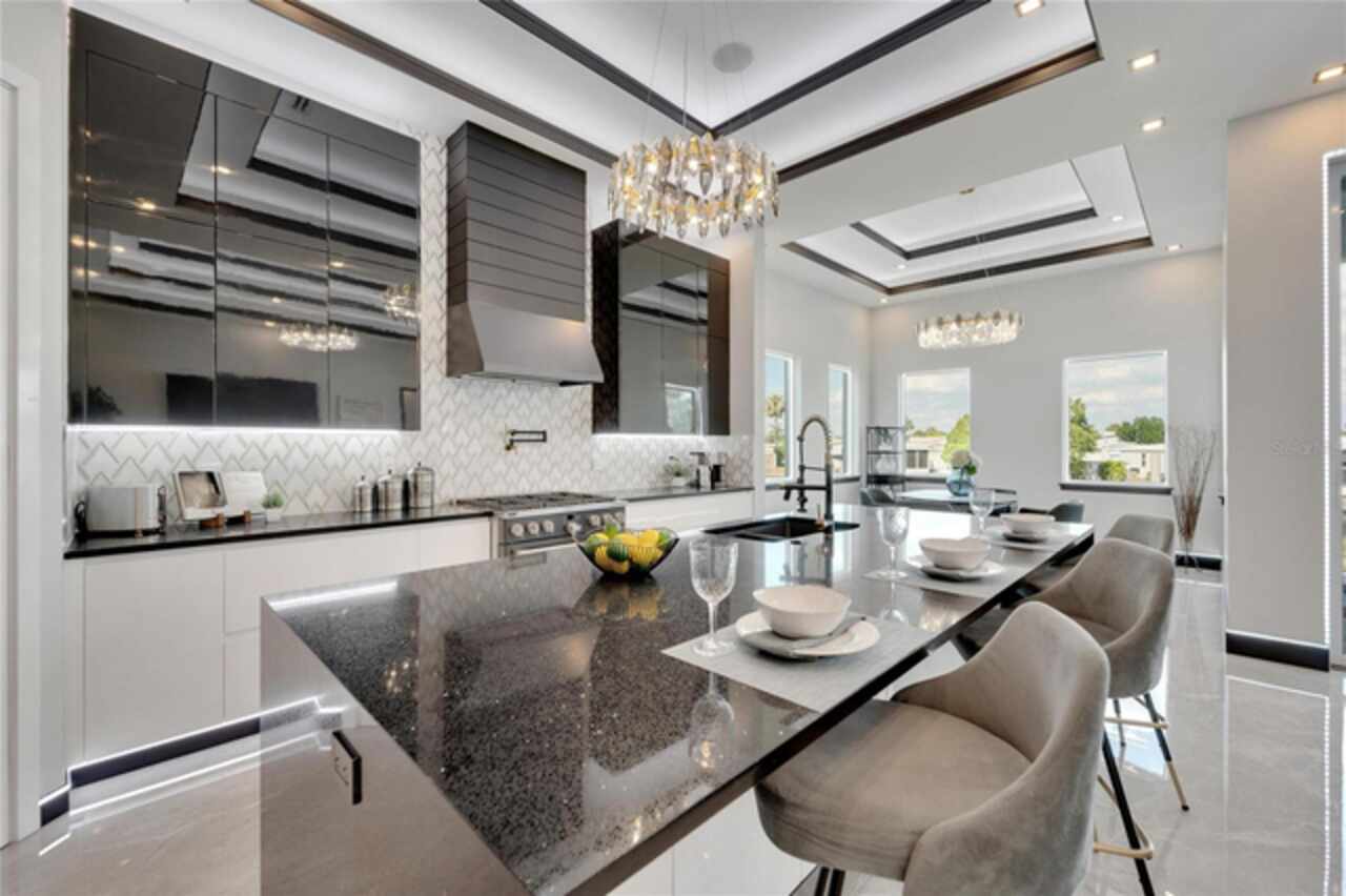 6542 Simone Shore Circle | The Marlin Floorplan 4 Beds | 3 Baths | 2-Car Garage | 2, 139 Living Sq. Ft. | 12 ft Elevation Be the first to own this 2024 custom-built home by Bistro Builders in the waterfront community of Hemingway Estates. This single-story Marlin floorplan offers 4 bedrooms, 3 full baths, and a 2-car garage with unmatched upgrades inside and out. Enjoy modern smart home living, solar energy, and a private dock with quick access to the bay. Built with solid block construction and a stem wall foundation, this home stands at a 12 ft elevation. High-efficiency hurricane-rated windows, and fire-resistant, seamless hardware doors add safety and durability. The hurricane-rated, insulated garage doors, along with icynene spray foam insulation, help keep the home quiet and energy efficient. The home also features a hardwired internal and external security system with fingerprint and facial recognition entry. Inside, triple tray ceilings with custom lighting, and smooth-finish walls create a clean, modern look. The great room includes an electric fireplace, triple sliding glass doors, surround sound throughout, and built-in TV and sound system. Imported tile floors flow throughout the main living spaces. The kitchen is built for real cooks, with quartz countertops, a waterfall island, high-end gas appliances, a pot filler, a wine cooler, and two-tone custom cabinetry with organizational pull-down shelving. The dining room is filled with natural light and opens to the lanai. The private primary suite offers pool and canal views, custom lighting, and a large walk-in closet with a European organization system. The bathroom includes dual sinks, a jetted soaking tub, and a floor-to-ceiling tiled shower with multiple shower heads that adjust pressure, color, and temperature. Secondary bedrooms are oversized with tray ceilings and built-in custom closets. The split bedroom layout allows for privacy. The laundry room includes storage cabinets and countertop workspace. Smart home technology runs throughout the house—control solar, lights, thermostat, security, garage, and pool from your phone or the mounted iPads. Other standout features include floor-to-ceiling shower tile, tall bidet toilets with heating, and custom soffit, window, and baseboard lighting. The garage features epoxy flooring and a dedicated AC unit. Outside, heated saltwater pool and spa, and new seawall. The private dock with a 10, 000 lb lift makes boating easy. Solar roof tiles with battery wall storage provide energy independence. The HOA includes lawncare, irrigation and landscaping. Located in Apollo Beach across from the Tampa Aquarium Turtle Rescue Center and near the Manatee Viewing Center, this home is close to shopping, dining, hospitals, highways, and schools.