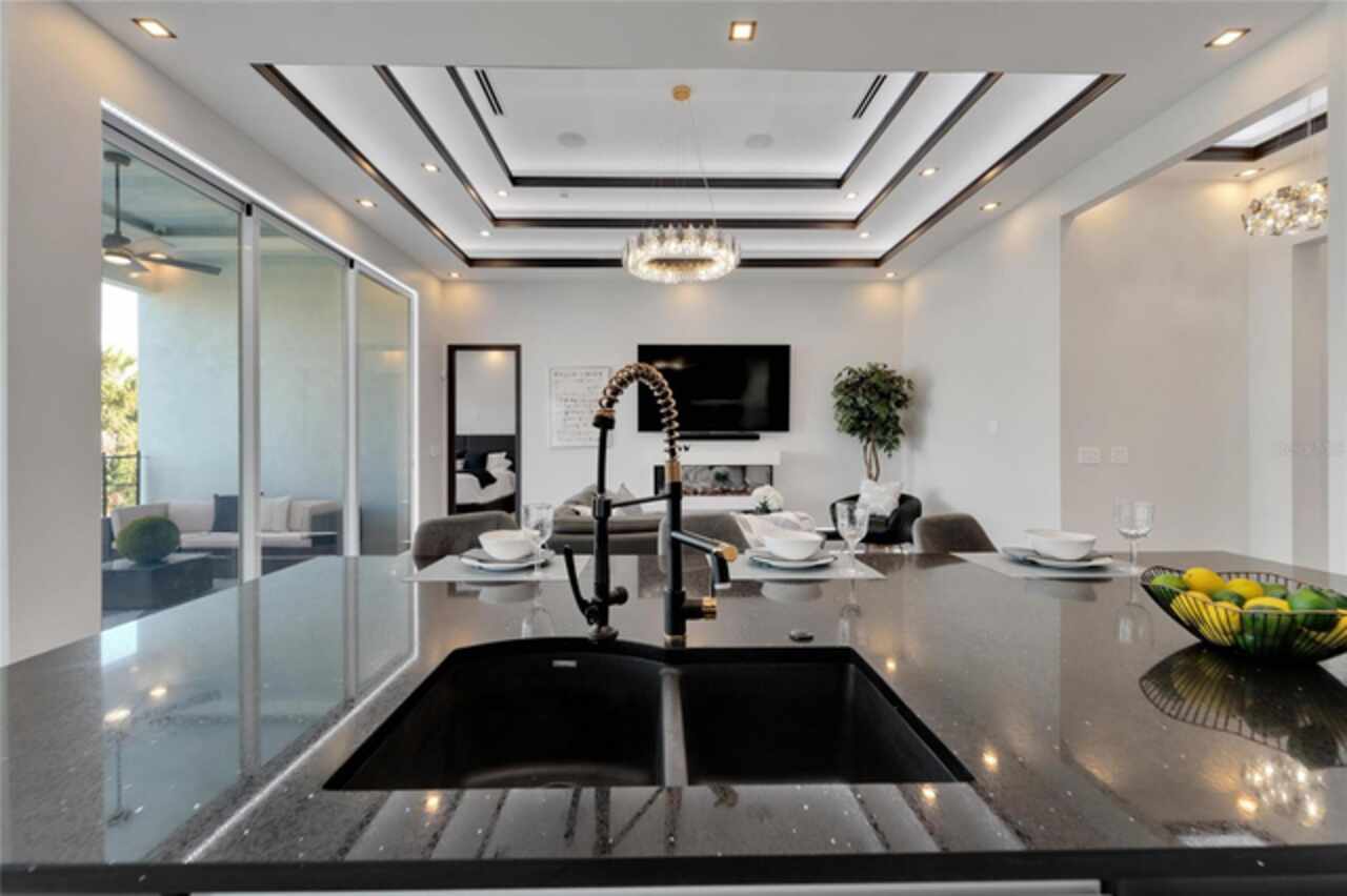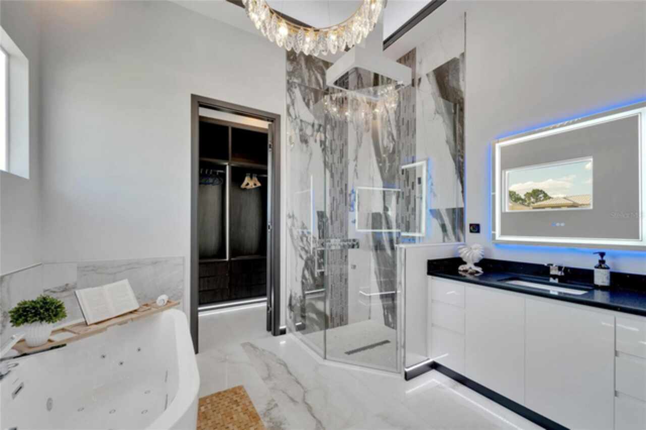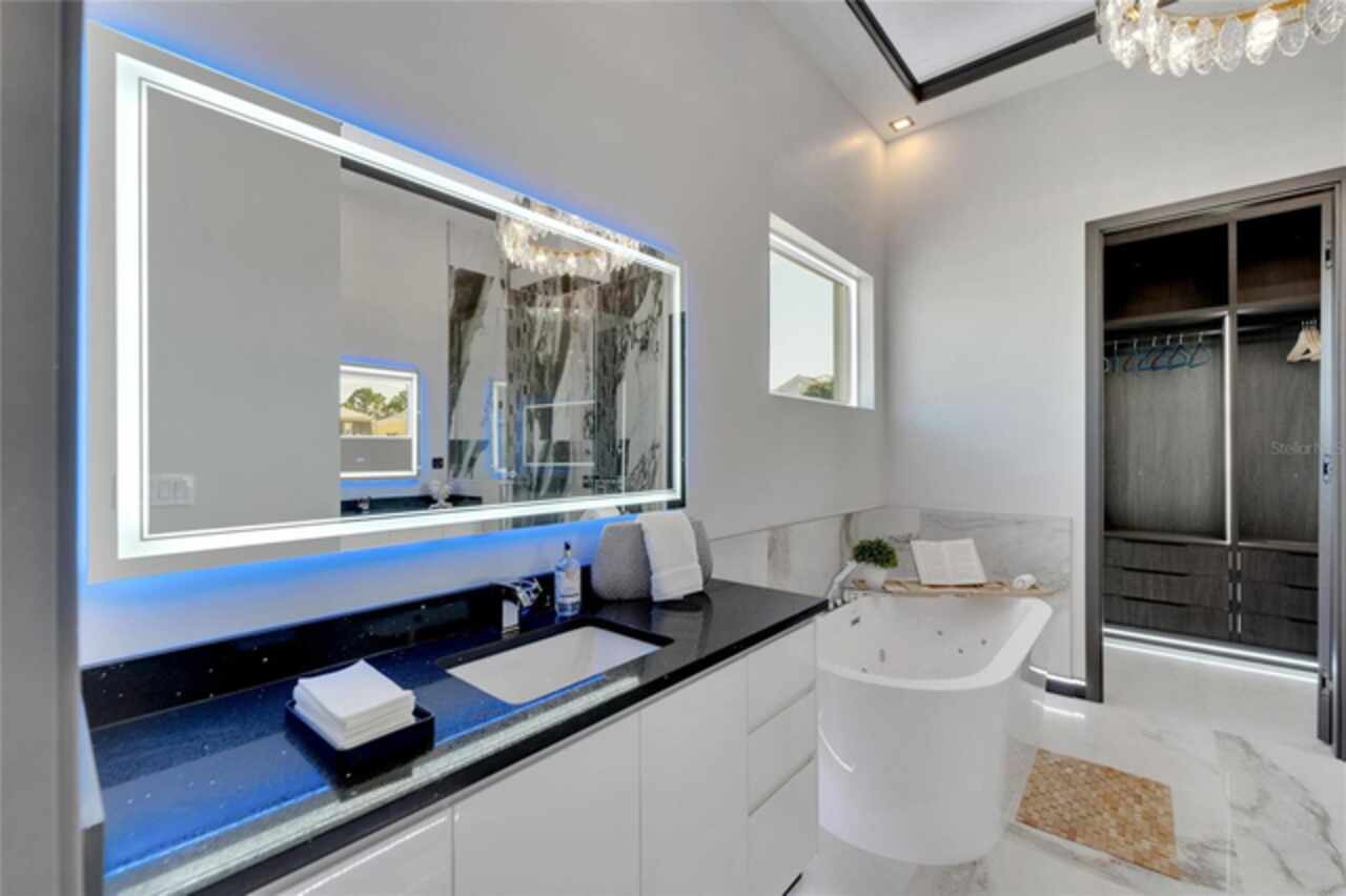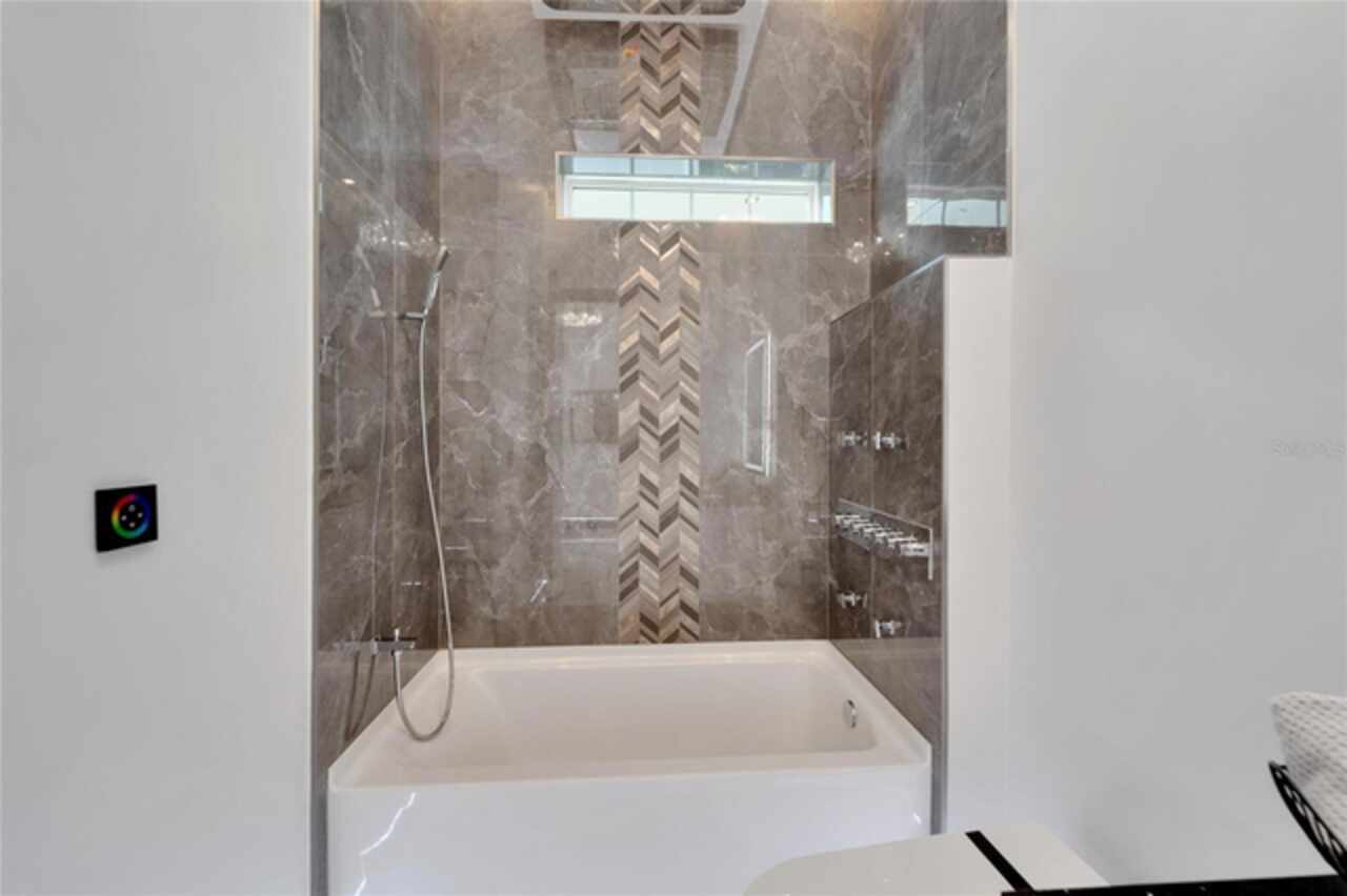 6542 Simone Shore Circle | The Marlin Floorplan 4 Beds | 3 Baths | 2-Car Garage | 2, 139 Living Sq. Ft. | 12 ft Elevation Be the first to own this 2024 custom-built home by Bistro Builders in the waterfront community of Hemingway Estates. This single-story Marlin floorplan offers 4 bedrooms, 3 full baths, and a 2-car garage with unmatched upgrades inside and out. Enjoy modern smart home living, solar energy, and a private dock with quick access to the bay. Built with solid block construction and a stem wall foundation, this home stands at a 12 ft elevation. High-efficiency hurricane-rated windows, and fire-resistant, seamless hardware doors add safety and durability. The hurricane-rated, insulated garage doors, along with icynene spray foam insulation, help keep the home quiet and energy efficient. The home also features a hardwired internal and external security system with fingerprint and facial recognition entry. Inside, triple tray ceilings with custom lighting, and smooth-finish walls create a clean, modern look. The great room includes an electric fireplace, triple sliding glass doors, surround sound throughout, and built-in TV and sound system. Imported tile floors flow throughout the main living spaces. The kitchen is built for real cooks, with quartz countertops, a waterfall island, high-end gas appliances, a pot filler, a wine cooler, and two-tone custom cabinetry with organizational pull-down shelving. The dining room is filled with natural light and opens to the lanai. The private primary suite offers pool and canal views, custom lighting, and a large walk-in closet with a European organization system. The bathroom includes dual sinks, a jetted soaking tub, and a floor-to-ceiling tiled shower with multiple shower heads that adjust pressure, color, and temperature. Secondary bedrooms are oversized with tray ceilings and built-in custom closets. The split bedroom layout allows for privacy. The laundry room includes storage cabinets and countertop workspace. Smart home technology runs throughout the house—control solar, lights, thermostat, security, garage, and pool from your phone or the mounted iPads. Other standout features include floor-to-ceiling shower tile, tall bidet toilets with heating, and custom soffit, window, and baseboard lighting. The garage features epoxy flooring and a dedicated AC unit. Outside, heated saltwater pool and spa, and new seawall. The private dock with a 10, 000 lb lift makes boating easy. Solar roof tiles with battery wall storage provide energy independence. The HOA includes lawncare, irrigation and landscaping. Located in Apollo Beach across from the Tampa Aquarium Turtle Rescue Center and near the Manatee Viewing Center, this home is close to shopping, dining, hospitals, highways, and schools.