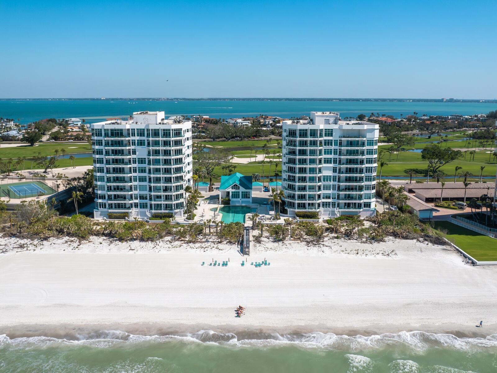 Under contract-accepting backup offers. One or more photo(s) has been virtually staged. Why choose between breathtaking beach views, serene golf course vistas or the twinkling city lights when you can have them all? Welcome to Regent Place on Longboat Key, where this sixth-floor residence offers 270-degree panoramic views spanning the Gulf of Mexico, Sarasota Bay and downtown Sarasota. This 3, 139-square-foot masterpiece features three bedrooms, 3.5 baths, and an incredible open floor plan designed to maximize space and scenery. Go onto the western balcony for unobstructed Gulf and beach views, visible from the expansive great room and gourmet kitchen. On the eastern balcony, take in stunning Bay and golf course views leading to the city skyline. Thoughtfully reimagined by its owners, this residence has been completely remodeled, incorporating unique storage solutions and a layout that allows for customized living spaces. Behind the gates of Longboat Key Club, Regent Place is one of the island’s most exclusive luxury communities, with just 36 residences ensuring privacy and premier amenities such as heated beachfront pool and spa, resident clubhouse and fitness center, on-site management and 24/7 security, 500-plus feet of private beach access and a pet-friendly community. Enjoy the unparalleled resort lifestyle with golf, tennis, spa services, fine dining and boating right at your doorstep. Just moments away, St. Armands Circle and downtown Sarasota offer world-class shopping, dining and entertainment. This is a one-of-a-kind opportunity to own a spectacular residence. Schedule your private showing today!