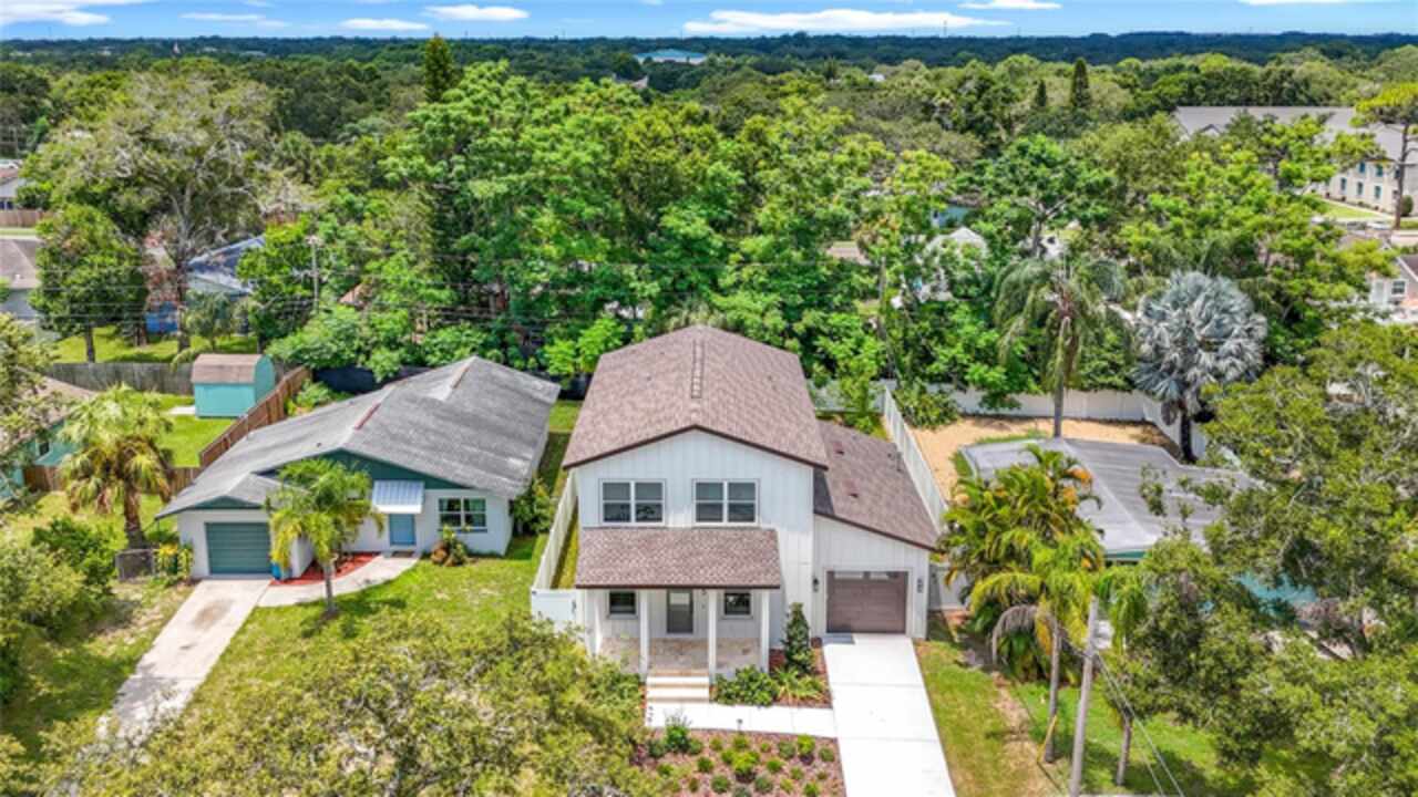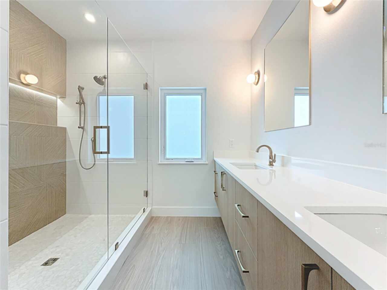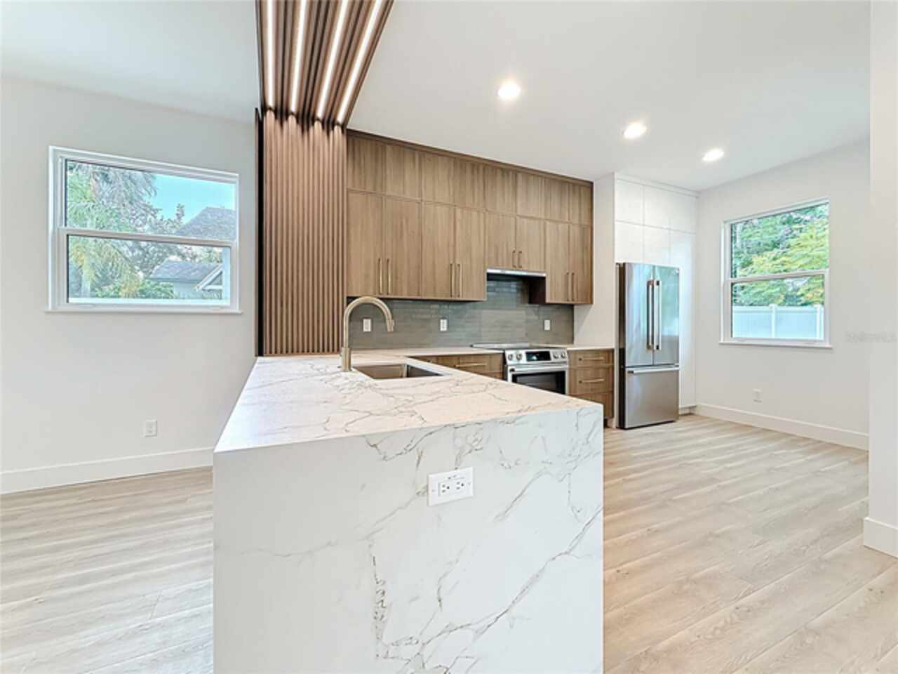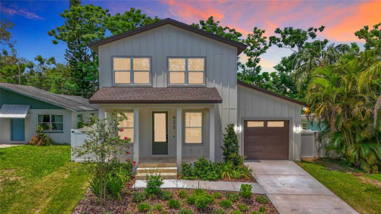 Brand New 2025 Construction – Move-In Ready! Step into timeless modern living with this beautifully crafted 2-story single-family home featuring 3 bedrooms, 2.5 bathrooms, and a 1-car garage. Built for style, durability, and comfort, this home features luxury vinyl plank flooring throughout, hurricane impact windows, and a spacious open-concept layout perfect for today’s lifestyle. The chef’s kitchen is a dream come true with high-end Bosch appliances, a dramatic waterfall-edge quartz island, sleek full-height custom cabinetry, soft-close drawers, gold-tone hardware, under-mount sink, designer backsplash, and a stunning integrated wood slatted ceiling detail that anchors the space with warmth and elegance. All bedrooms are upstairs, including the serene primary suite with a large walk-in closet and spa-like en-suite bath featuring dual sinks, an oversized walk-in shower, and a private water closet. The guest bathroom showcases high-end design with modern hexagon tile flooring, soft blue vanity cabinetry, quartz countertops, and brushed gold fixtures. A frameless glass tub/shower combo with tiled walls and a built-in niche adds both luxury and function. Enjoy outdoor living with both front and back covered porches, a fully fenced backyard with room for a pool, and clean, modern curb appeal. Located in the heart of Safety Harbor, this home offers the perfect blend of small-town charm and vibrant community living. Enjoy walkable access to the picturesque downtown area, known for its quaint shops, local restaurants, weekly farmers markets, art festivals, and the iconic Safety Harbor Resort & Spa. Nestled along the shores of Old Tampa Bay, residents enjoy beautiful waterfront parks, scenic trails, and year-round outdoor activities. With top-rated schools, easy access to Clearwater, Tampa, and major airports, Safety Harbor is one of Pinellas County’s most desirable places to call home. This home blends thoughtful craftsmanship, elevated finishes, and move-in-ready convenience—schedule your private tour today!