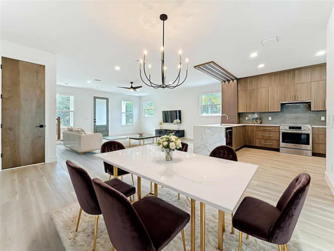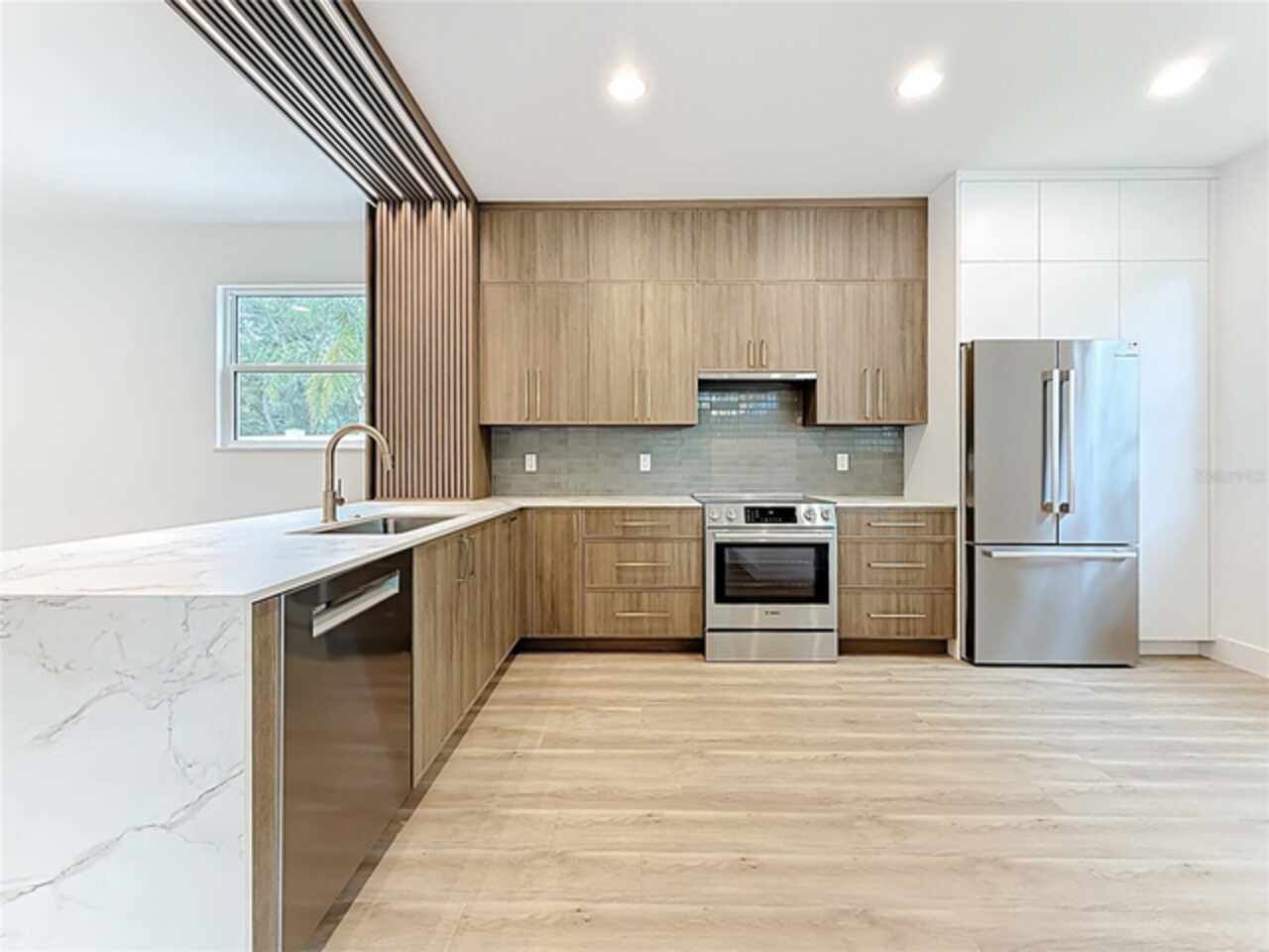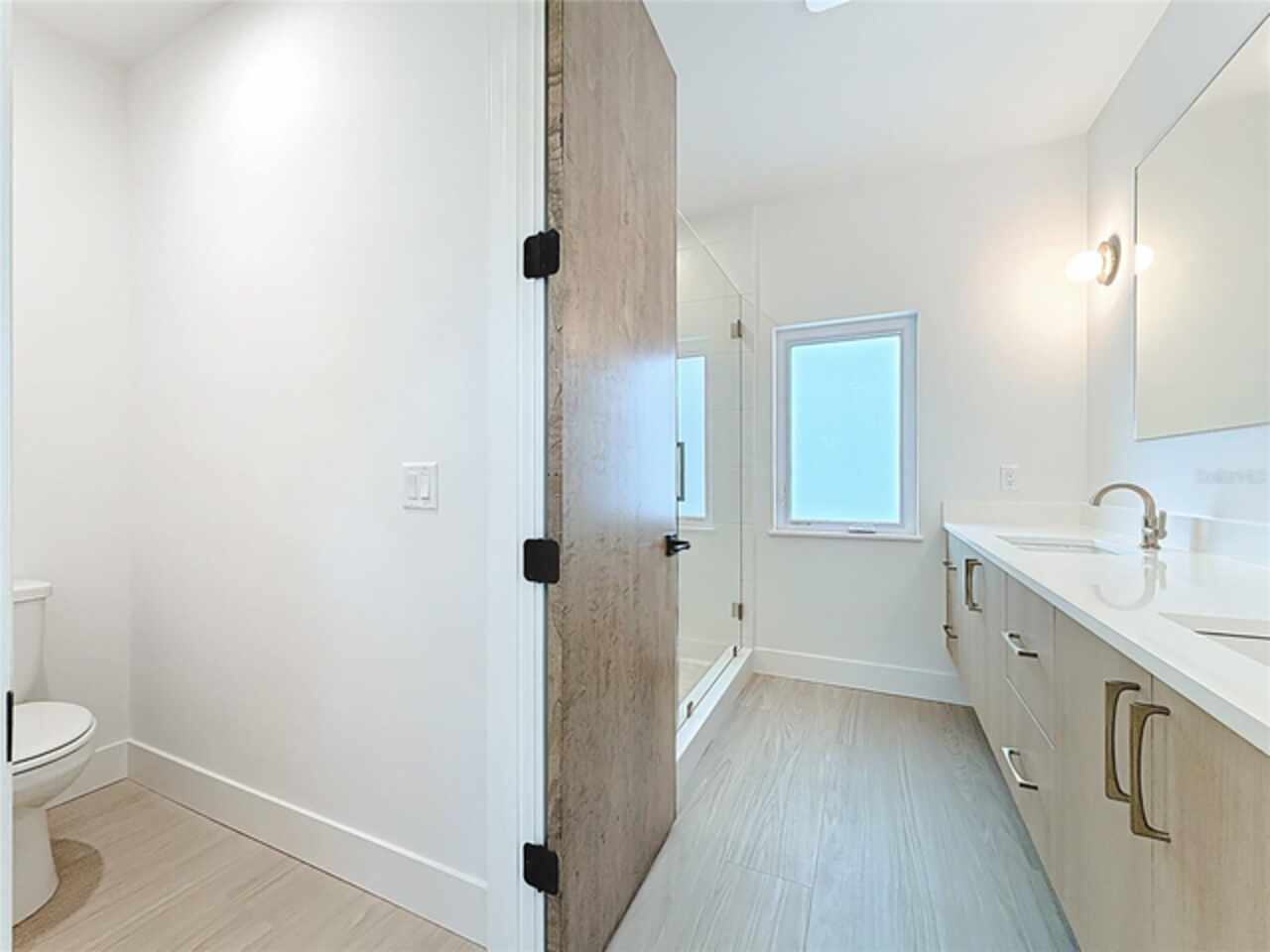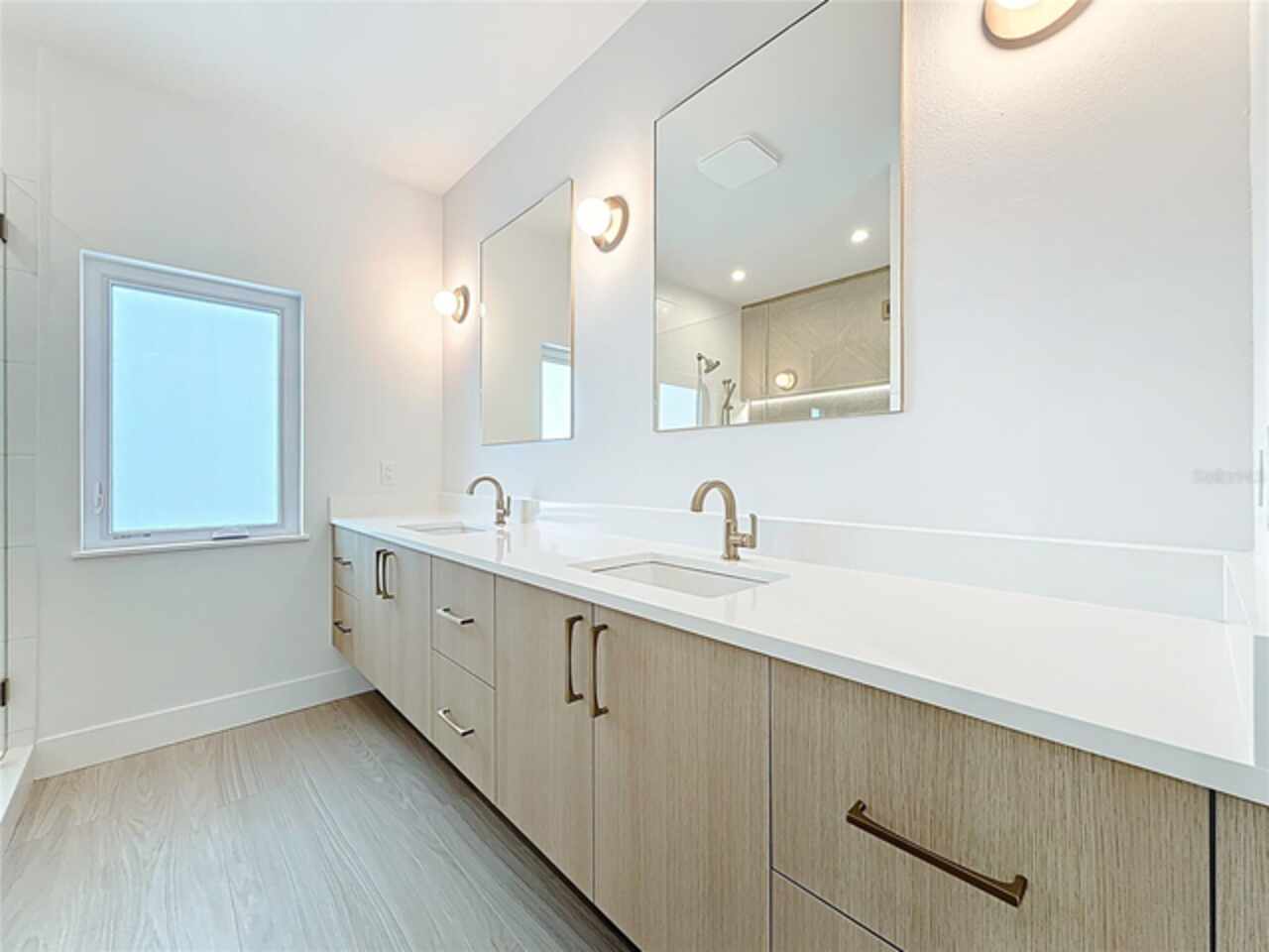 Brand New 2025 Construction – Move-In Ready! Step into timeless modern living with this beautifully crafted 2-story single-family home featuring 3 bedrooms, 2.5 bathrooms, and a 1-car garage. Built for style, durability, and comfort, this home features luxury vinyl plank flooring throughout, hurricane impact windows, and a spacious open-concept layout perfect for today’s lifestyle. The chef’s kitchen is a dream come true with high-end Bosch appliances, a dramatic waterfall-edge quartz island, sleek full-height custom cabinetry, soft-close drawers, gold-tone hardware, under-mount sink, designer backsplash, and a stunning integrated wood slatted ceiling detail that anchors the space with warmth and elegance. All bedrooms are upstairs, including the serene primary suite with a large walk-in closet and spa-like en-suite bath featuring dual sinks, an oversized walk-in shower, and a private water closet. The guest bathroom showcases high-end design with modern hexagon tile flooring, soft blue vanity cabinetry, quartz countertops, and brushed gold fixtures. A frameless glass tub/shower combo with tiled walls and a built-in niche adds both luxury and function. Enjoy outdoor living with both front and back covered porches, a fully fenced backyard with room for a pool, and clean, modern curb appeal. Located in the heart of Safety Harbor, this home offers the perfect blend of small-town charm and vibrant community living. Enjoy walkable access to the picturesque downtown area, known for its quaint shops, local restaurants, weekly farmers markets, art festivals, and the iconic Safety Harbor Resort & Spa. Nestled along the shores of Old Tampa Bay, residents enjoy beautiful waterfront parks, scenic trails, and year-round outdoor activities. With top-rated schools, easy access to Clearwater, Tampa, and major airports, Safety Harbor is one of Pinellas County’s most desirable places to call home. This home blends thoughtful craftsmanship, elevated finishes, and move-in-ready convenience—schedule your private tour today!