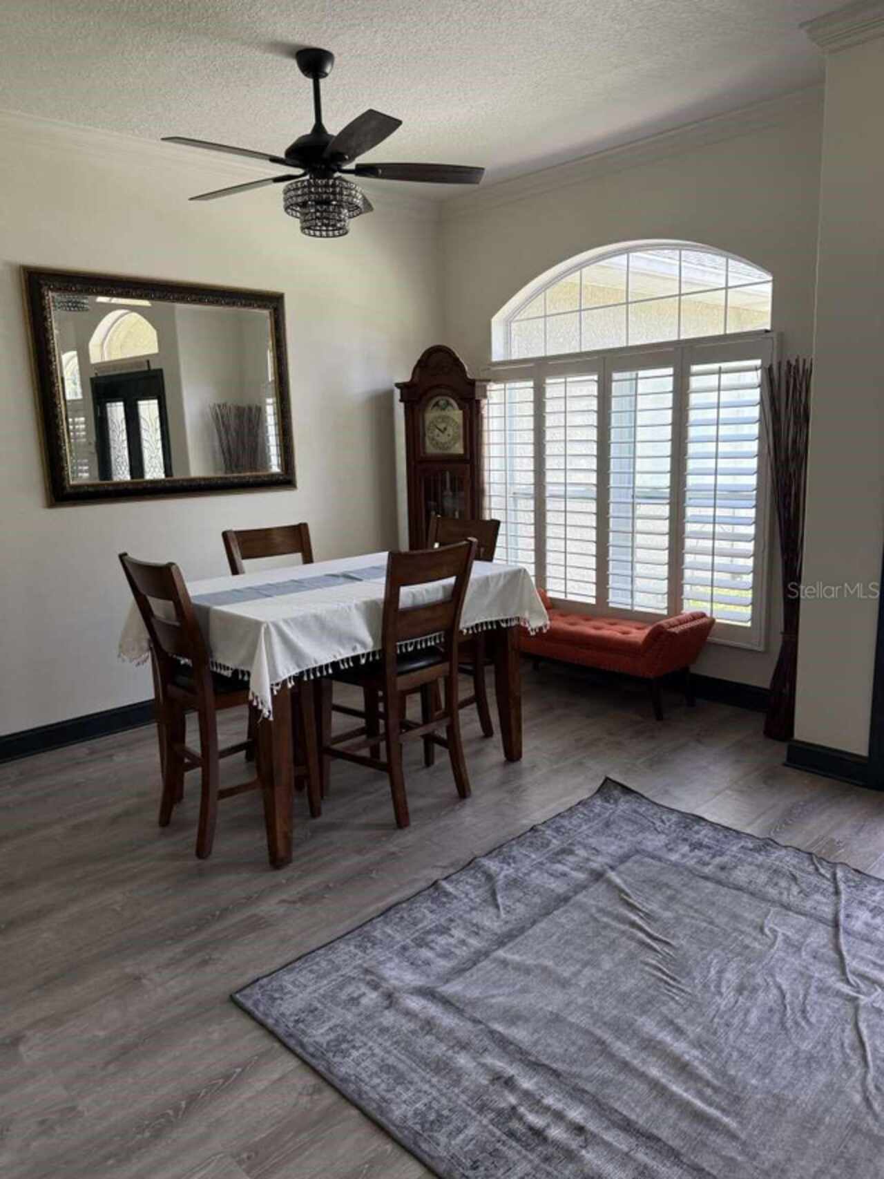 Ceiling Fans(s), Crown Molding, Eat-in Kitchen, High Ceilings, Primary Bedroom Main Floor, Solid Surface Counters, Solid Wood Cabinets, Tray Ceiling(s), Vaulted Ceiling(s), Walk-In Closet(s), Window Treatments