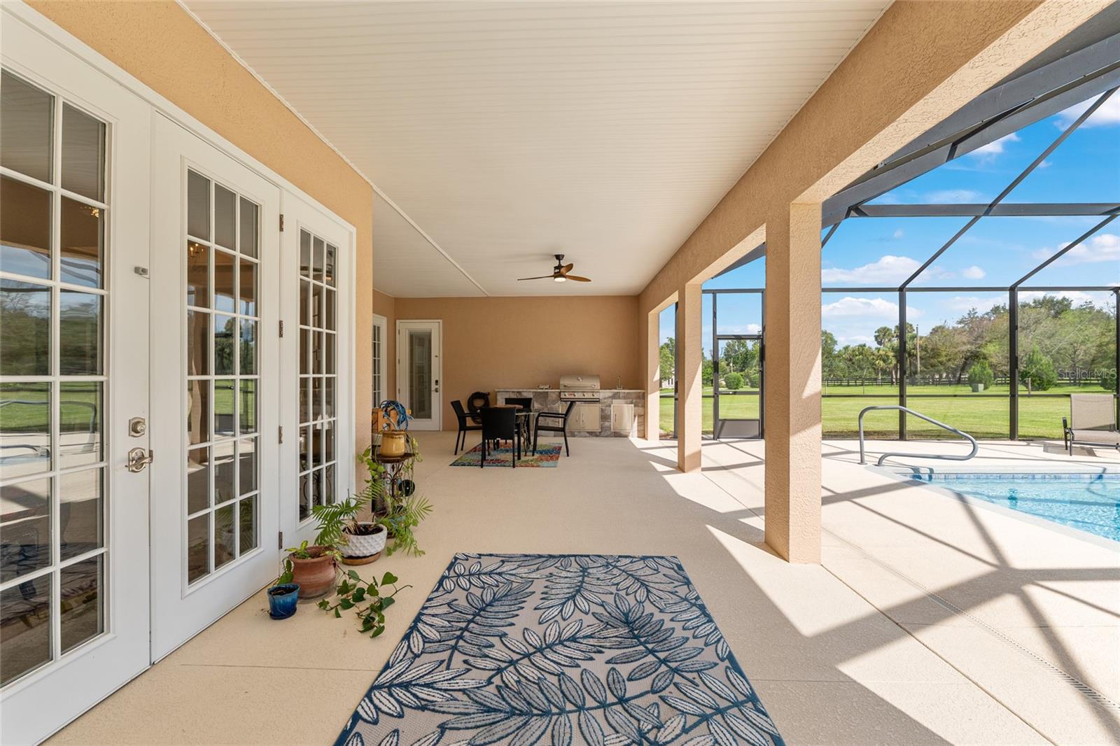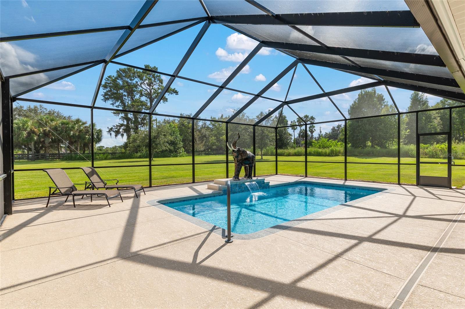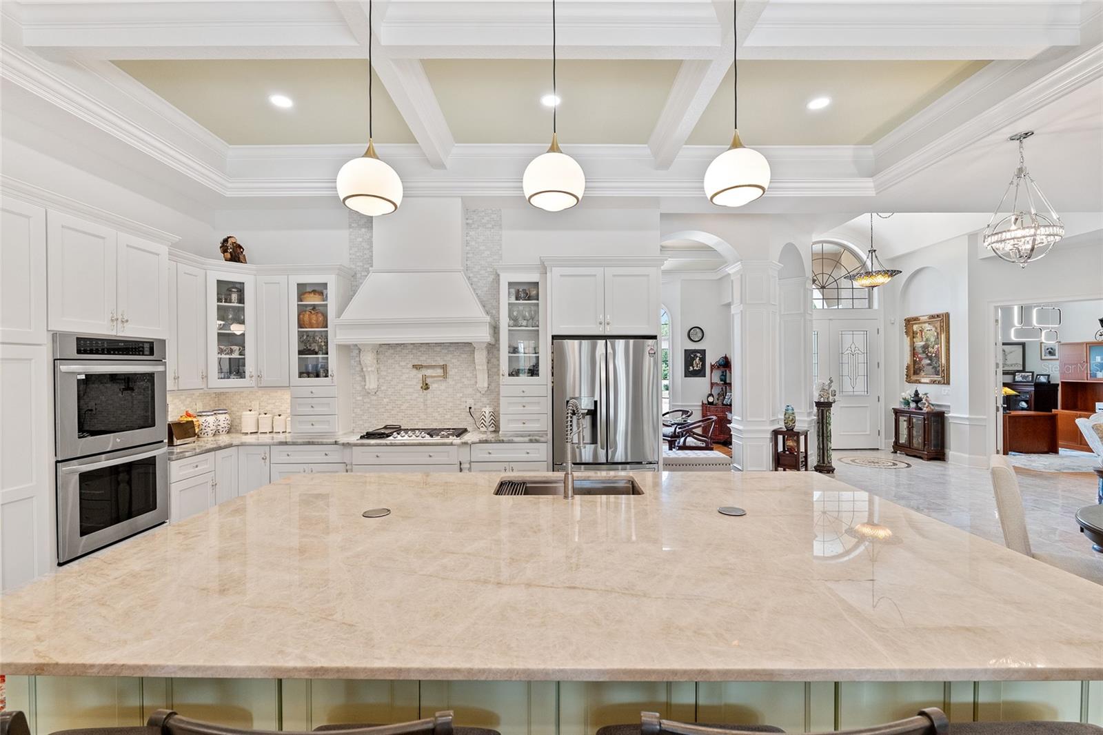 Luxury Pool home on 1.34 acres in SE Ocala — zoned A1 with NO HOA! This beautifully reimagined 4-bedroom, 3-bath estate showcases more than $600, 000 in high-end upgrades and timeless design, all set in the heart of horse country just minutes from downtown. From the moment you arrive, the curb appeal impresses with stacked-stone accents, stately columns, and a grand double-door entry that sets the stage for the elegance inside. Soaring coffered ceilings, layered trim, and premium tile flooring. An elegant formal sitting room with arched windows and custom millwork offers a welcoming space for guests, while a private office provides the perfect work-from-home option. The chef’s kitchen is the heart of the home with quartz countertops, custom cabinetry, premium appliances, and a spacious island designed for entertaining. The primary suite is a serene retreat with private pool and lanai access, complemented by a spa-like bath boasting dual vanities, a freestanding soaking tub beside a double-sided fireplace, and a designer walk-in shower. Additional conveniences include a well-appointed laundry room with custom cabinetry, quartz-style counters, utility sink, and folding station. Peace of mind comes with a fully paid solar panel system, Generac whole-home generator, Kinetico water filtration system, custom Closets by Design, NEWER ROOF (2022), NEWER HVAC (2024), and custom blinds throughout. Fresh interior and exterior paint add to the home’s modern appeal. Outdoors, relax in the saltwater pool with new paver decking, cook in the fully equipped summer kitchen, and enjoy the lush landscaping and upgraded irrigation system. With its A1 zoning and no HOA restrictions, this estate combines modern luxury with the freedom and lifestyle that makes Ocala living truly exceptional. *NEW POOL!*