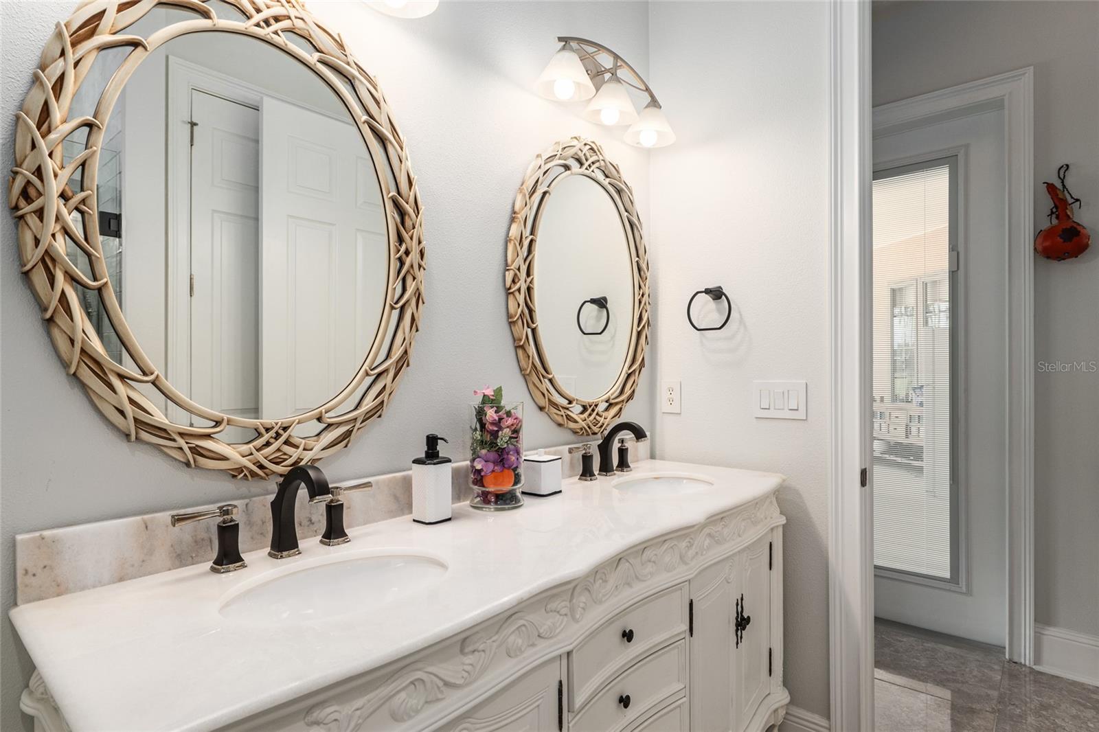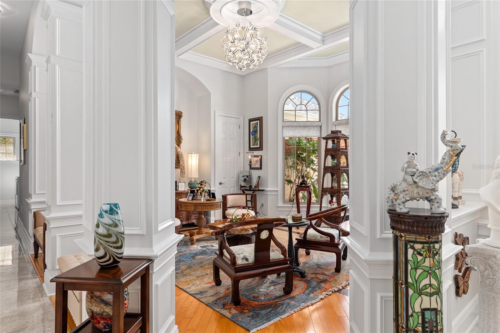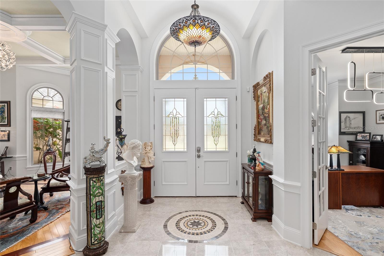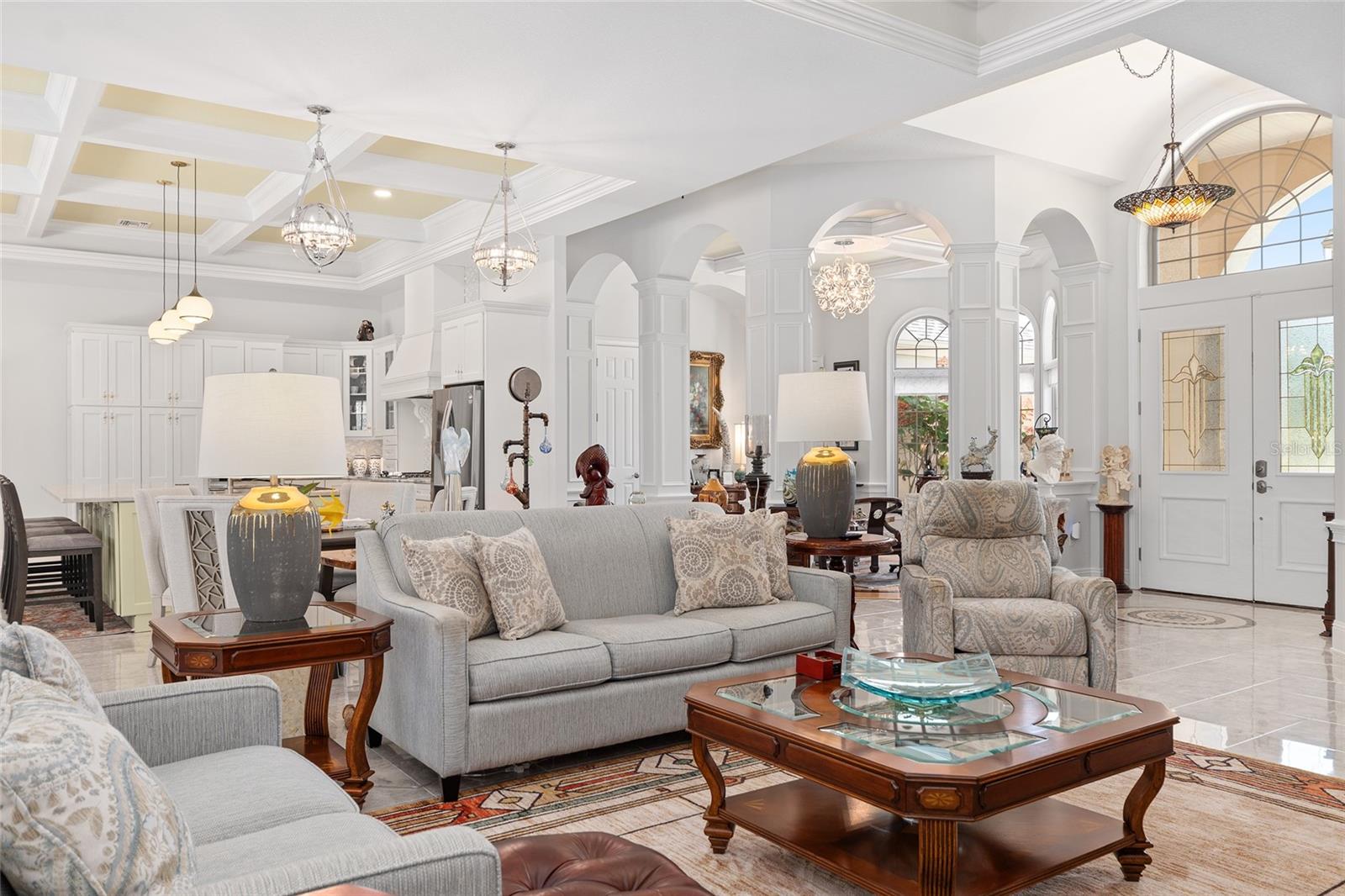 Luxury Pool home on 1.34 acres in SE Ocala — zoned A1 with NO HOA! This beautifully reimagined 4-bedroom, 3-bath estate showcases more than $600, 000 in high-end upgrades and timeless design, all set in the heart of horse country just minutes from downtown. From the moment you arrive, the curb appeal impresses with stacked-stone accents, stately columns, and a grand double-door entry that sets the stage for the elegance inside. Soaring coffered ceilings, layered trim, and premium tile flooring. An elegant formal sitting room with arched windows and custom millwork offers a welcoming space for guests, while a private office provides the perfect work-from-home option. The chef’s kitchen is the heart of the home with quartz countertops, custom cabinetry, premium appliances, and a spacious island designed for entertaining. The primary suite is a serene retreat with private pool and lanai access, complemented by a spa-like bath boasting dual vanities, a freestanding soaking tub beside a double-sided fireplace, and a designer walk-in shower. Additional conveniences include a well-appointed laundry room with custom cabinetry, quartz-style counters, utility sink, and folding station. Peace of mind comes with a fully paid solar panel system, Generac whole-home generator, Kinetico water filtration system, custom Closets by Design, NEWER ROOF (2022), NEWER HVAC (2024), and custom blinds throughout. Fresh interior and exterior paint add to the home’s modern appeal. Outdoors, relax in the saltwater pool with new paver decking, cook in the fully equipped summer kitchen, and enjoy the lush landscaping and upgraded irrigation system. With its A1 zoning and no HOA restrictions, this estate combines modern luxury with the freedom and lifestyle that makes Ocala living truly exceptional. *NEW POOL!*
