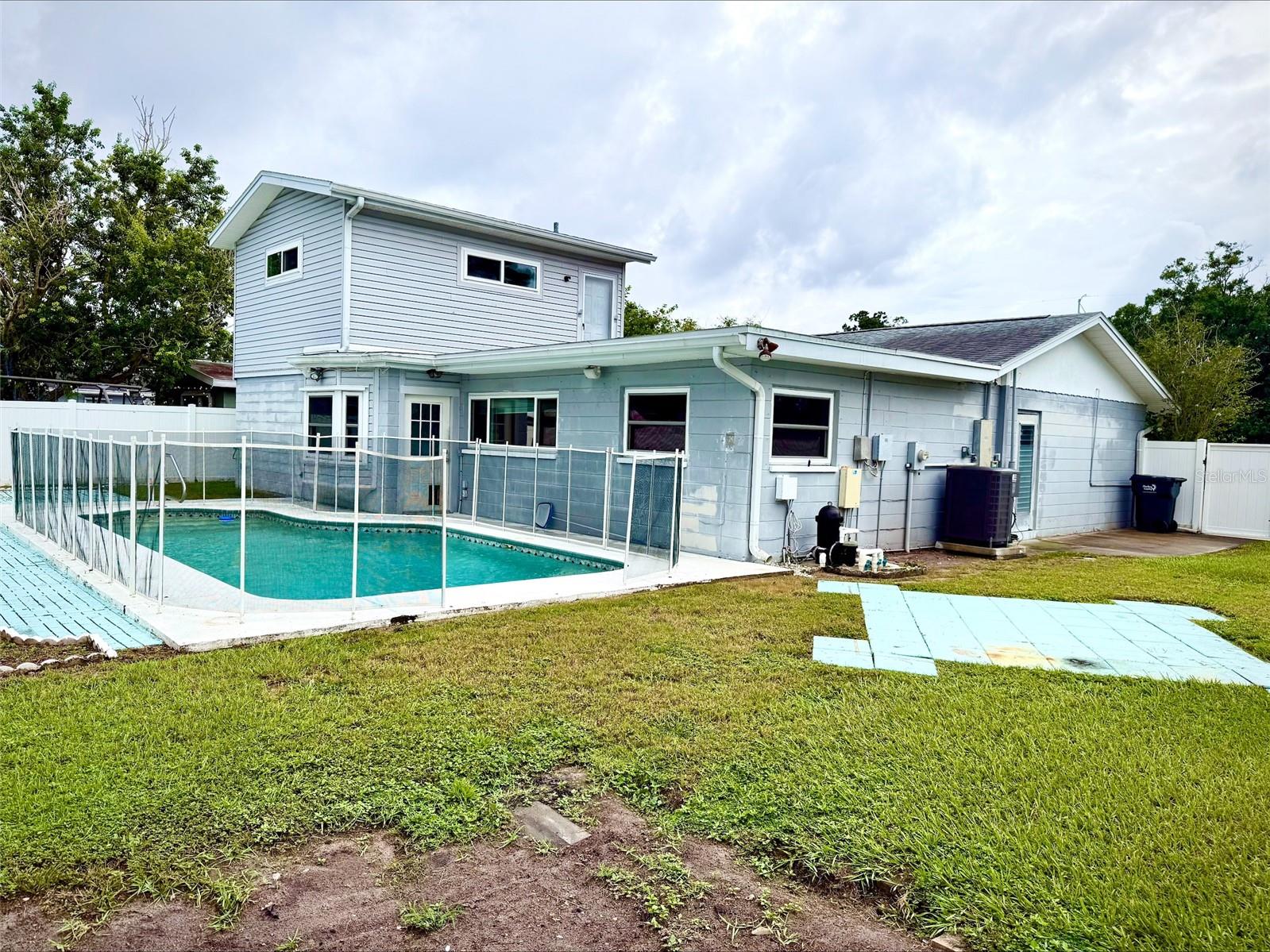 Under contract-accepting backup offers. What a fantastic opportunity to own a spacious pool home in desirable Fairview Estates! This high-and-dry residence offers plenty of room to grow with 4 bedrooms and 3 bathrooms, including two ensuite bedrooms conveniently located on the first floor—perfect for in-laws, guests, or a college student seeking a little extra privacy. Inside, you’ll find both a formal living room and a comfortable family room, along with a well-appointed kitchen featuring granite countertops, a breakfast bar, and a dishwasher. Upstairs, a generous 15x17 bonus room provides endless possibilities as a playroom, office, hobby space, or game room. Step outside and enjoy the sparkling pool—an inviting retreat during the warm summer months. The oversized lot is a rare find, offering gated access and plenty of room for your boat, RV, or work trailer. Roof was replaced in 2019 according to the permit. Maybe best of all, the property is located in Flood Zone X, meaning flood insurance is typically not required by lenders. This is a great opportunity to earn some sweat equity on a great home, don’t hesitate and miss this opportunity!