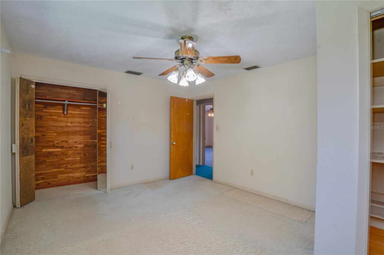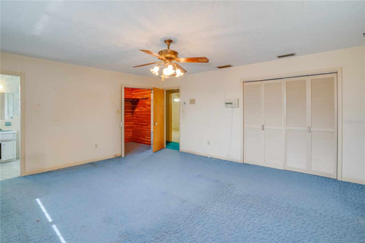 Ceiling Fans(s), Crown Molding, Eat-in Kitchen, Kitchen/Family Room Combo, Living Room/Dining Room Combo, Open Floorplan, Primary Bedroom Main Floor, Solid Surface Counters, Solid Wood Cabinets, Split Bedroom, Thermostat, Walk-In Closet(s), Window Treatments
