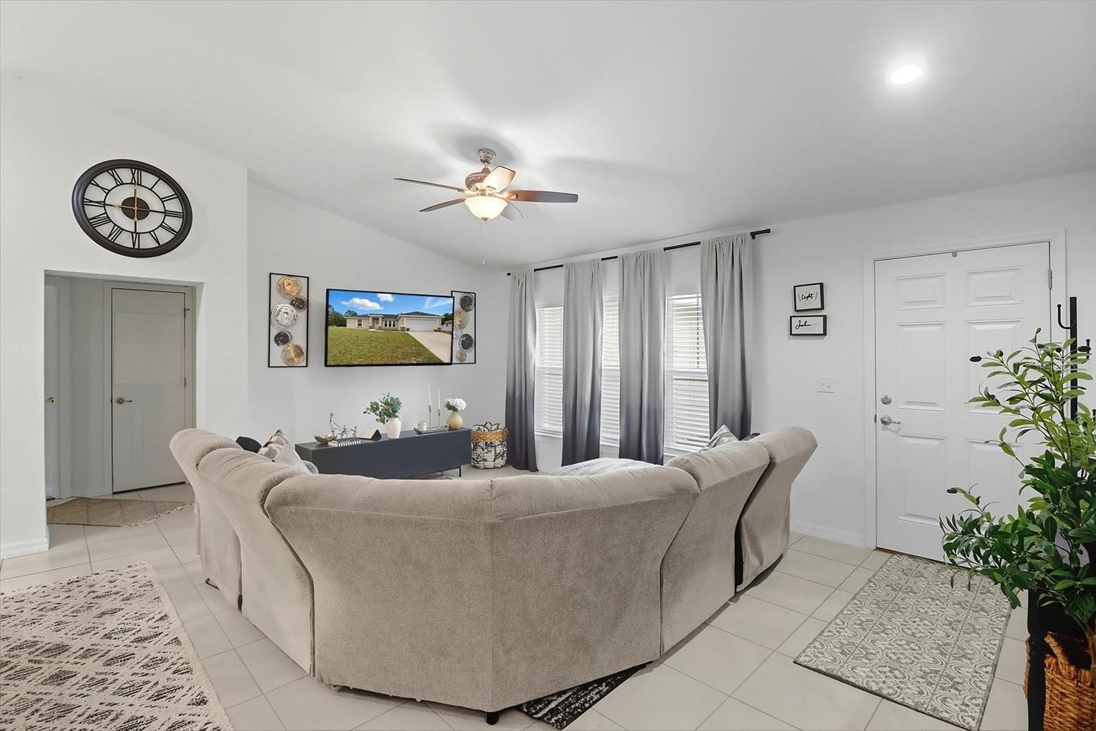 Step into move-in-ready comfort in this beautifully built (2023) 3-bedroom, 2-bath home in a convenient Ocala neighborhood in Marion Oaks. Upgrades and features abound at the front: concrete block construction, low-maintenance exterior, modern split-floor plan, high quality finishes and a one-year home warranty provided by the seller for added peace of mind. From the moment you arrive you’ll notice the pristine exterior, new landscaping and well-placed curb appeal. Inside, enjoy an open concept layout with tiled and carpet flooring, double-pane windows, ceiling fans throughout, and a well-appointed kitchen with ample counter space and modern appliances. The primary suite offers a private bath and generous walk-in closets. Two additional bedrooms flank the home for versatility: guest, home office or hobby space. Outside, a screened-in back porch and generous yard provide outdoor living space perfect for Florida weather — creating a relaxed, low-maintenance lifestyle in the Ocala FL real estate market. Located just minutes from shopping, dining, major highways and all that the Marion Oaks area has to offer, this home delivers luxury-look without the luxury price tag. Don’t miss your chance to own a pristine, nearly-new home in Ocala’s highly desirable subdivision — with the added bonus of a one-year home warranty. Schedule your tour today!