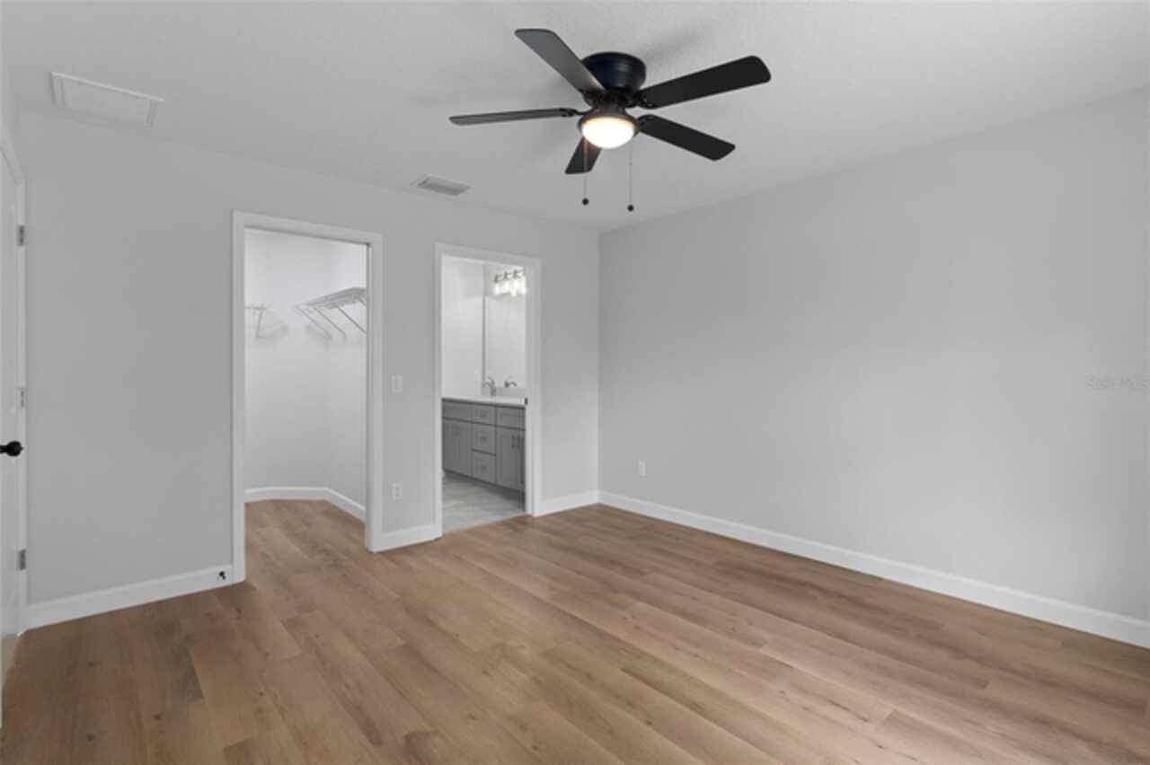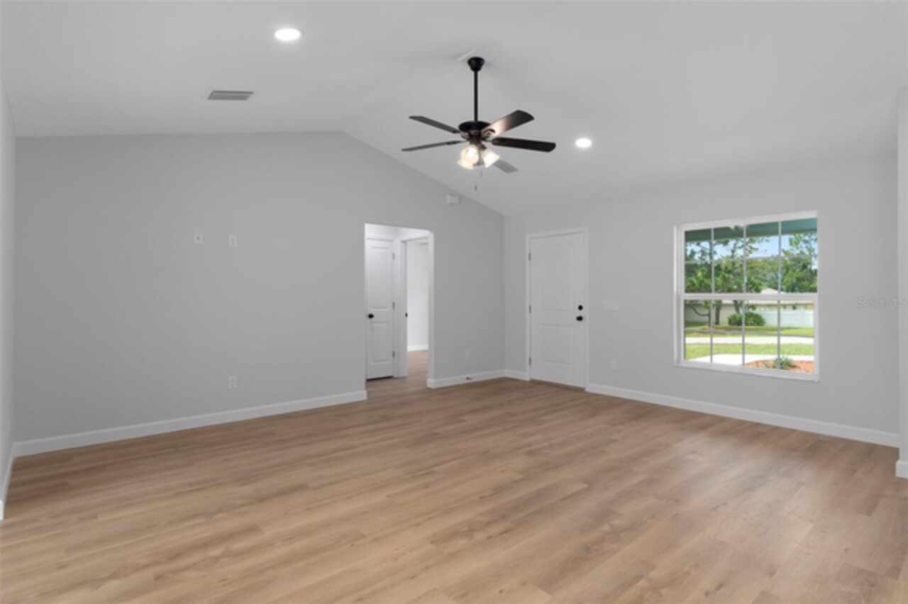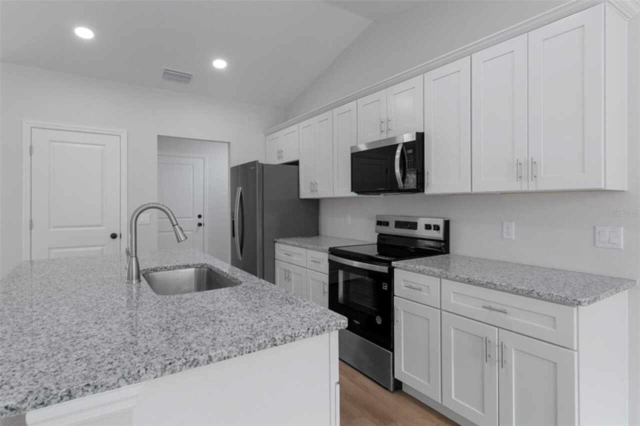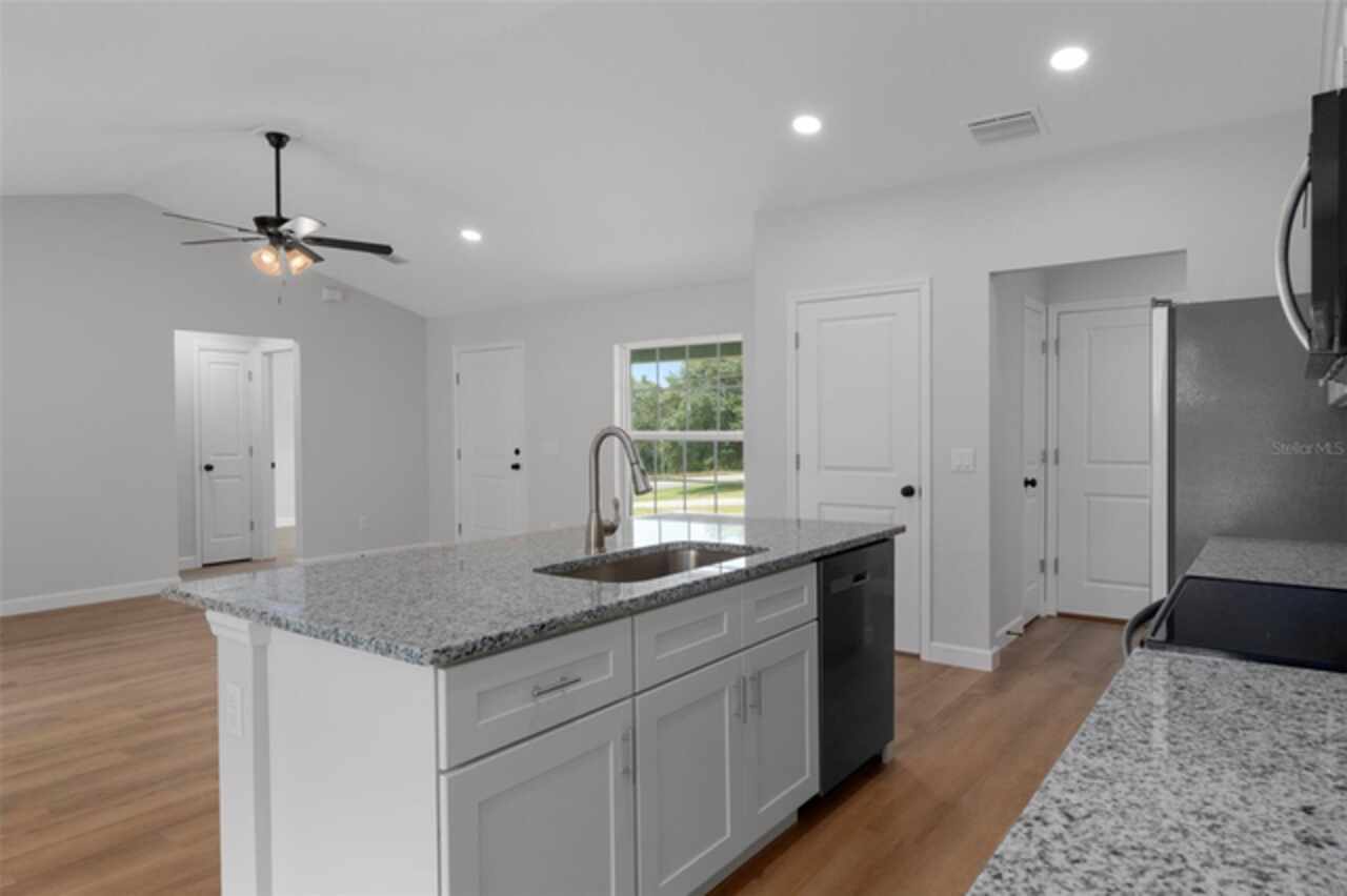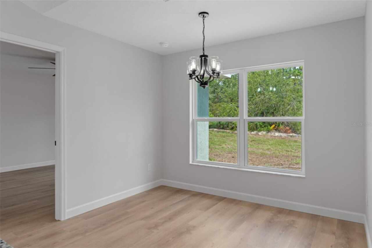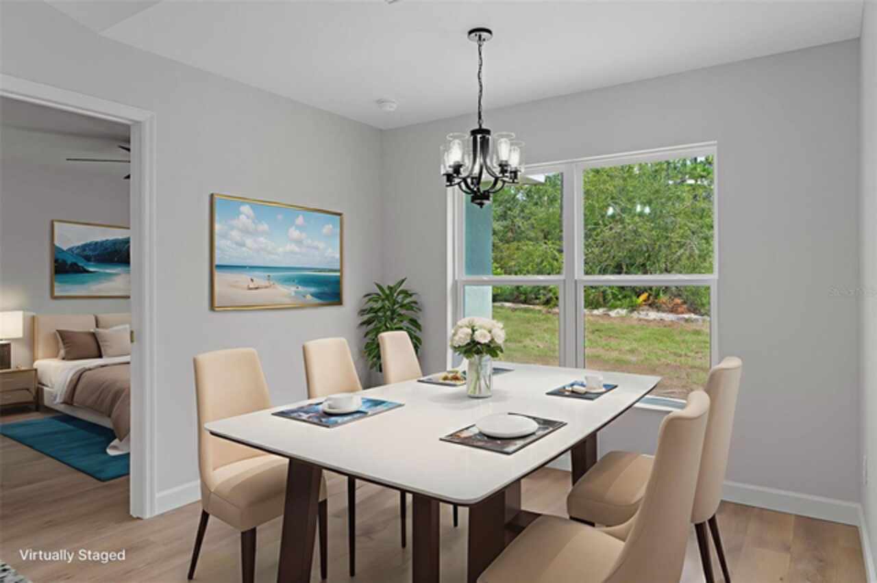 Stunning New Construction with Modern Elegance and Everyday Comfort Step into this beautifully designed brand-new 3-bedroom, 2-bath home featuring an open-concept floor plan and high-end finishes throughout. The heart of the home is a bright, stylish kitchen boasting granite countertops, crisp white cabinetry, stainless steel appliances, and a spacious dining area—perfect for family meals or entertaining friends. Flowing seamlessly from the kitchen, the expansive great room offers an inviting space to relax or gather, all enhanced by durable luxury vinyl plank flooring that runs throughout the home. The bathrooms are finished with elegant tile, adding a touch of timeless sophistication. Unwind in the private primary suite, complete with a walk-in closet and a beautifully appointed ensuite bathroom. An oversized laundry room offers generous storage and convenience for busy households. Enjoy the best of Florida living with both a covered front porch and a covered rear lanai—ideal for morning coffee, evening wine, or simply soaking in the outdoors. This home blends quality craftsmanship, thoughtful design, and modern features—ready for you to move in and make it yours. Some interior photos have been virtually staged.