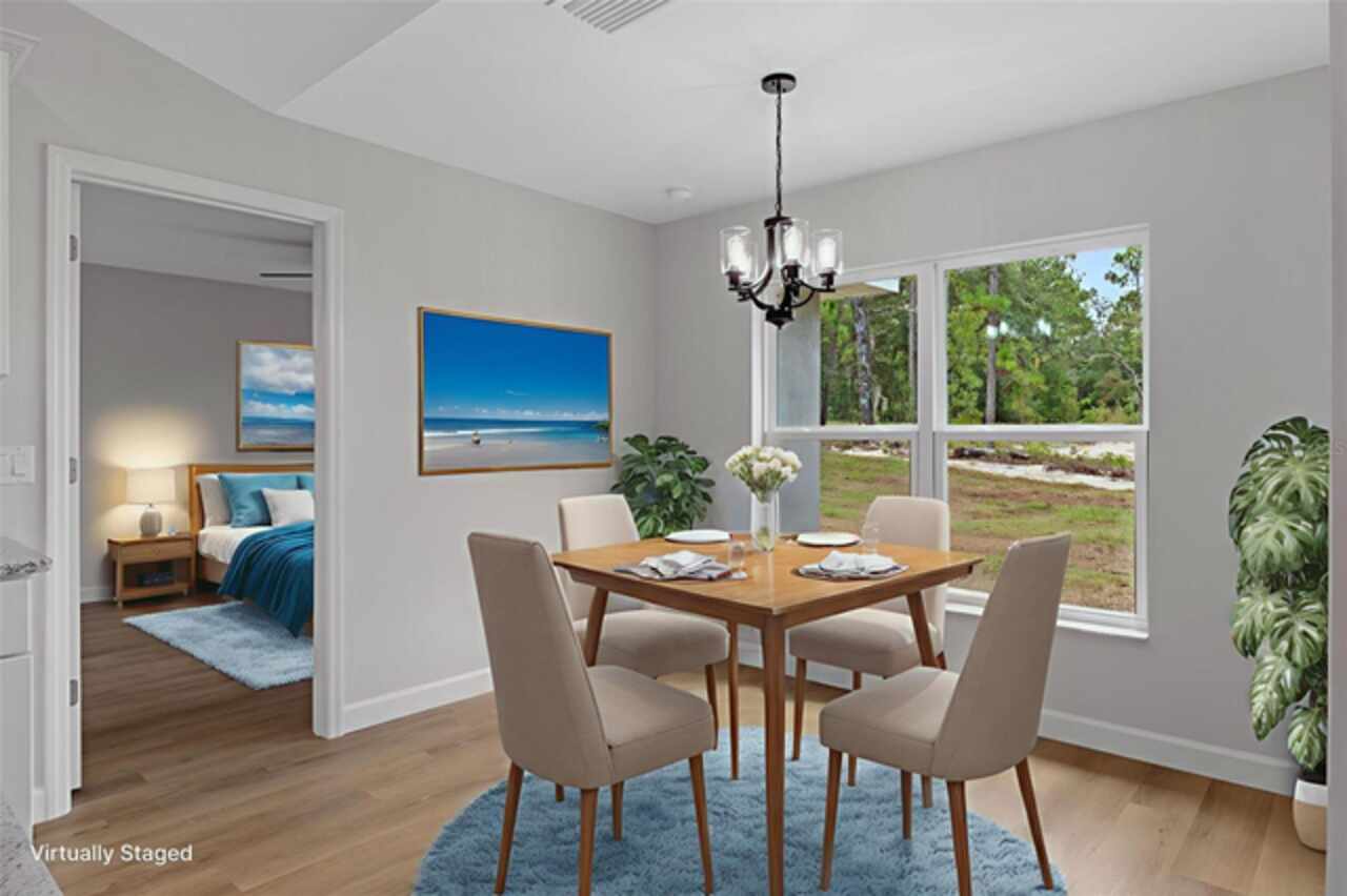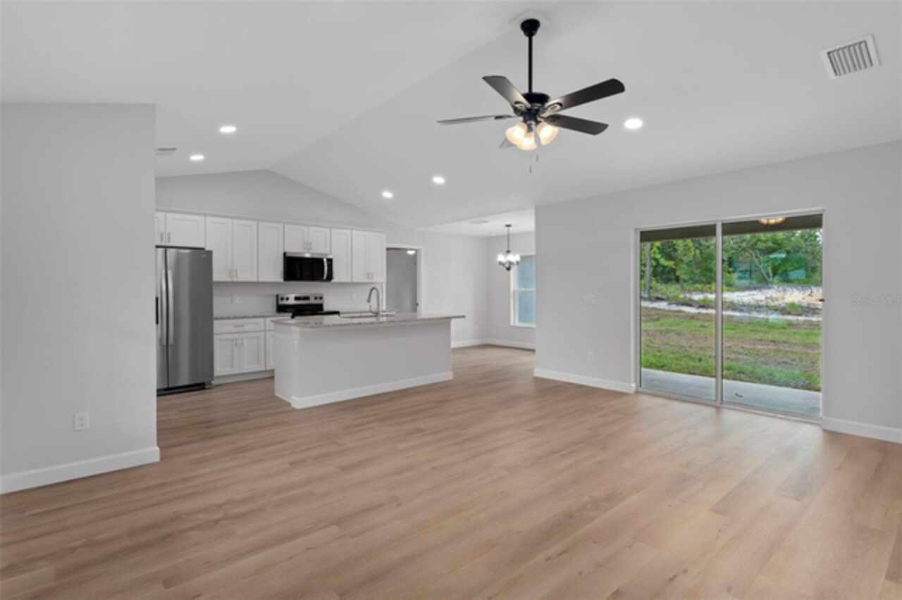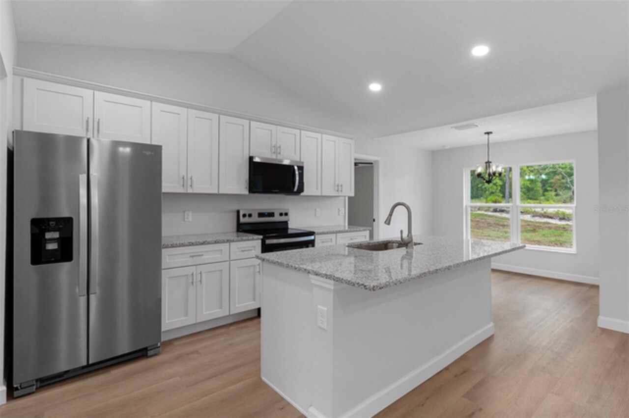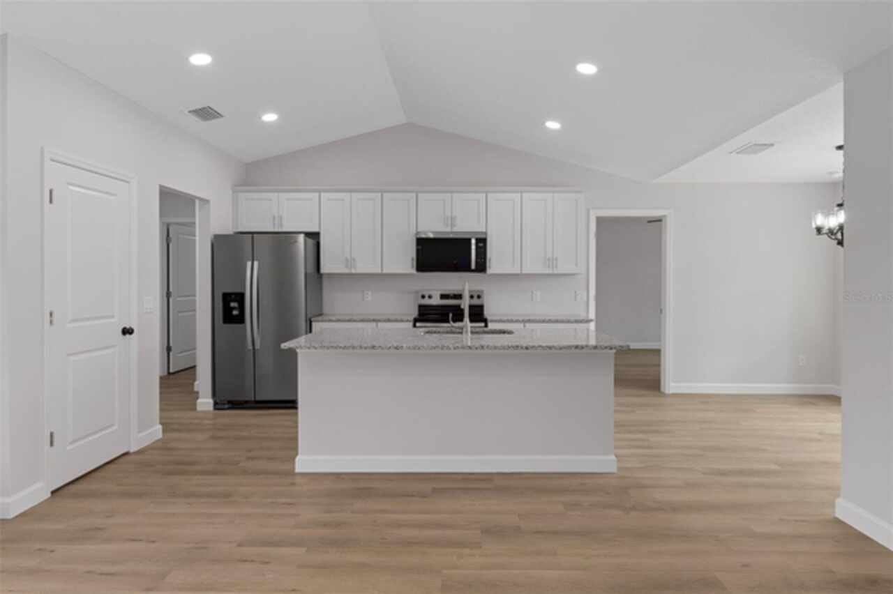 Stunning New Construction with Modern Elegance and Everyday Comfort Step into this beautifully designed brand-new 3-bedroom, 2-bath home featuring an open-concept floor plan and high-end finishes throughout. The heart of the home is a bright, stylish kitchen boasting granite countertops, crisp white cabinetry, stainless steel appliances, and a spacious dining area—perfect for family meals or entertaining friends. Flowing seamlessly from the kitchen, the expansive great room offers an inviting space to relax or gather, all enhanced by durable luxury vinyl plank flooring that runs throughout the home. The bathrooms are finished with elegant tile, adding a touch of timeless sophistication. Unwind in the private primary suite, complete with a walk-in closet and a beautifully appointed ensuite bathroom. An oversized laundry room offers generous storage and convenience for busy households. Enjoy the best of Florida living with both a covered front porch and a covered rear lanai—ideal for morning coffee, evening wine, or simply soaking in the outdoors. This home blends quality craftsmanship, thoughtful design, and modern features—ready for you to move in and make it yours. Some interior photos have been virtually staged.