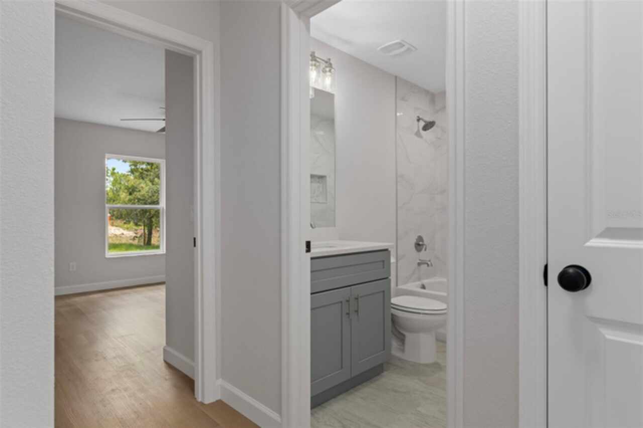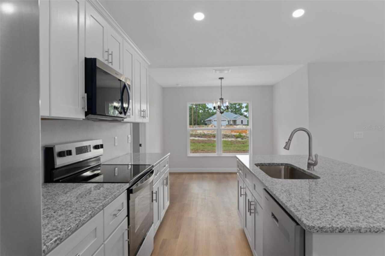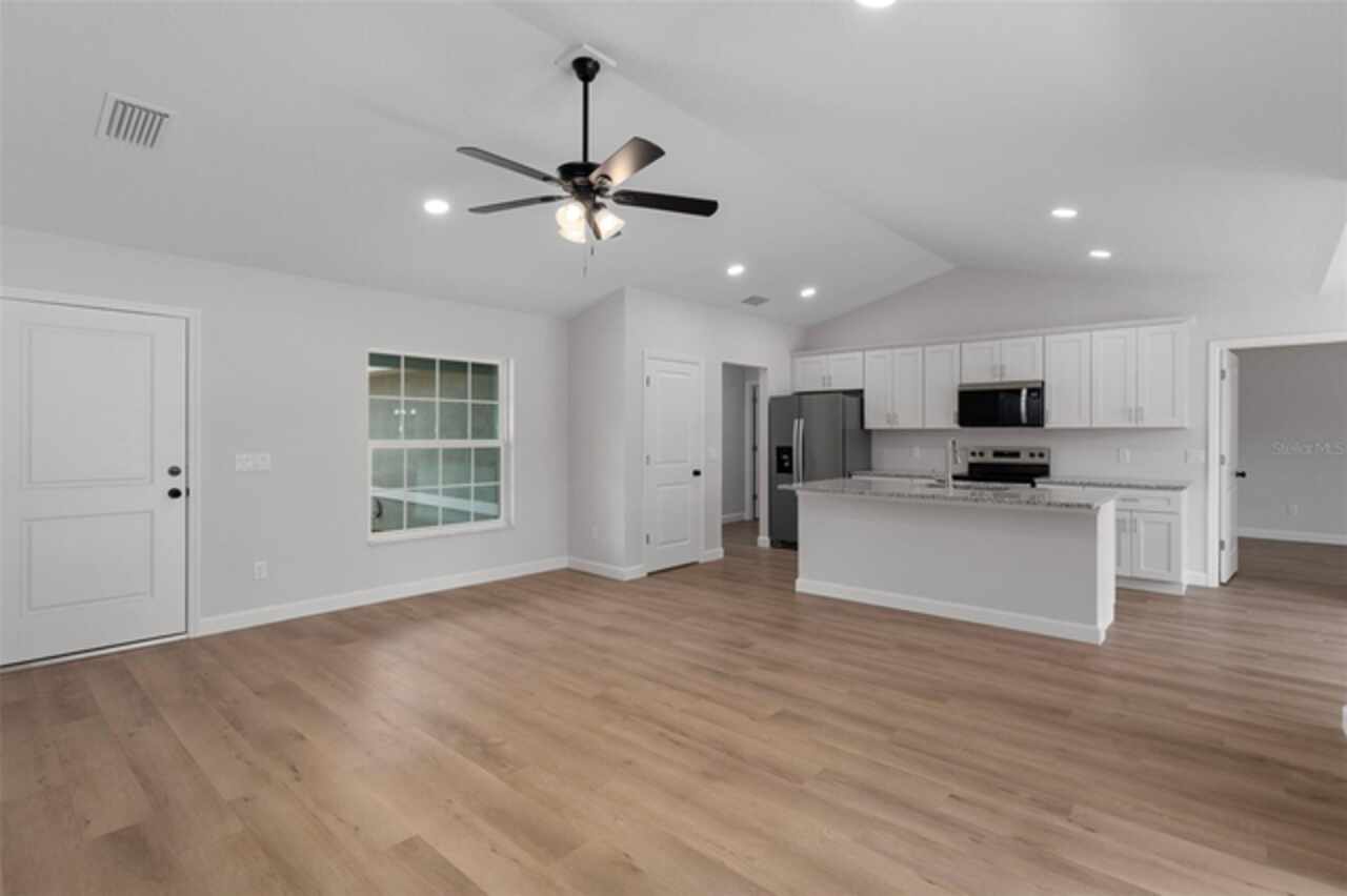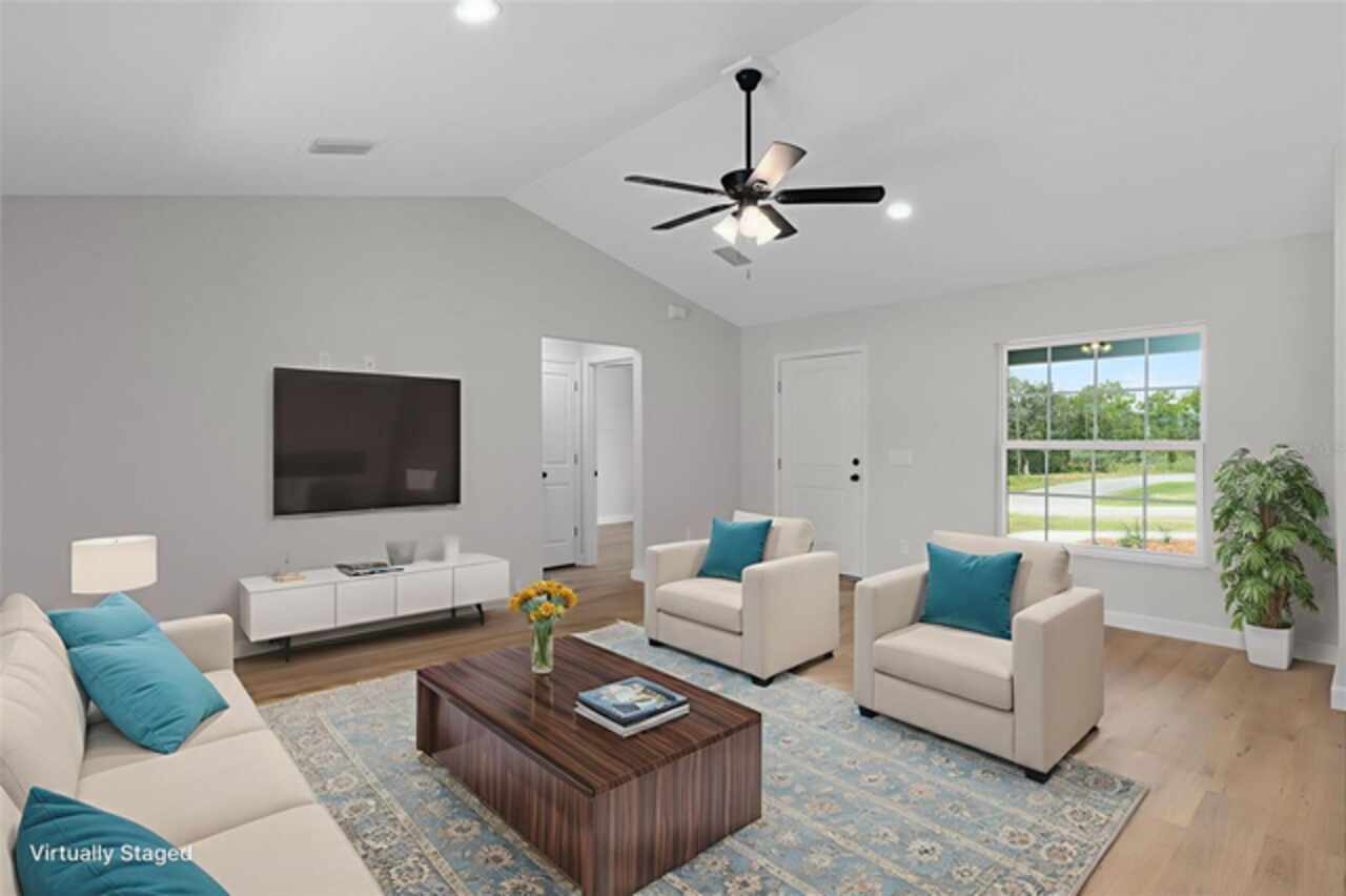 Stunning New Construction with Modern Elegance and Everyday Comfort Step into this beautifully designed brand-new 3-bedroom, 2-bath home featuring an open-concept floor plan and high-end finishes throughout. The heart of the home is a bright, stylish kitchen boasting granite countertops, crisp white cabinetry, stainless steel appliances, and a spacious dining area—perfect for family meals or entertaining friends. Flowing seamlessly from the kitchen, the expansive great room offers an inviting space to relax or gather, all enhanced by durable luxury vinyl plank flooring that runs throughout the home. The bathrooms are finished with elegant tile, adding a touch of timeless sophistication. Unwind in the private primary suite, complete with a walk-in closet and a beautifully appointed ensuite bathroom. An oversized laundry room offers generous storage and convenience for busy households. Enjoy the best of Florida living with both a covered front porch and a covered rear lanai—ideal for morning coffee, evening wine, or simply soaking in the outdoors. This home blends quality craftsmanship, thoughtful design, and modern features—ready for you to move in and make it yours. Some interior photos have been virtually staged.