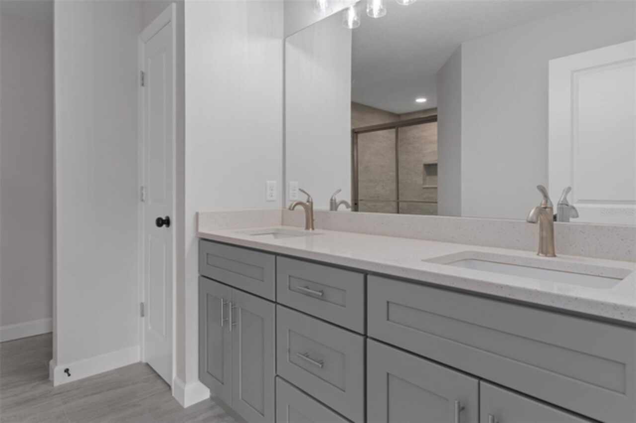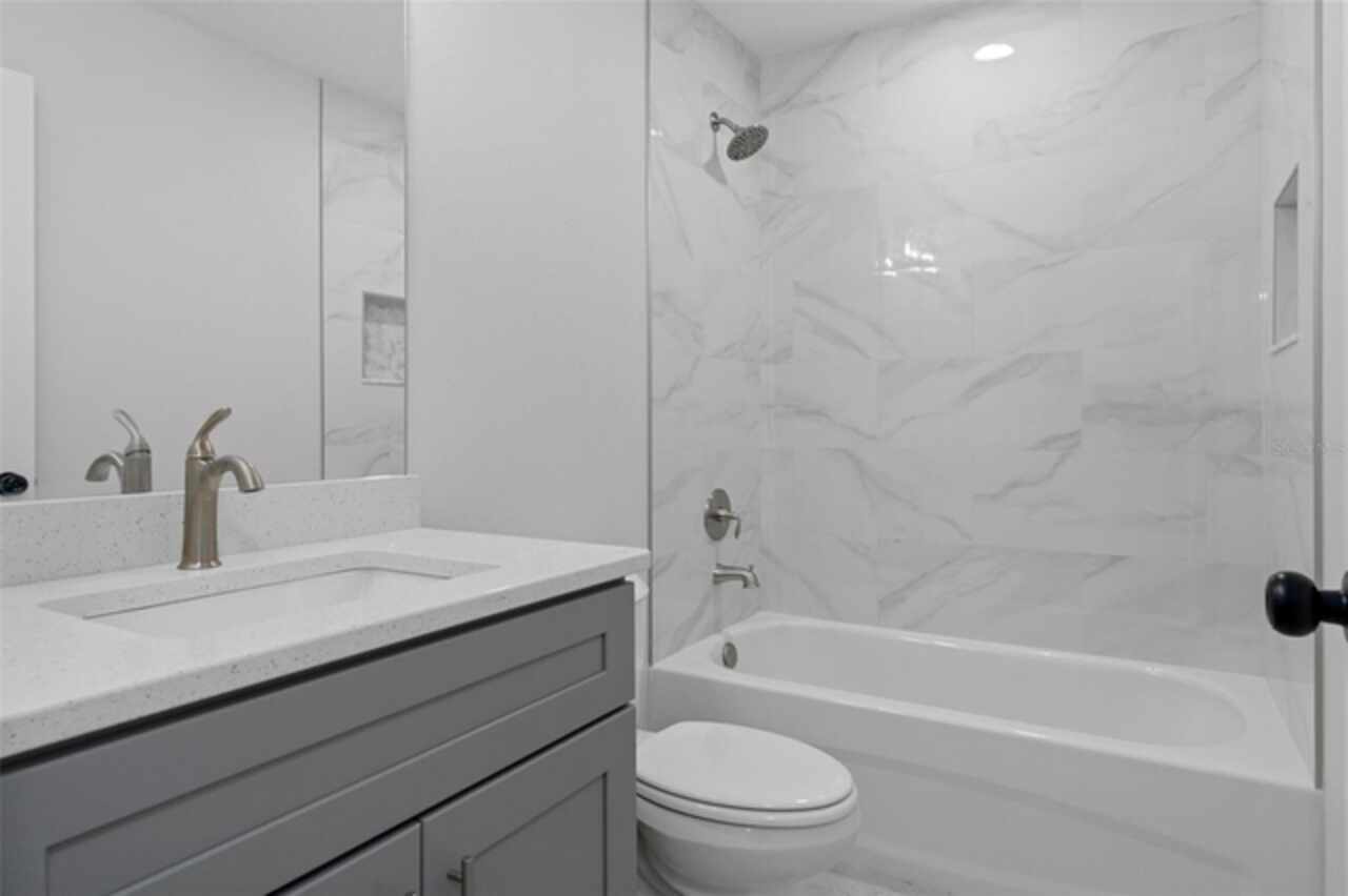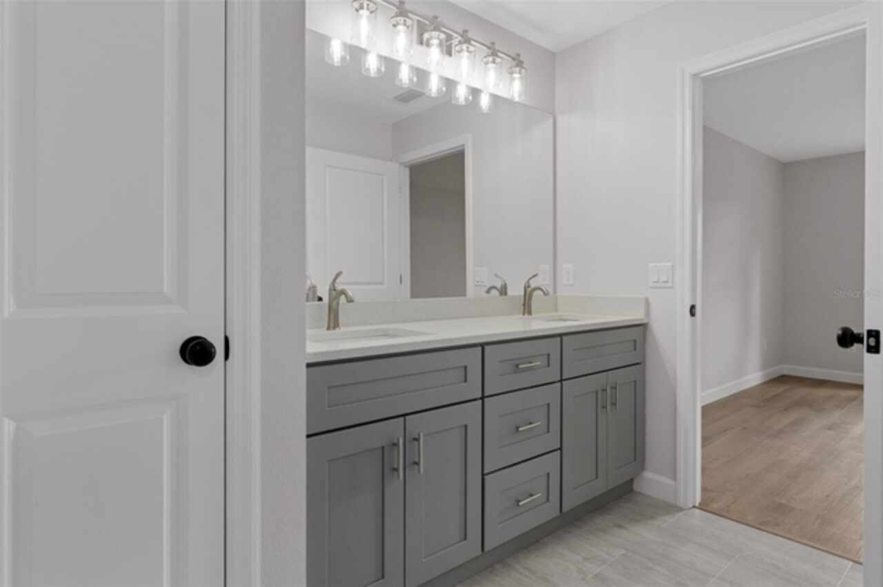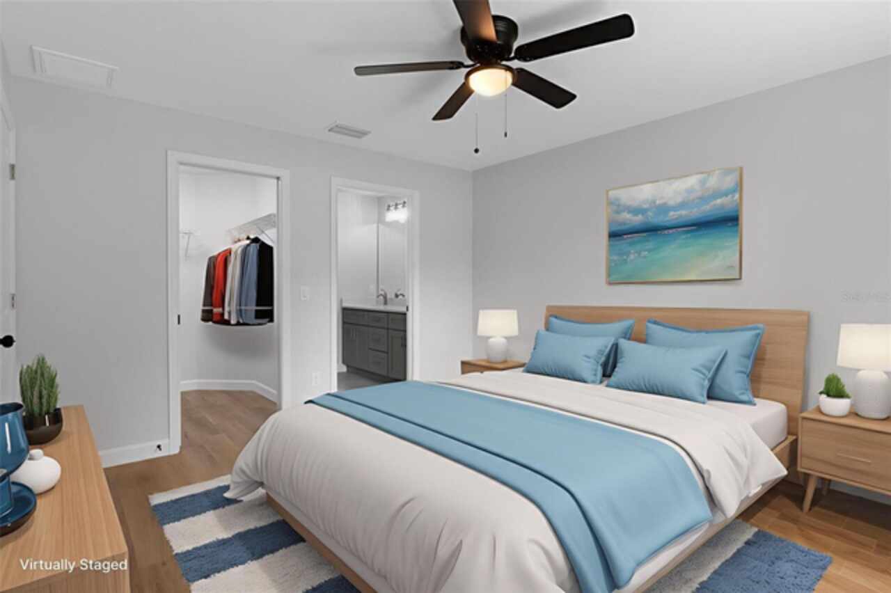 Stunning New Construction with Modern Elegance and Everyday Comfort Step into this beautifully designed brand-new 3-bedroom, 2-bath home featuring an open-concept floor plan and high-end finishes throughout. The heart of the home is a bright, stylish kitchen boasting granite countertops, crisp white cabinetry, stainless steel appliances, and a spacious dining area—perfect for family meals or entertaining friends. Flowing seamlessly from the kitchen, the expansive great room offers an inviting space to relax or gather, all enhanced by durable luxury vinyl plank flooring that runs throughout the home. The bathrooms are finished with elegant tile, adding a touch of timeless sophistication. Unwind in the private primary suite, complete with a walk-in closet and a beautifully appointed ensuite bathroom. An oversized laundry room offers generous storage and convenience for busy households. Enjoy the best of Florida living with both a covered front porch and a covered rear lanai—ideal for morning coffee, evening wine, or simply soaking in the outdoors. This home blends quality craftsmanship, thoughtful design, and modern features—ready for you to move in and make it yours. Some interior photos have been virtually staged.