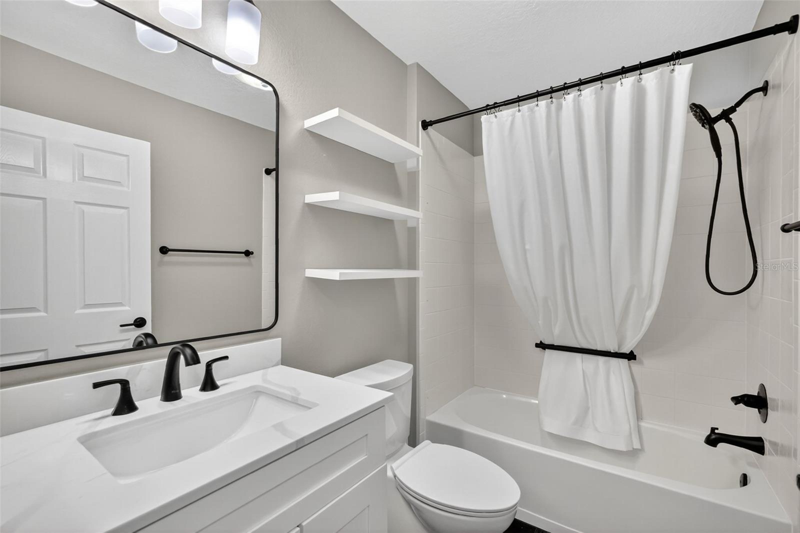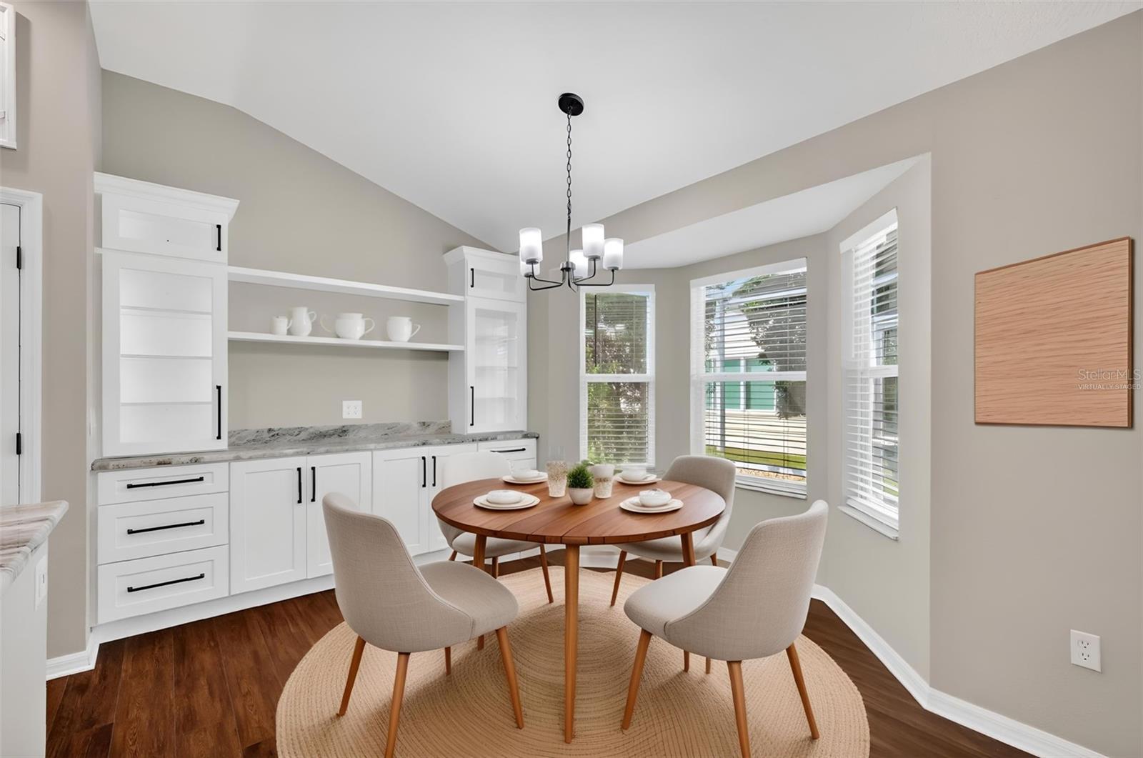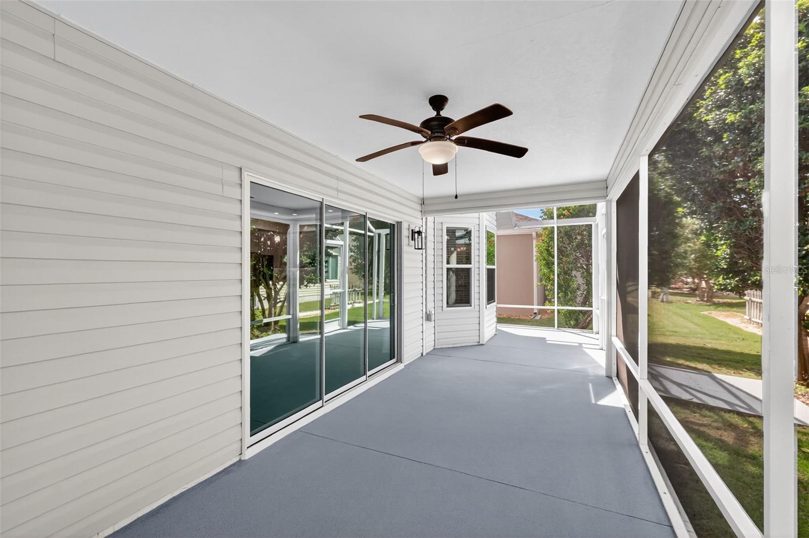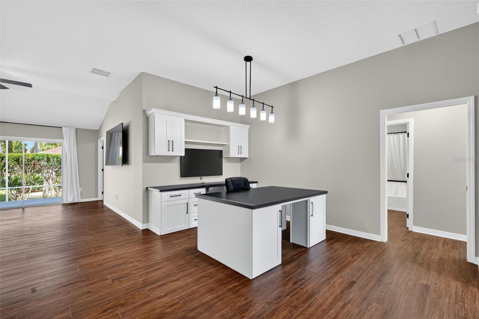 One or more photo(s) has been virtually staged. MAGNIFICENTLY UPDATED, METICULOUSLY MAINTAINED, 3/2 Designer Whispering Pine with SCREENED LANAI and EXTENDED BIRDCAGE surrounded by PRIVACY LANDSCAPING in the highly desirable Village of Hemingway! JUST MINUTES to Lake Sumter Landing! NEW Roof in 2014. NEW Appliances, cabinets, HVAC, and granite countertops in 2023. All FOUR TVs convey with the property. TROPICAL landscaping with STONED beds; SCREENED entry vestibule; and a beautifully ETCHED front door and side lite welcome you in to the GENEROUS foyer of this INCREDIBLE home! The OPEN CONCEPT living, dining, kitchen, and dinette with HIGH VAULTED CEILINGS create a SPACIOUS and VOLUMINOUS main living area. RICH, WOOD-GRAIN, LUXURY VINYL PLANK flooring flows SEAMLESSLY THROUGHOUT the ENTIRE home! The STUNNING KITCHEN is the heart of the home, combining high-end finishes with thoughtful functionality. With no detail overlooked, it showcases MODERN 42" WHITE, SHAKER cabinetry; ELEGANT, GRANITE countertops and backsplashes; UNDER-CABINET lighting; STAINLESS appliances; PANTRY closet; and an IMMENSE L-shaped CENTER ISLAND for additional prep space and seating. An adjacent dinette features a VAULTED ceilings; EXTENDED, WHITE SHAKER, GLASS-FRONT cabinetry with GRANITE countertop, and BAY WINDOW. The formal dining room is currently used as a craft area. It features a large removal desk and WHITE SHAKER cabinets with shelving, and EBONY countertop that would make a fabulous dining buffet! From the living room, a DOUBLE SET of sliding glass doors lead you into the INCREDIBLE OUTDOOR OASIS of the lanai and EXTENDED birdcage! PRIVACY LANDSCAPING surrounds this WONDERFUL space, making it perfect for entertaining! Soak up the Florida sun, or simply sit under the covered lanai and enjoy the BEAUTY of this BACKYARD PARADISE! Back inside, the luxurious primary bedroom boasts a high VAULTED ceiling, DOUBLE windows, and a LARGE WALK-IN closet. Its en-suite bathroom features WHITE cabinetry, DOUBLE vanities, TILED ROMAN-STYLE WALK-IN shower, and a separate water closet. A second bedroom and bathroom are CONVENIENTLY LOCATED, near the front of the home, behind a POCKET DOOR, creating a PRIVATE GUEST WING. Bedroom two features DOUBLE windows and a built-in closet. The second bathroom offers a WHITE SHAKER vanity with QUARTZ countertop; TILED tub and shower combination; and a hallway LINEN closet. The third bedroom (no closet) boasts a DOUBLE -DOOR entry and TWO windows. This additional room can double as either a home office, den, or an additional sleeping area for guests. An INTERIOR laundry room features front load EBONY washer and dryer with CUSTOM-MADE WOOD top; a UTILITY sink, and additional WHITE SHAKER cabinetry for extra STORAGE. The two-car garage offers PAINTED floors, SHELVING, fan, television, and PLENTY of room for parking! DON'T MISS YOUR OPPORTUNITY to make this GORGEOUS HOME in a FANTASTIC LOCATION YOUR OWN! The Village of Hemingway is nestled in the heart of the Villages between Lake Sumter Landing and Brownwood Paddock Squares; Havana and Bonifay Golf and Country Clubs; Sarasota Golf Academy Practice Center; Truman, Seabreeze, and Colony Cottage Recreation Centers; Hemingway Pool along with multiple pools and pickle ball courts; and CR466A and CR466 with an abundance of shopping, restaurants, banks, medical, and more! PLEASE WATCH OUR WALKTHROUGH VIDEO of this STUNNING HOME and call today to schedule your Private Showing or Virtual Tour!
