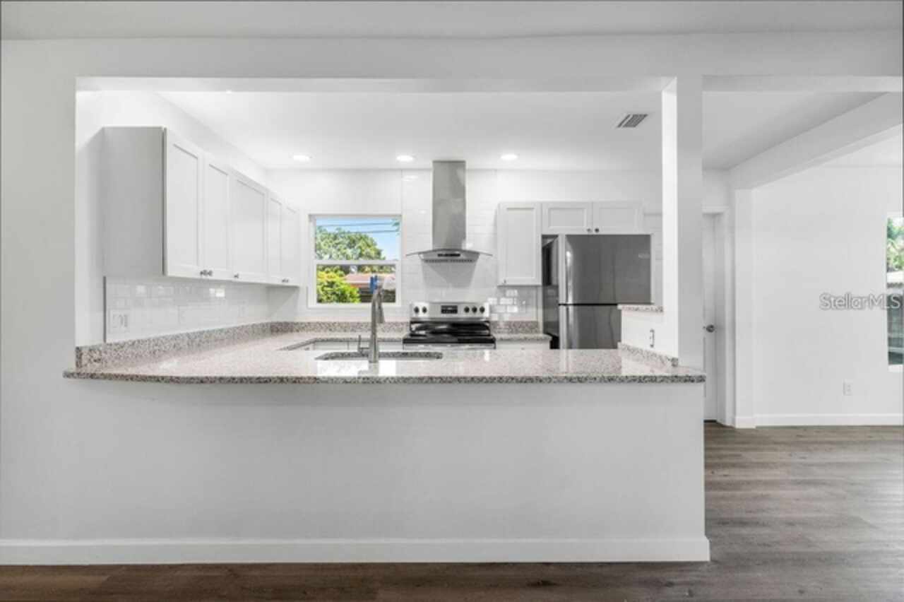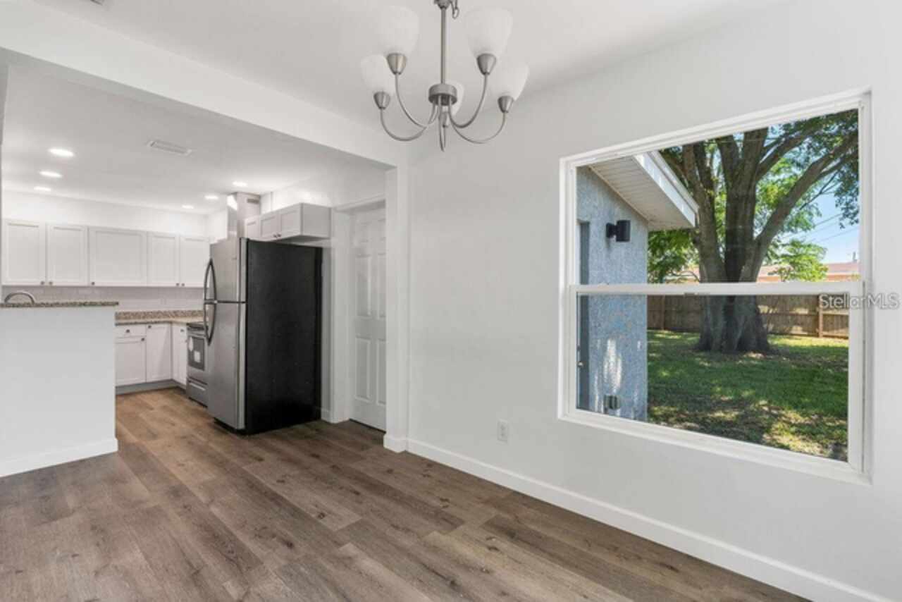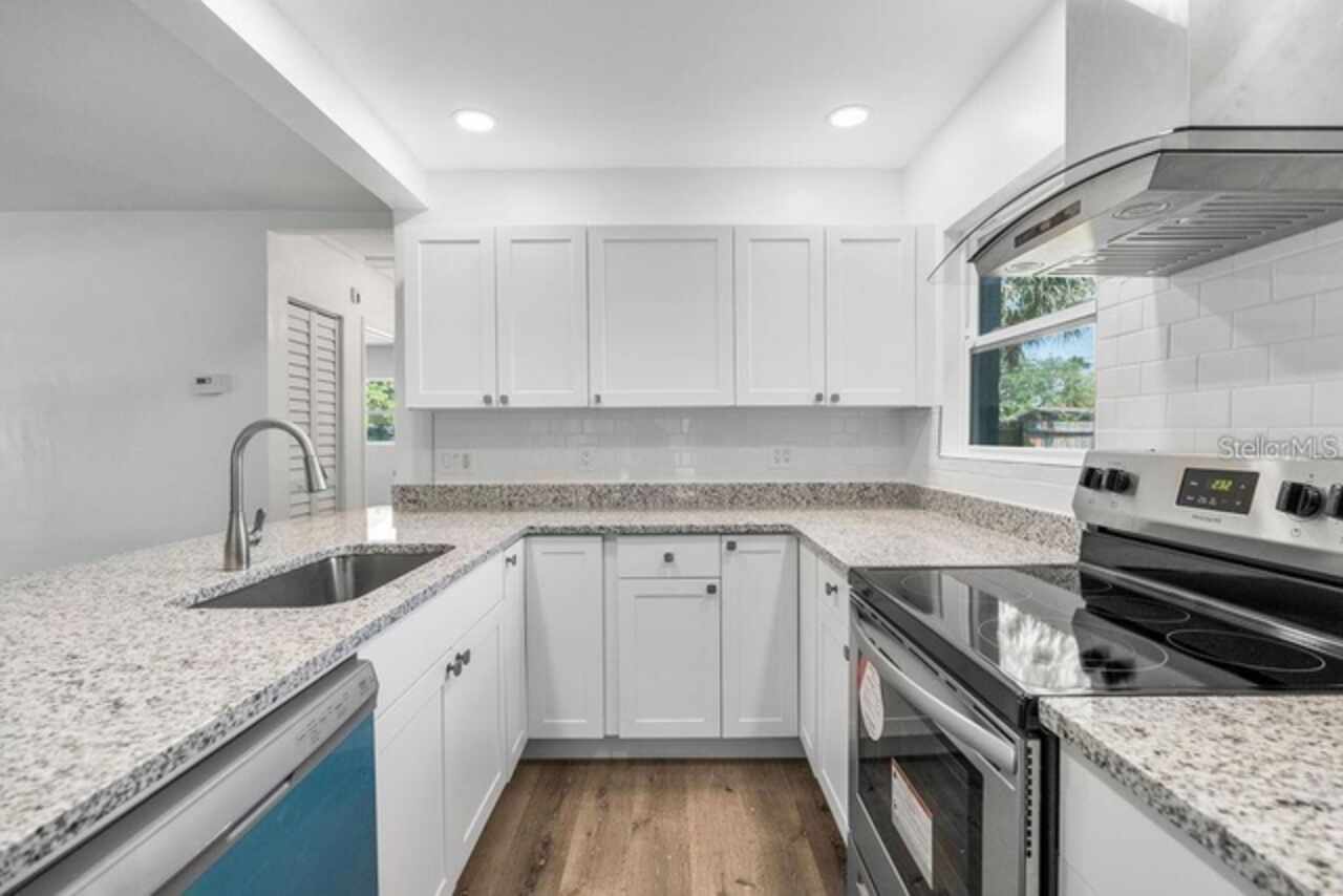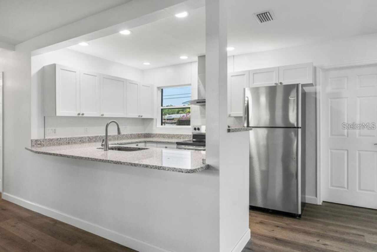 Charming 3/2 with mature landscaping in the heart of Jungle Terrace within Teresa Gardens. Less than one mile to Tyrone Mall. Walking distance to Tyrone Middle, walk to 74th Street Elementary. Azalea middle less than 2 miles away. Near all local beaches! Less than 10-minute drive to Saint Pete Beach! New white vinyl 6ft fence installed March 2024 with extra-large swing gates. Brand new shed installed 2023. Brand new luxury vinyl 12mm flooring installed May 2024. New AC installed 2021, New roof in 2021. Kitchen with quartz countertops, new appliances 2021 including new range. Recessed lighting in kitchen. Master bedroom with large wall-to-wall closet, and en-suite bathroom featuring LED adjustable vanity. Dining room with built-in pantry and two large windows overlooking the large backyard/ back patio. Laundry room in the back of the home connects to the backyard. Electrical installed in master bedroom closet ready for wired Ring camera installation overlooking the driveway. Each room with ceiling fans, and remote controllers.