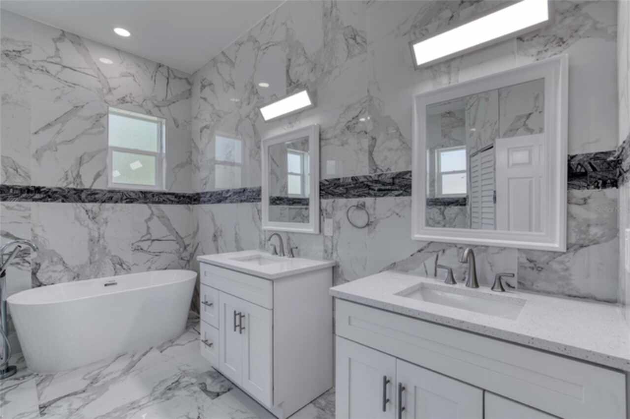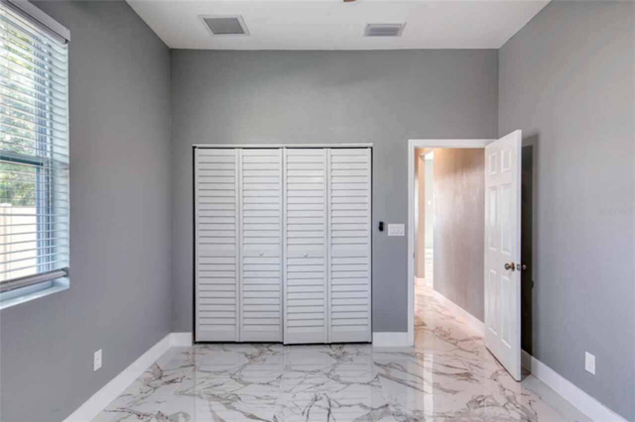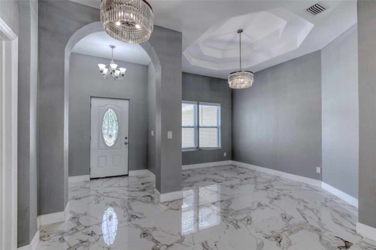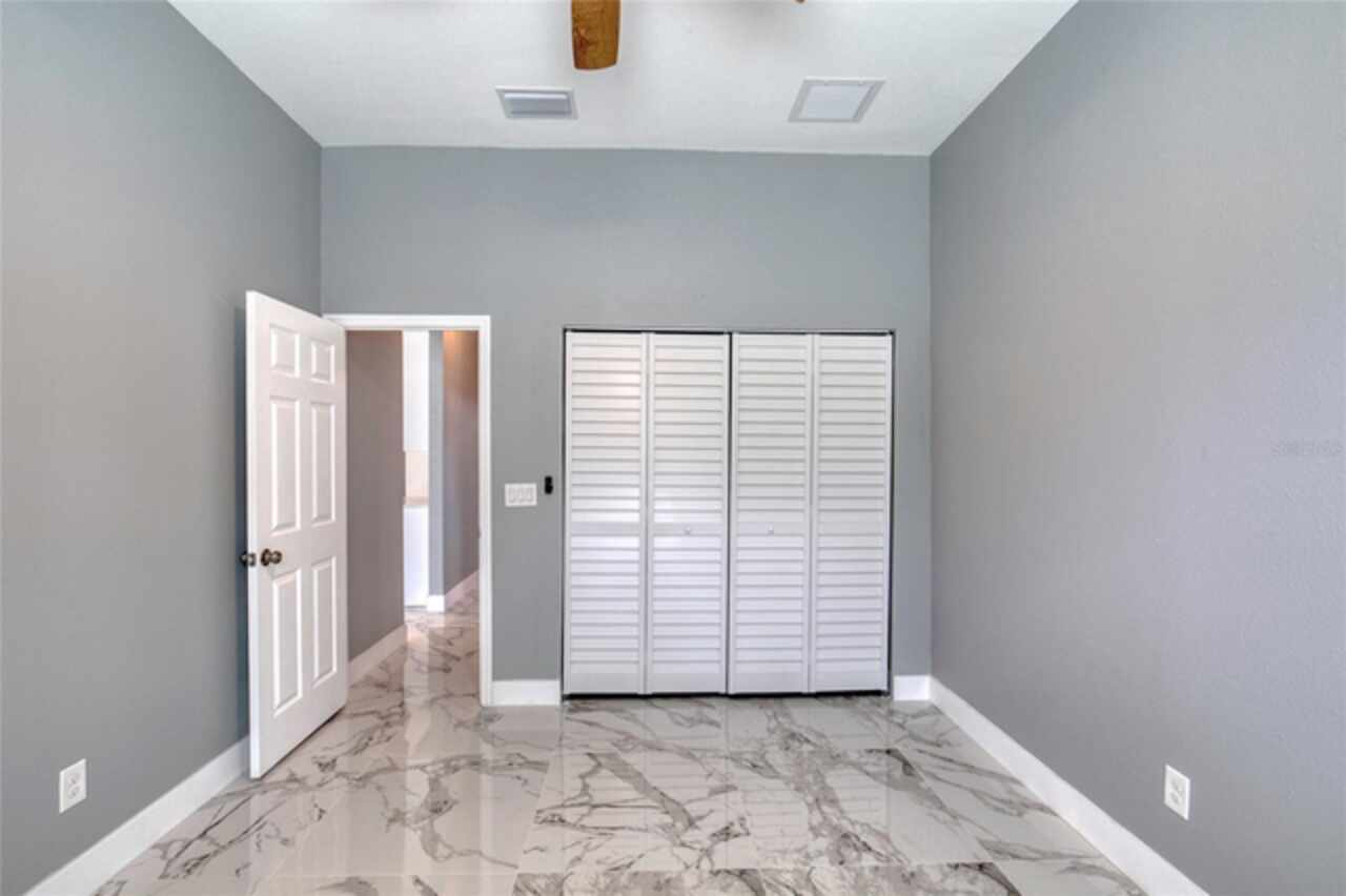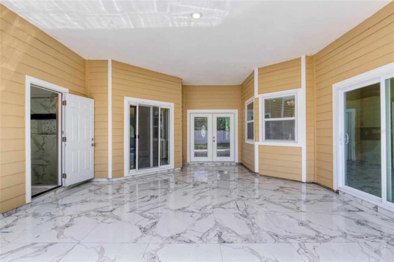 This newly remodeled 3-bedroom, 3-bathroom home in the desirable Pine Lakes subdivision is move-in ready and designed with modern living in mind. Step inside to find 30'' x 30'' porcelain tile floors throughout, a split floor plan offering privacy and function, and a stunning chef's kitchen with quartz countertops that carry through to the bathrooms. The spacious primary suite features elegant tray ceilings, a large walk-in closet, and a spa-like bathroom with dual vanities, a glass-enclosed shower, and a luxurious stand-alone soaking tub. Enjoy seamless indoor-outdoor living with sliding glass doors leading to a deep, covered veranda, complete with its own full outdoor bathroom—perfect for entertaining. The backyard is fully enclosed with a 6' white vinyl privacy fence and offers ample space for a future in-ground pool. Located just moments from Pine Lakes Golf Club, residents can also take advantage of the area's many trails for biking, jogging, and skating. With a brand new roof, hot water heater, and HVAC, this home is turn key ready. All information entered in the MLS in intended to be 100% accurate but cannot be guaranteed.