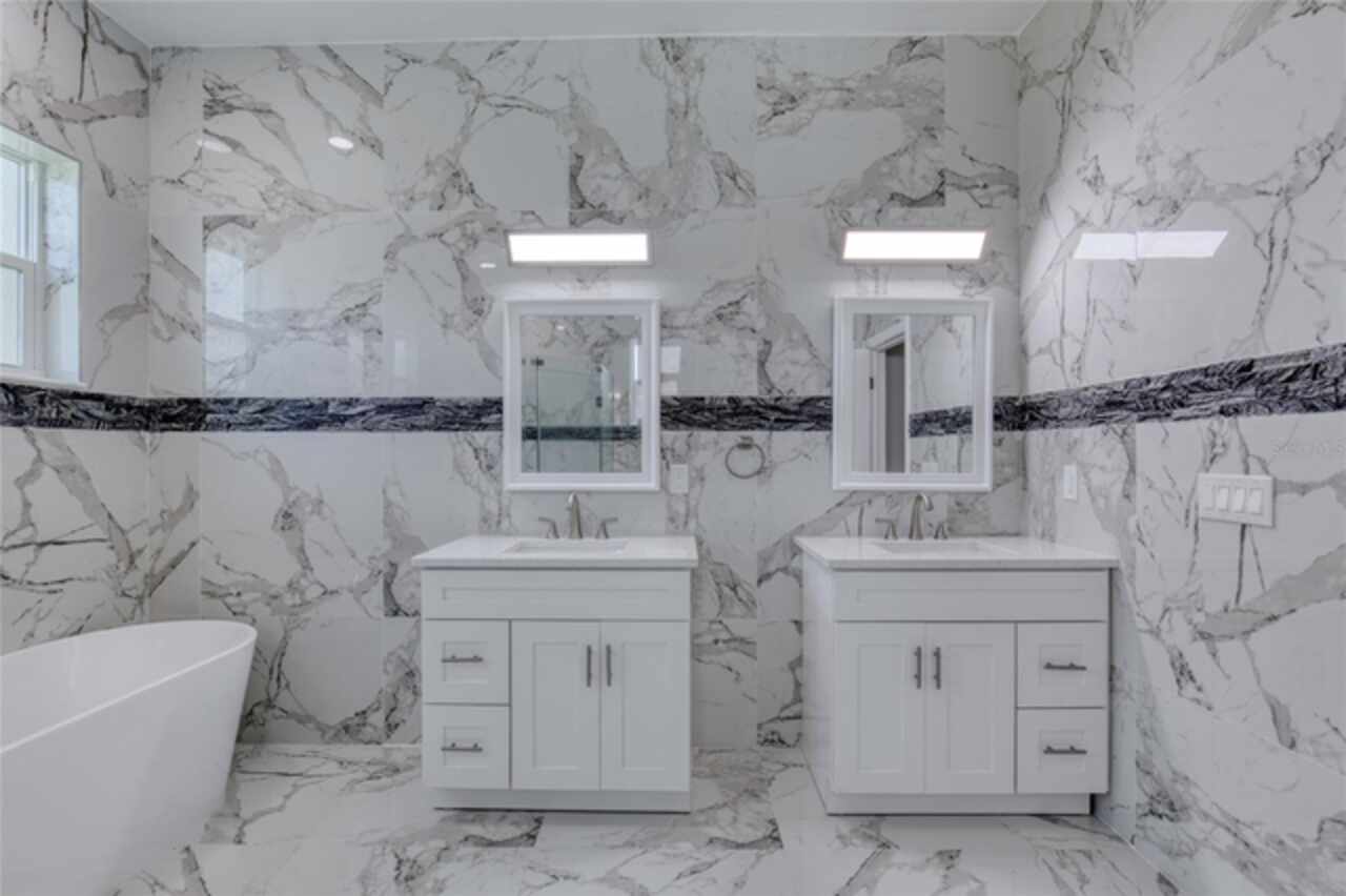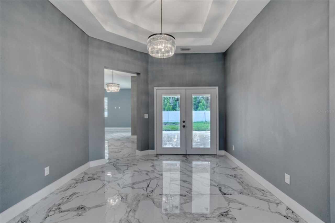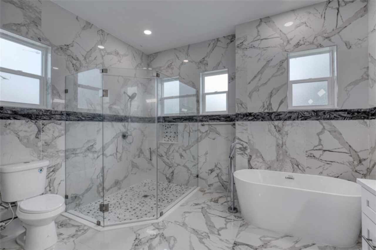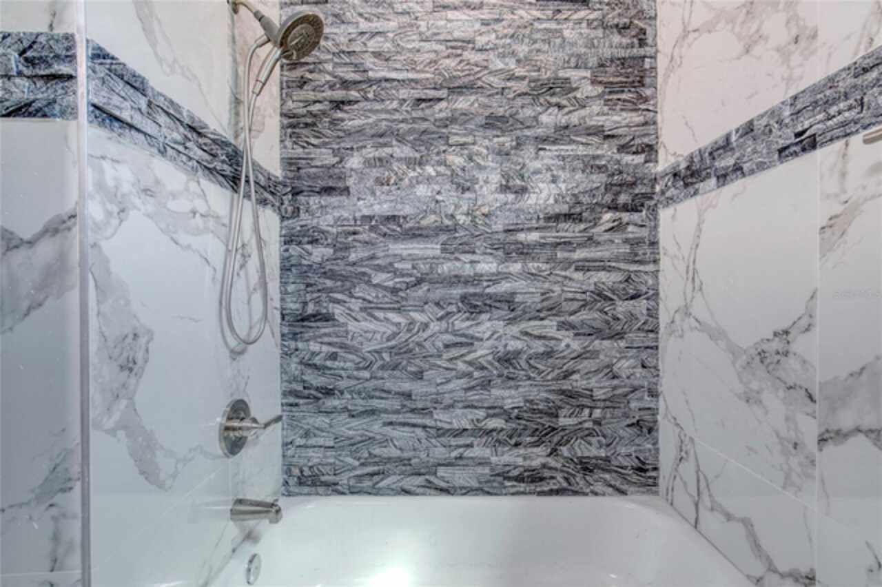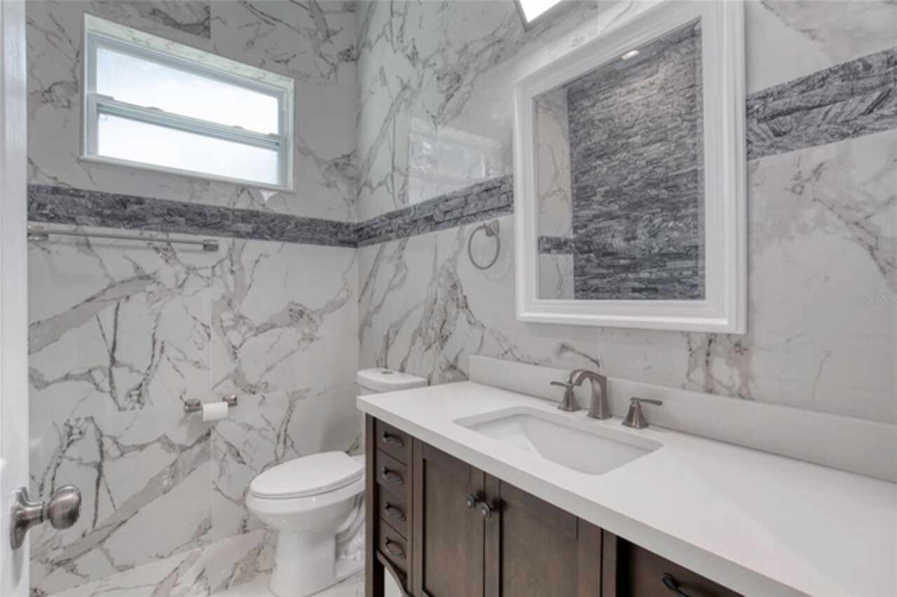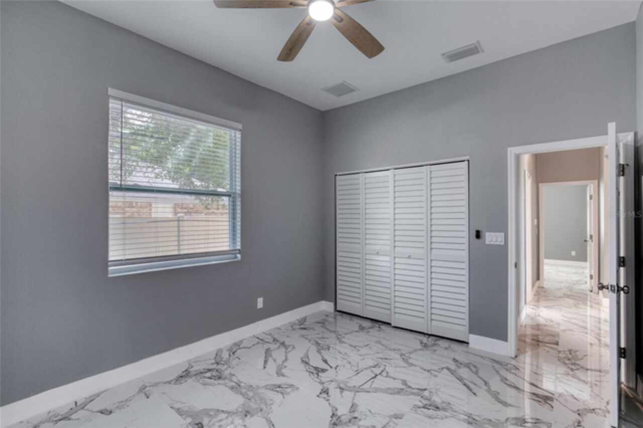 This newly remodeled 3-bedroom, 3-bathroom home in the desirable Pine Lakes subdivision is move-in ready and designed with modern living in mind. Step inside to find 30'' x 30'' porcelain tile floors throughout, a split floor plan offering privacy and function, and a stunning chef's kitchen with quartz countertops that carry through to the bathrooms. The spacious primary suite features elegant tray ceilings, a large walk-in closet, and a spa-like bathroom with dual vanities, a glass-enclosed shower, and a luxurious stand-alone soaking tub. Enjoy seamless indoor-outdoor living with sliding glass doors leading to a deep, covered veranda, complete with its own full outdoor bathroom—perfect for entertaining. The backyard is fully enclosed with a 6' white vinyl privacy fence and offers ample space for a future in-ground pool. Located just moments from Pine Lakes Golf Club, residents can also take advantage of the area's many trails for biking, jogging, and skating. With a brand new roof, hot water heater, and HVAC, this home is turn key ready. All information entered in the MLS in intended to be 100% accurate but cannot be guaranteed.