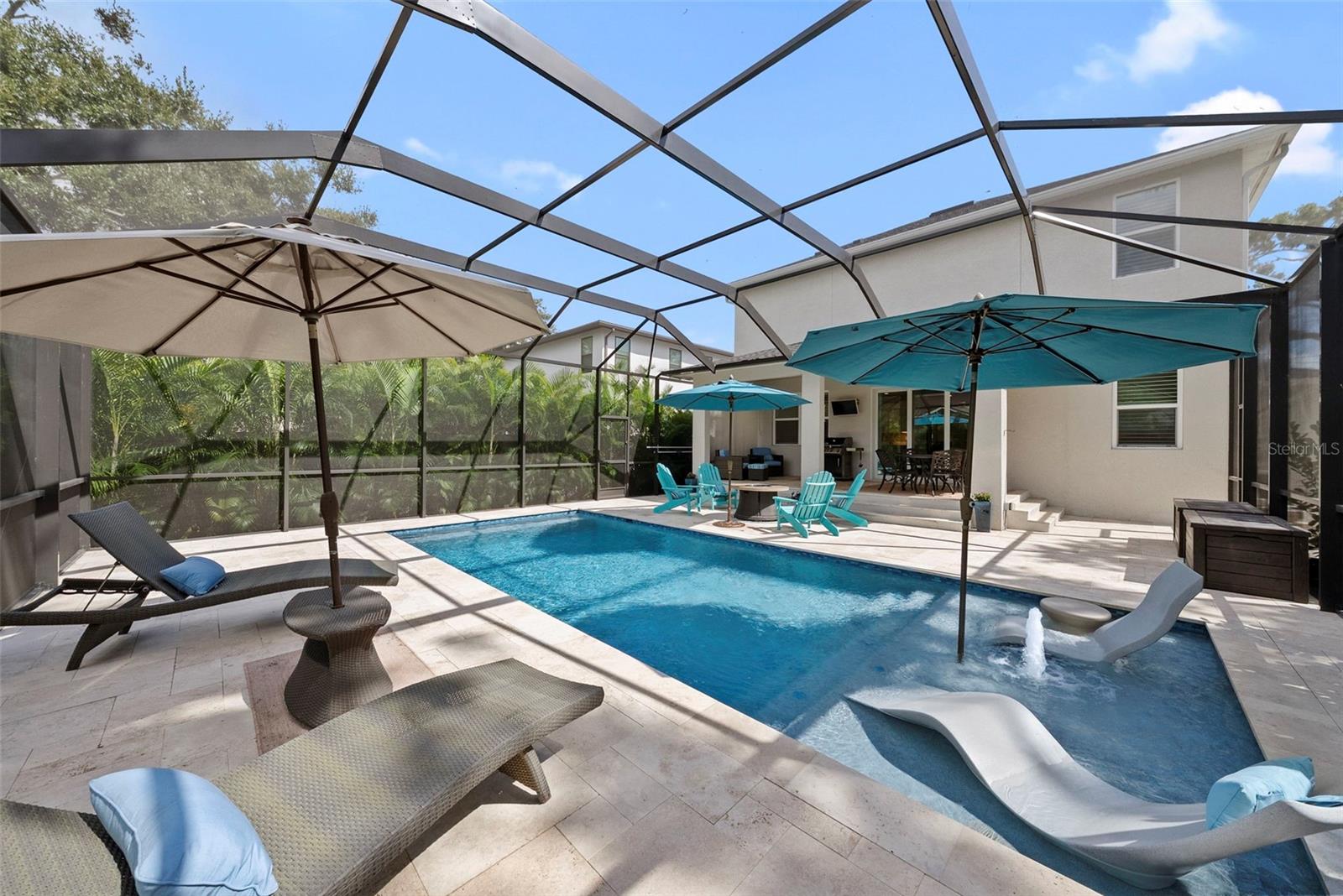 Under contract-accepting backup offers. Welcome to this impeccably built 2023 POOL home, perfectly situated on an oversized lot in a no-flood zone in the heart of South Tampa. Designed with modern luxury, energy efficiency, and everyday comfort in mind, this spacious residence truly stands out. Step inside to an open and inviting floor plan featuring 4 bedrooms, 3 full bathrooms, and a versatile bonus loft. The first-floor bedroom and bath are ideal for guests or multi-generational living. The gourmet kitchen is a chef’s dream with stone countertops, a stainless farmhouse sink, high-end appliances, and oversized pantry. The open-concept great room provides flexible space for dining, entertaining, or a home office, while the adjacent family room creates a cozy space for everyday living. Outside, enjoy the lushly landscaped private oasis from your peaceful shaded lanai or relaxing on the sun shelf of your resort-style pool. An air-conditioned shed adds extra utility, and there’s fence-enclosed parking and shore power 50-amp outlet for boat or RV. Upstairs, the primary suite offers a spacious retreat with a spa-like bath featuring a soaking tub, walk-in shower, and large custom closet. Two guest bedrooms share a stylish full bath, and the laundry room includes high-end washer and dryer for added convenience. Additional highlights include hardwood floors, plantation shutters, impact windows, and a 3-car garage with ample storage. Perfectly situated halfway between Westshore and Bayshore, close to everything in South Tampa and easy access to Downtown Tampa or St.Petersburg without being in a flood zone— this home offers the perfect blend of luxury and lifestyle.