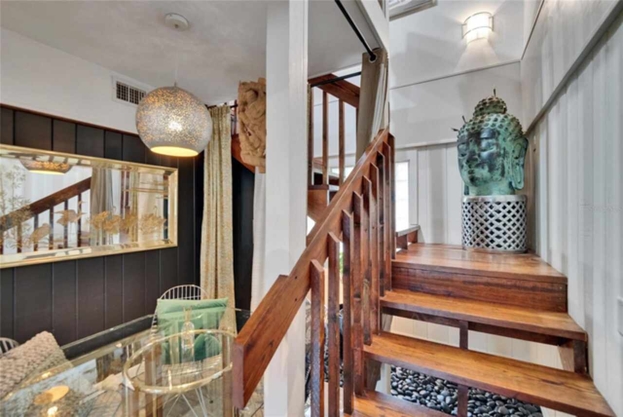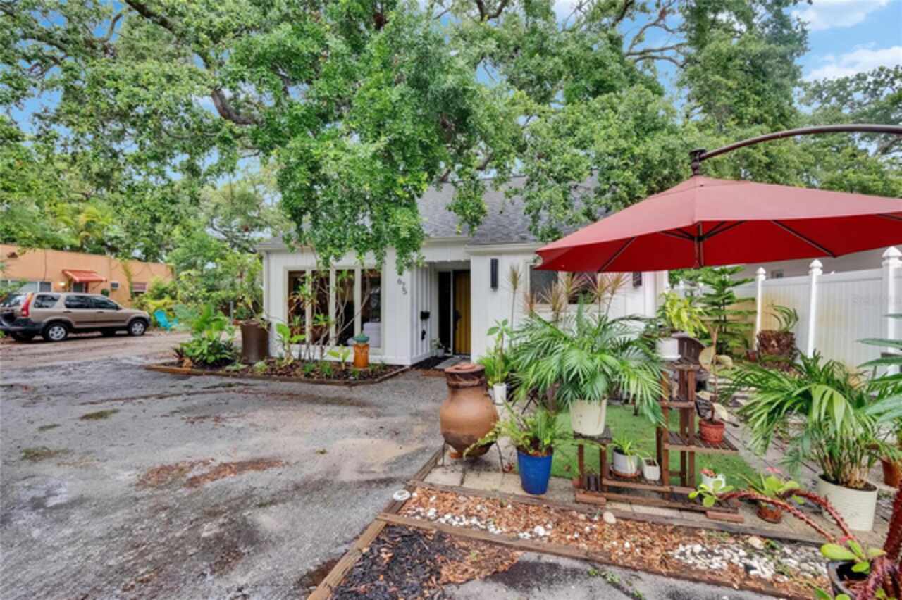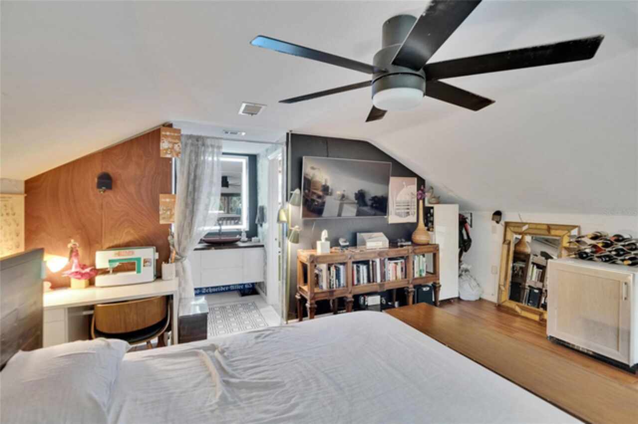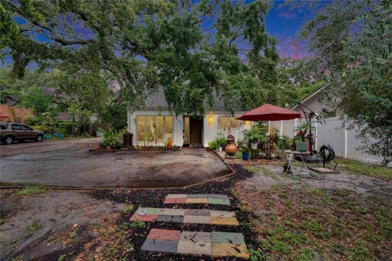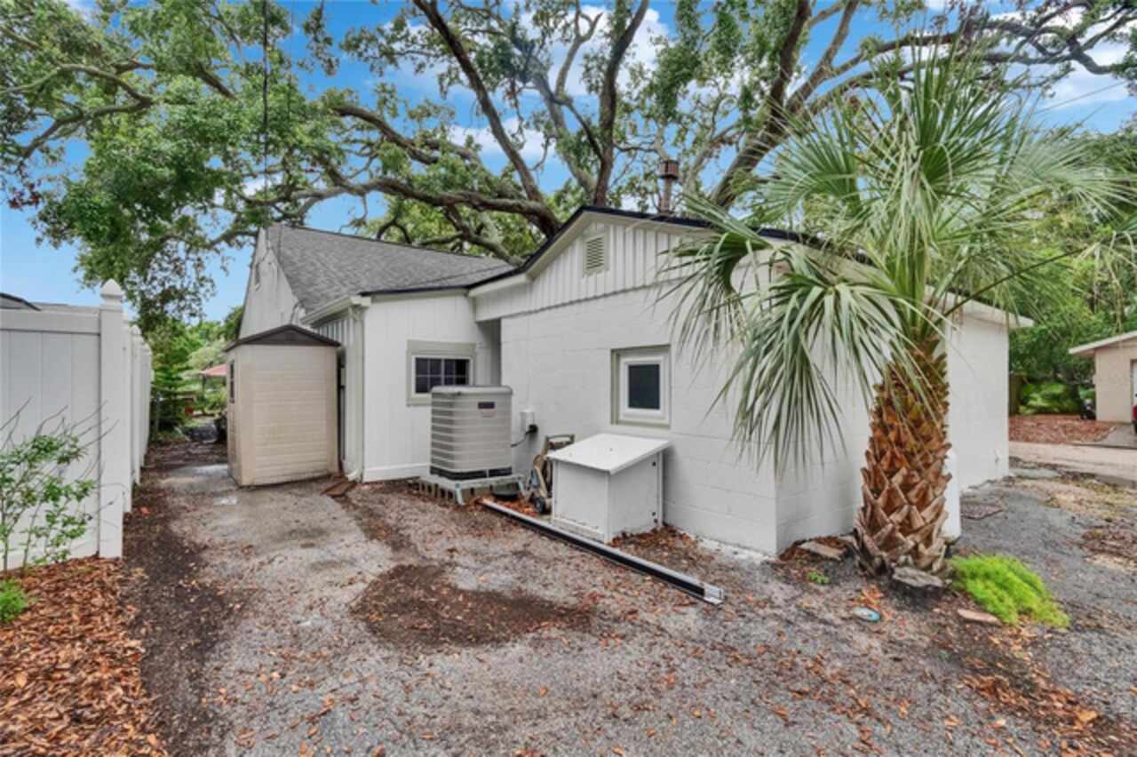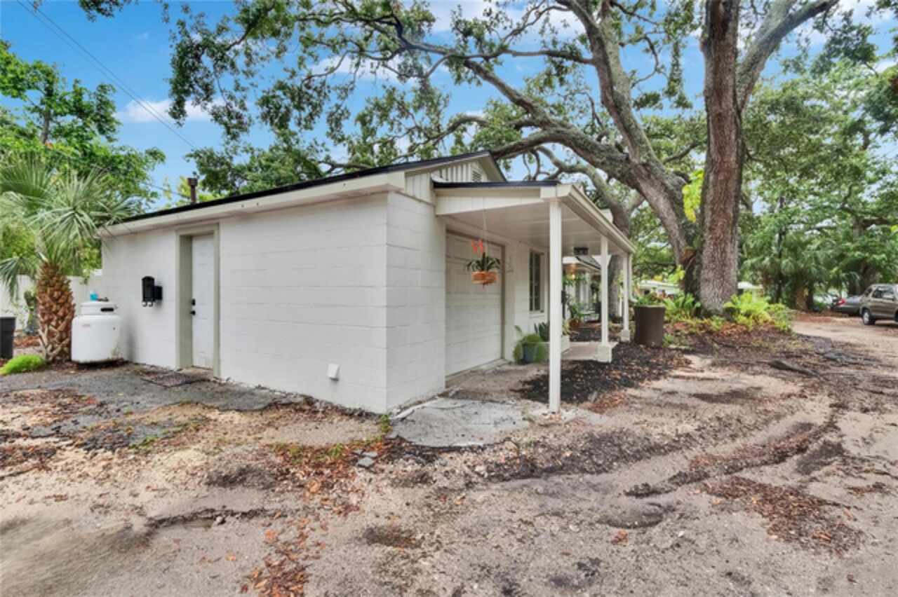 It is not often that you find such a unique, affordable property with easy access to all that stunning St. Pete offers! This home under the trees functions as the perfect duplex style property with multiple options for added privacy or rental potential. There are 3 bedroom suites with ensuite bathrooms making this a roommate's dream! As you enter you will immediately love the beautiful porcelain and marble flooring with various other unique touches throughout the home. To the left is the living room complete with built in cabinets and a wet bar. To the right of the front door is the first bedroom suite complete with double vanity and walk-in tile shower in the ensuite bathroom. As you continue you'll find the fully updated kitchen, dining area, and stair case to the loft. The loft features the 2nd bedroom suite that feels like you're truly living in a tree house where you can enjoy the oversized bedroom and statement vanity leading into the ensuite bathroom. Back downstairs as you continue you enter the back of the home that functions as a fully separate dwelling complete with living room/den, another full kitchen, and the 3rd bedroom with ensuite bathroom. There is a private entrance door in that living space and the bedroom making it perfect for a rental or scenario where people need to come and go freely. There is also a 1 car garage (including the laundry area), plenty of parking including alley access, and a front patio area to enjoy the peaceful ambiance of this shaded lot. If all of this isn't great enough, the roof was replaced and exterior painted in 2025 and kitchen and bathroom updates were completed in 2023 giving you true ease of ownership to move right in and make it your own. All of this is within minutes to boat ramps, parks, and so many other fabulous aspects of life in St. Pete so bring your boat or jet skis and get ready to enjoy the summer on the water! You do not want to miss out on this one-of-a-kind property so schedule your showing today!