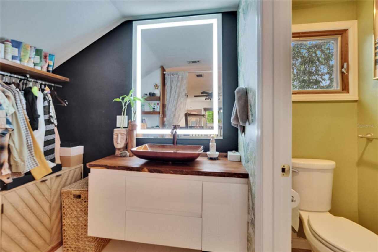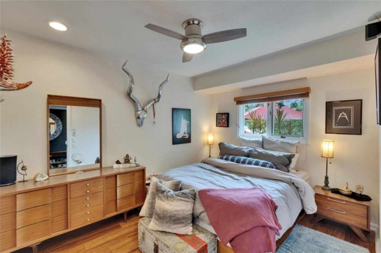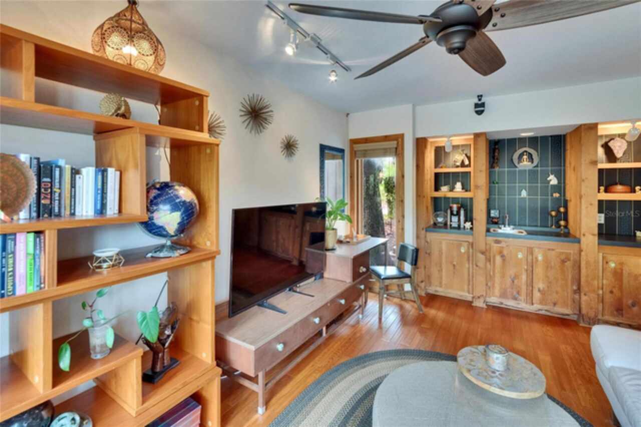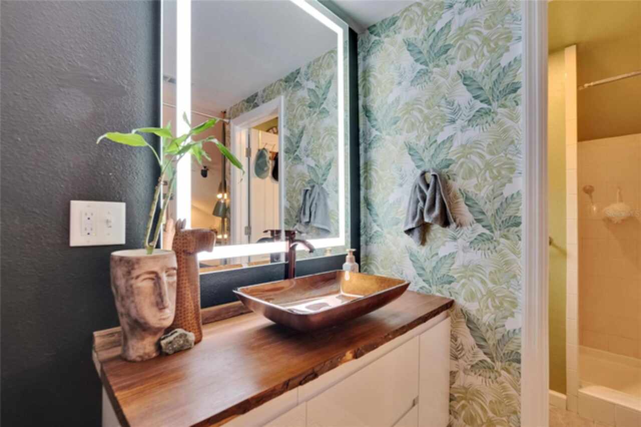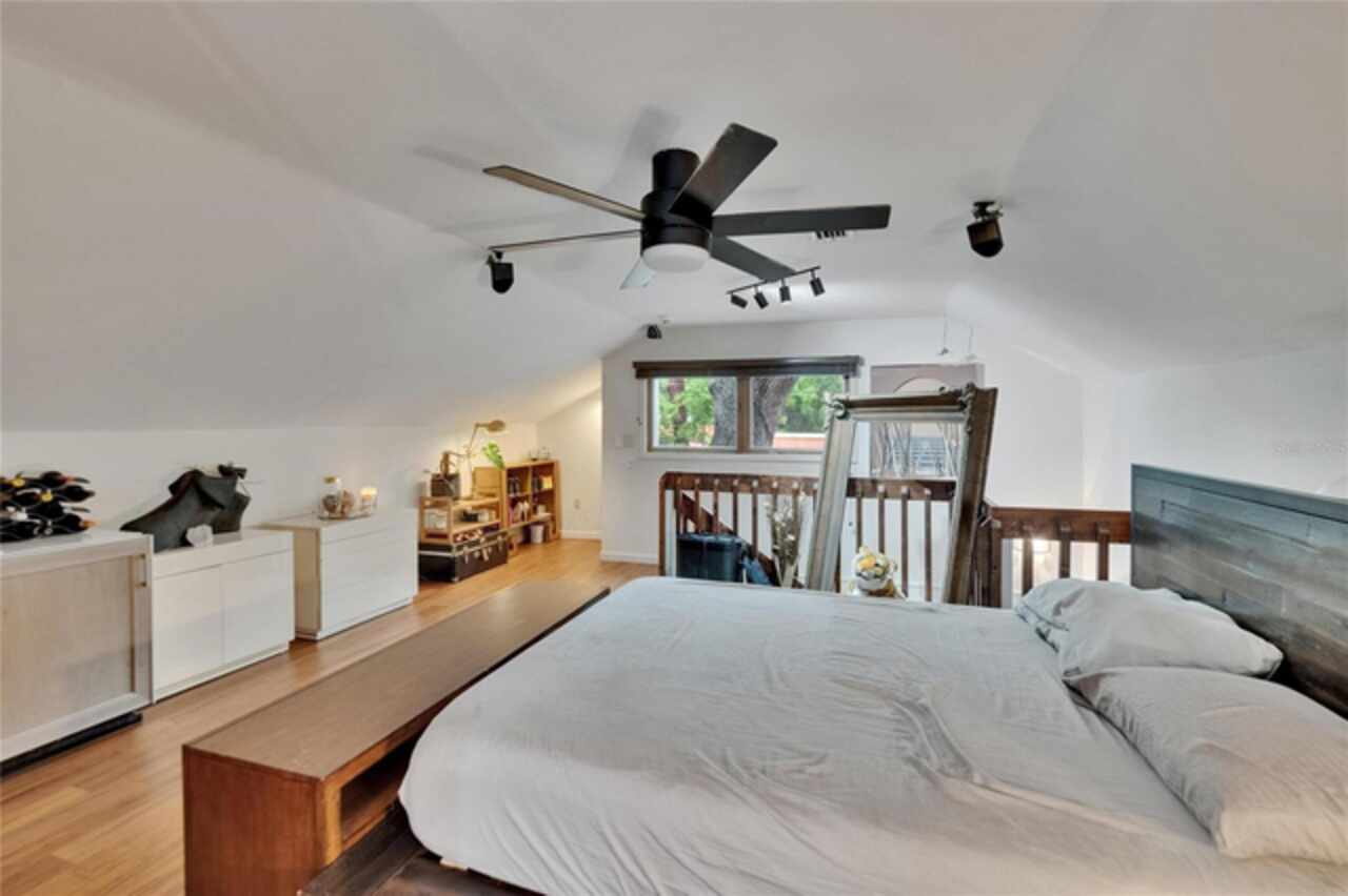 It is not often that you find such a unique, affordable property with easy access to all that stunning St. Pete offers! This home under the trees functions as the perfect duplex style property with multiple options for added privacy or rental potential. There are 3 bedroom suites with ensuite bathrooms making this a roommate's dream! As you enter you will immediately love the beautiful porcelain and marble flooring with various other unique touches throughout the home. To the left is the living room complete with built in cabinets and a wet bar. To the right of the front door is the first bedroom suite complete with double vanity and walk-in tile shower in the ensuite bathroom. As you continue you'll find the fully updated kitchen, dining area, and stair case to the loft. The loft features the 2nd bedroom suite that feels like you're truly living in a tree house where you can enjoy the oversized bedroom and statement vanity leading into the ensuite bathroom. Back downstairs as you continue you enter the back of the home that functions as a fully separate dwelling complete with living room/den, another full kitchen, and the 3rd bedroom with ensuite bathroom. There is a private entrance door in that living space and the bedroom making it perfect for a rental or scenario where people need to come and go freely. There is also a 1 car garage (including the laundry area), plenty of parking including alley access, and a front patio area to enjoy the peaceful ambiance of this shaded lot. If all of this isn't great enough, the roof was replaced and exterior painted in 2025 and kitchen and bathroom updates were completed in 2023 giving you true ease of ownership to move right in and make it your own. All of this is within minutes to boat ramps, parks, and so many other fabulous aspects of life in St. Pete so bring your boat or jet skis and get ready to enjoy the summer on the water! You do not want to miss out on this one-of-a-kind property so schedule your showing today!