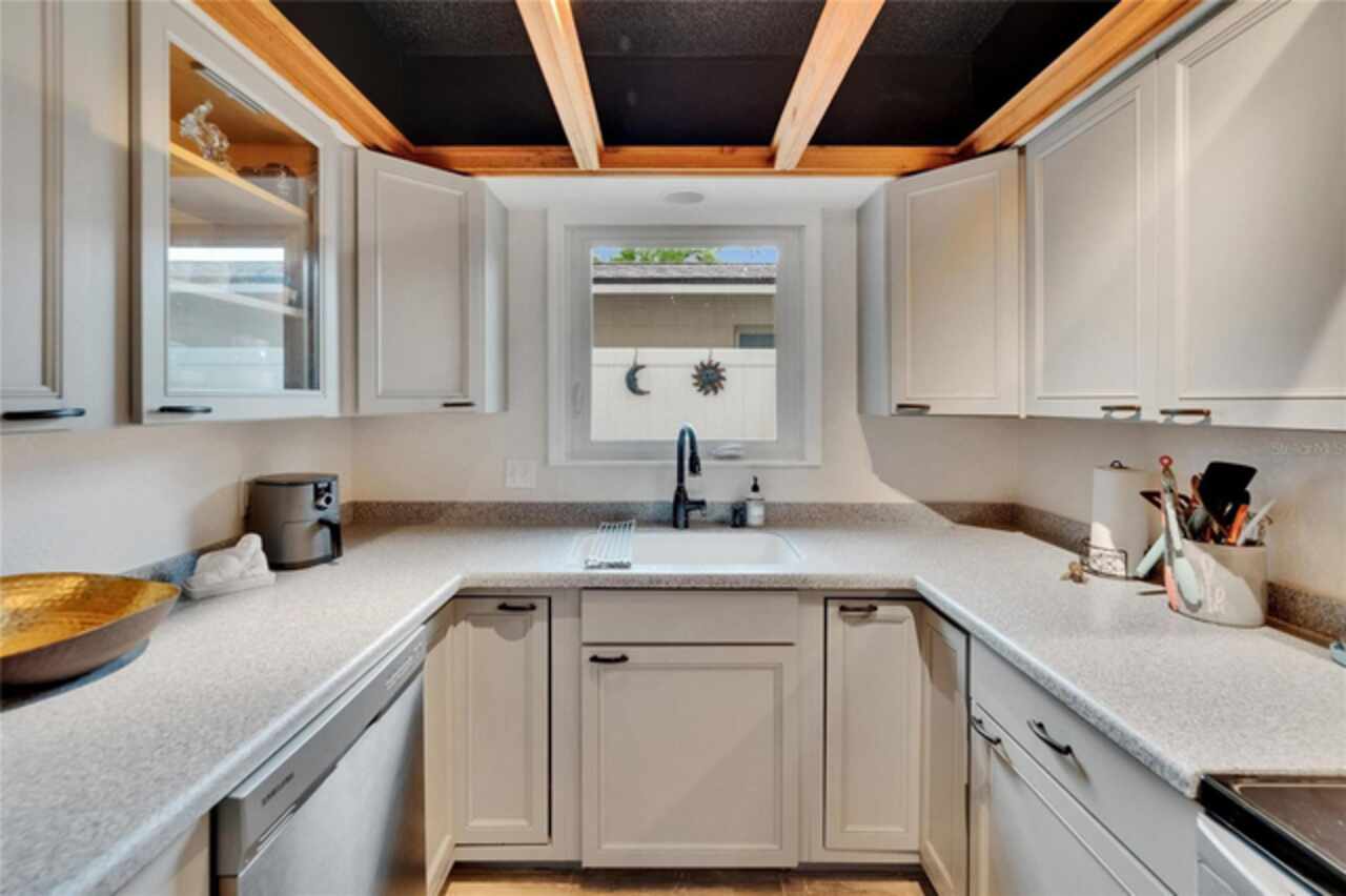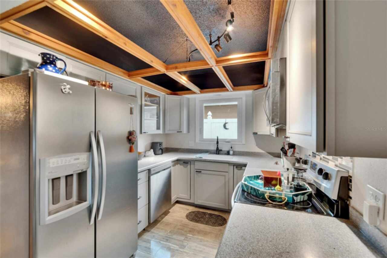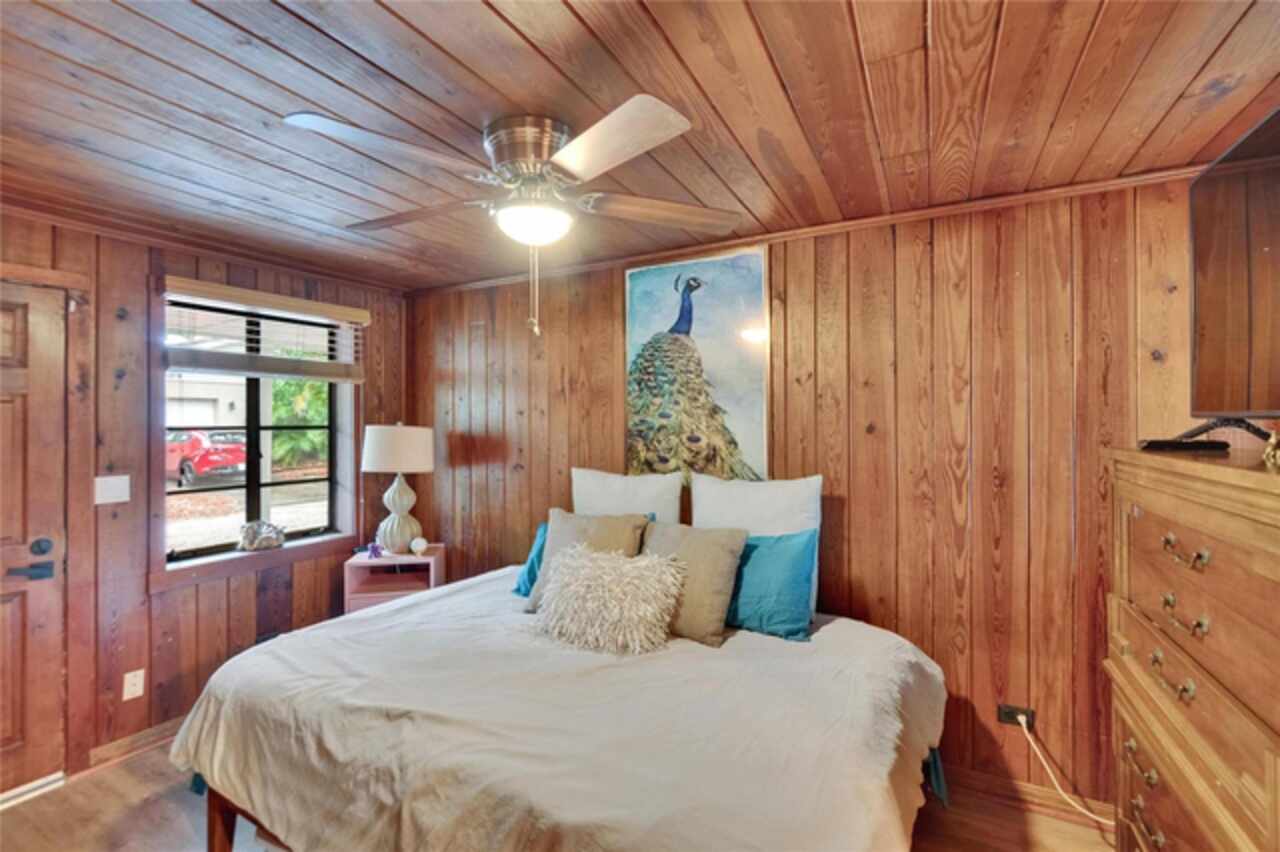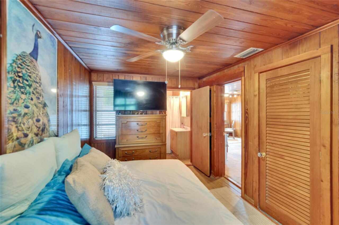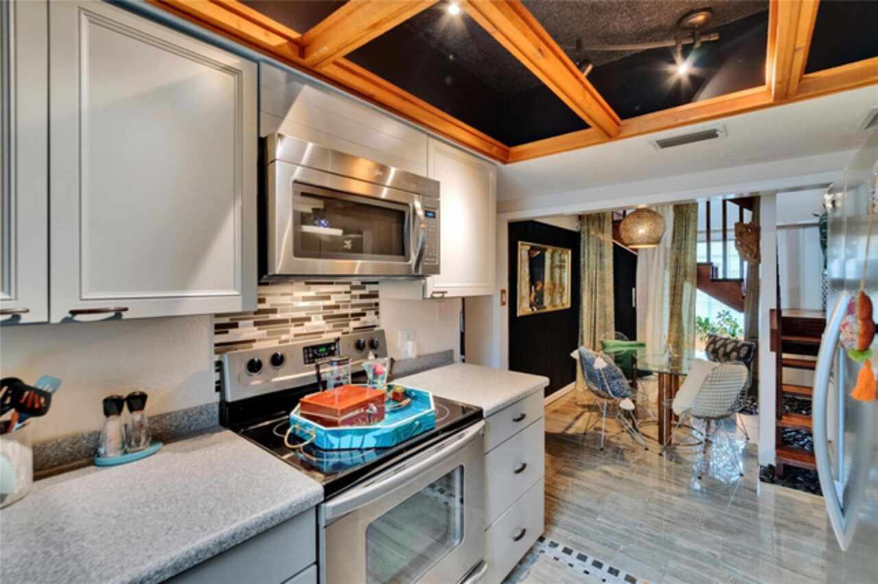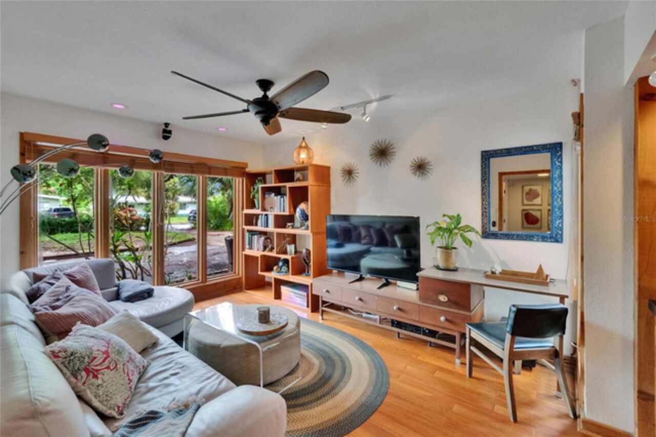 It is not often that you find such a unique, affordable property with easy access to all that stunning St. Pete offers! This home under the trees functions as the perfect duplex style property with multiple options for added privacy or rental potential. There are 3 bedroom suites with ensuite bathrooms making this a roommate's dream! As you enter you will immediately love the beautiful porcelain and marble flooring with various other unique touches throughout the home. To the left is the living room complete with built in cabinets and a wet bar. To the right of the front door is the first bedroom suite complete with double vanity and walk-in tile shower in the ensuite bathroom. As you continue you'll find the fully updated kitchen, dining area, and stair case to the loft. The loft features the 2nd bedroom suite that feels like you're truly living in a tree house where you can enjoy the oversized bedroom and statement vanity leading into the ensuite bathroom. Back downstairs as you continue you enter the back of the home that functions as a fully separate dwelling complete with living room/den, another full kitchen, and the 3rd bedroom with ensuite bathroom. There is a private entrance door in that living space and the bedroom making it perfect for a rental or scenario where people need to come and go freely. There is also a 1 car garage (including the laundry area), plenty of parking including alley access, and a front patio area to enjoy the peaceful ambiance of this shaded lot. If all of this isn't great enough, the roof was replaced and exterior painted in 2025 and kitchen and bathroom updates were completed in 2023 giving you true ease of ownership to move right in and make it your own. All of this is within minutes to boat ramps, parks, and so many other fabulous aspects of life in St. Pete so bring your boat or jet skis and get ready to enjoy the summer on the water! You do not want to miss out on this one-of-a-kind property so schedule your showing today!