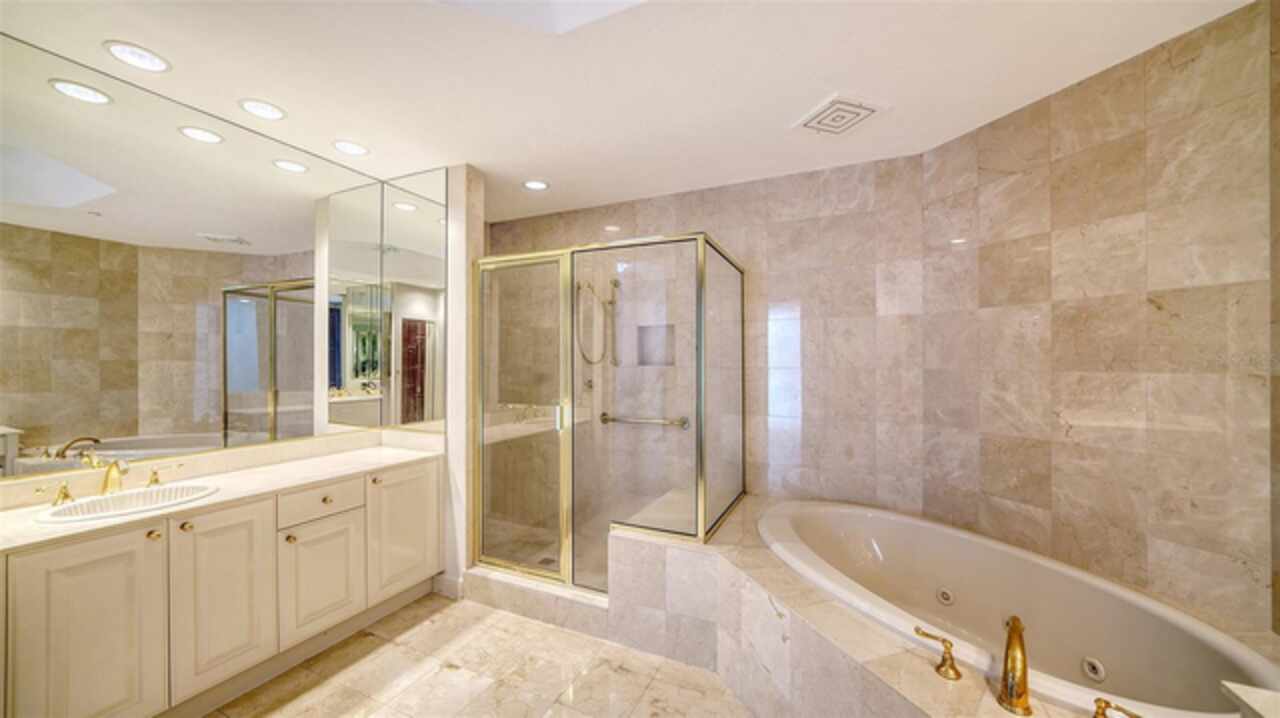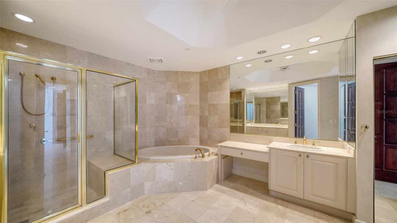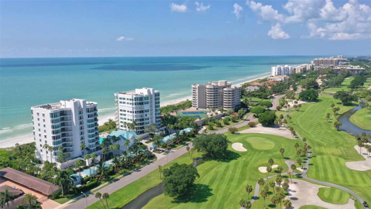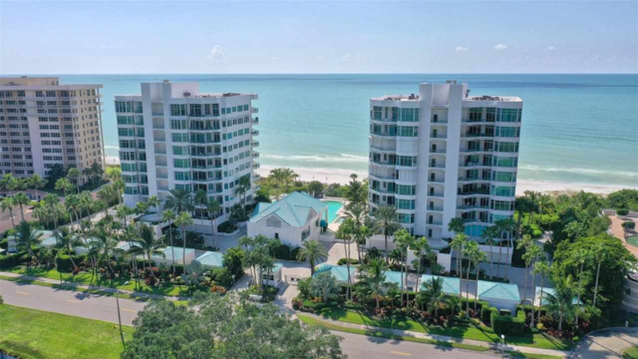 Spectacular Gulf front location! Rarely available A floorpan Three bedroom, three bath direct beach corner residence with southern exposure with vistas to the beach, azure Gulf waters and sunsets plus views of the Longboat key Club golf course, Sarasota Bay and downtown Sarasota lights. Sunrise, sunsets are all enjoyed from this third floor spacious, open floor plan. A private, secured elevator opens to the interior of the residence while a separate elevator brings guests to the front door. Special features of this luxurious residence include 10' foot ceilings, floor to ceiling sliding glass doors, 8' solid mahogany doors plus porches on east and west side of this 3400 sq.ft. home. The kitchen has a wonderful center island plus a breakfast room. The master suite has expansive walls of windows enhancing the gulf views. The master bath is appointed with marble floors and walls, dual vanities and spa tub. Regent Place offers 24 hour security, a 25 -meter heated pool and spa overlooking the Gulf, summer kitchen by the pool, club house with social room and fitness center.