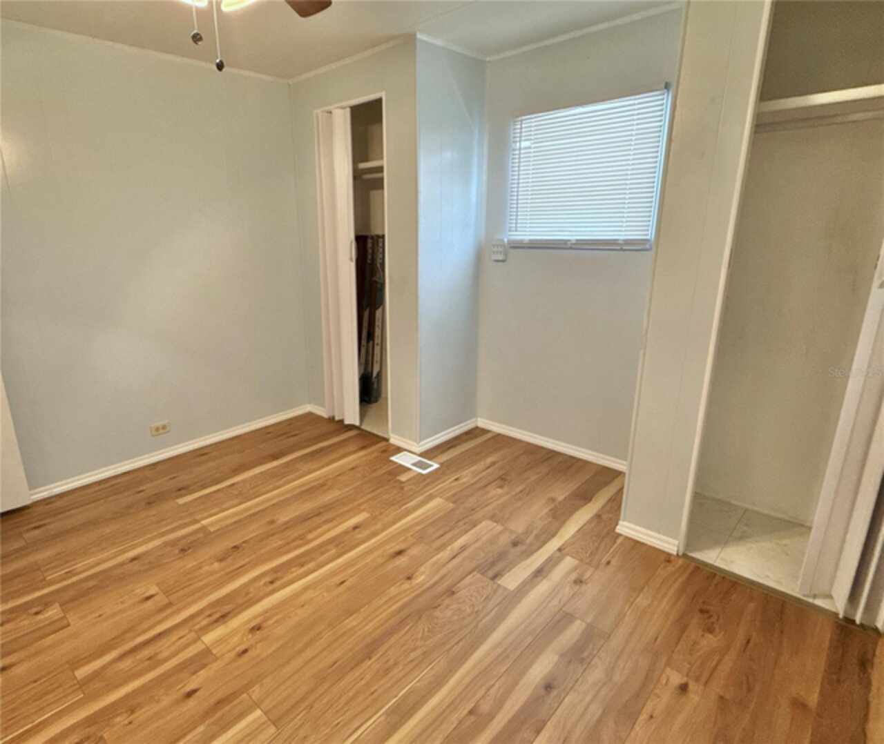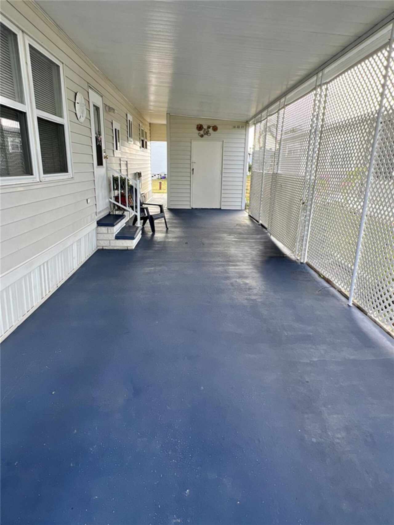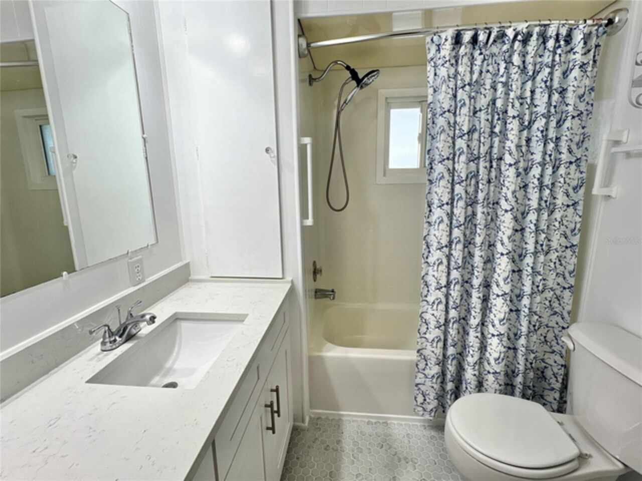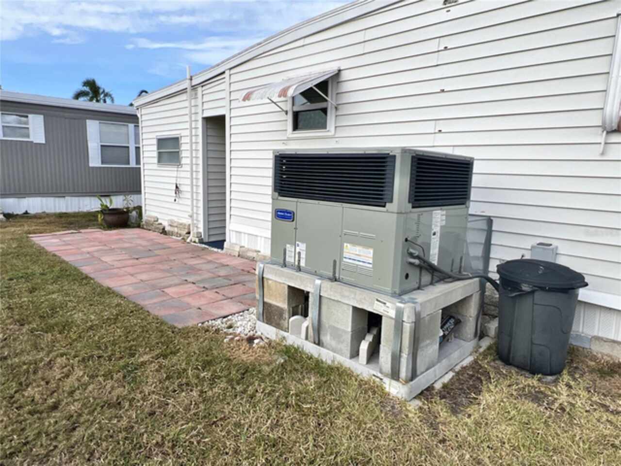 This totally updated home with more than 1, 100 sq. ft of living space includes a beautifully finished 200 sq ft Florida room with laminate flooring, drop ceiling and Bahama shutters that can be used as an office/hobby or additional living space. This appealing home is located within a short walk to the community's waterfront park with fishing dock on a saltwater canal--relax and watch the dolphins and manatee play or go fishing! The home was updated in 2022 and features a remodeled kitchen with new soft close Shaker cabinets and drawers, sparkling quartz countertops and ceramic tile backsplash; 2022 Whirlpool refrigerator and GE stove, stainless steel farmhouse sink and gooseneck spout; 2022 HVAC is high-end American Standard 2.5 ton package unit with heat and air; 2022 tilt-in double paned windows throughout for easy cleaning; updated baths in 2023 includes new cabinet and sink with quartz counter top and tub/shower combo in guest bath and new cabinets and sink with walk-in shower in master bath and tile floors in both baths. 2016 roof over has 20-year transferrable warranty. Newer water heater--about 4 years old. New plywood subfloors and waterproof wide plank laminate flooring installed in all rooms (except Florida room which has cement subfloor) in mid April 2025. New laminate flooring has Lifetime Warranty. Dining and living room area have crown molding and baseboards. Interior paint in pastel colors completed in 2023-2024. Backyard paver patio for barbecuing and relaxing. Ring door bell included. Long carport handles two cars easily and driveway has been resurfaced. Utility shed has 2025 washer and dryer with overhead fluorescent light. Clamshell awnings and Bahama shutters on windows for wind protection. Mature landscaping give finishing touches to the property, and there is a sprinkler system in place with water supplied by the Co-op. Termite treatment in 2024 with transferable warranty. Price includes share for the lot and ownership in the Co-op. Low monthly maintenance fee of $380 includes water/sewer/trash pick up/ 24 hr manned gate/lawn mowing/private streets/heated pool/fitness/billiards/clubhouse and so much more. Two dogs or cats up to 35 pounds are welcomed; two pets total each household. Americana Cove is conveniently located to downtown St. Petersburg (10 mins away), two airports (15 mins away) and beaches (25 mins away). Don't miss this move-in ready home!