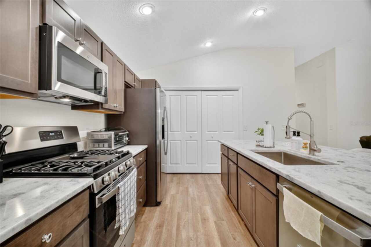 Charming 3-Bedroom Emerald Patio Villa in the Village of Newell – Loaded with Upgrades! Discover this beautifully appointed Emerald Patio Villa perfectly located in the desirable Village of Newell, just minutes from Sawgrass Market and the soon-to-open Eastport Square. This home blends style, comfort, and convenience with an array of thoughtful upgrades inside and out.Inside, you’ll love the modern granite countertops paired with a large commercial-style stainless steel sink, a chef’s delight. The kitchen flows seamlessly into the open living space, highlighted by tinted windows for added privacy and remote-controlled ceiling fans for year-round comfort. The upgraded washer and dryer make laundry a breeze, while the bathrooms feature high-end glass shower doors for a sleek, upscale touch.Step outside to enjoy the professionally landscaped surroundings, painted driveway and patio, added screen door, and full gutters for easy maintenance. Tech-savvy and eco-conscious owners will appreciate the two EV chargers ready for electric vehicles. Some furniture may be available for sale. All measurements should be verified. The proper zip code for this property is 34762 32163 is used for 3rd party advertising purposes.