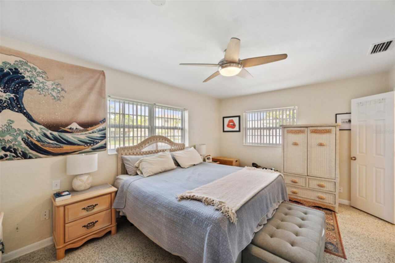 Mid-Century Modern Block Home in St. Petersburg This stylish Home features beautiful Terrazzo floors, a Newer Roof (2021) and a New HVAC (9/2024). The updated Kitchen includes Granite countertops and Stainless Steel Appliances. A private Office with a separate entrance offers flexible space for work or guests. The spacious primary Bedroom easily accommodates a King-size Bed and includes an en-suite bath with an oversized shower. The large Living Room opens to the office via sliding doors, and there's a separate dining area for entertaining. The guest bathroom also features Granite counters and a tub. Step outside to a generously sized screened lanai—perfect for enjoying the Florida lifestyle. The fully Fenced backyard sits on a corner lot and showcases mature tropical landscaping. Conveniently located just minutes from I-275 and the Sunshine Skyway, with quick access to beaches, Ft. De Soto, local parks, and nearby boat ramps. OWNER WILLING TO RENT FOR $2, 600 MONTHLY.