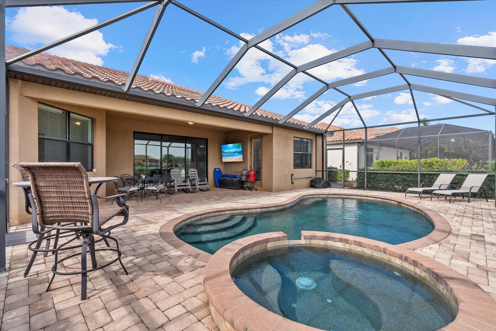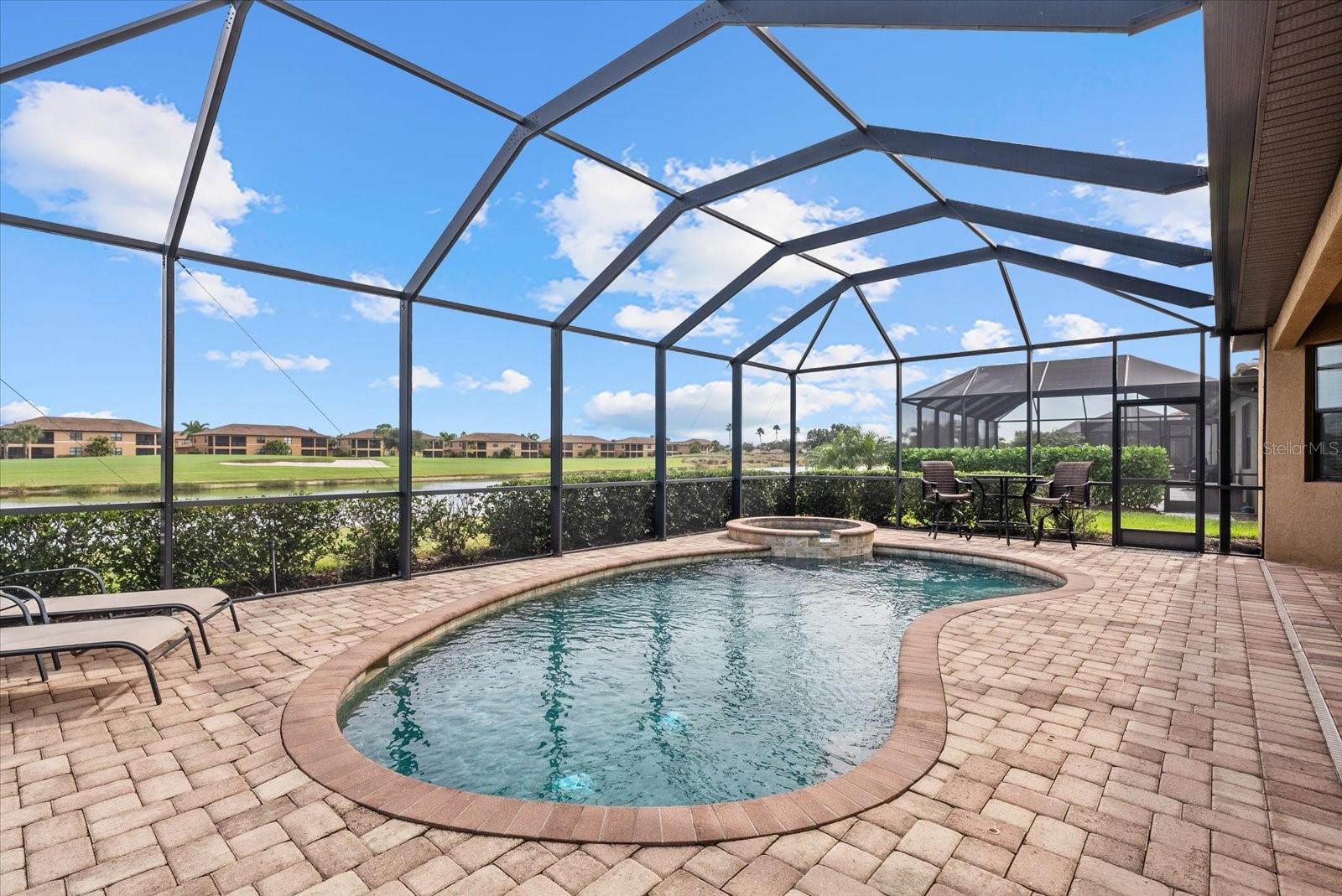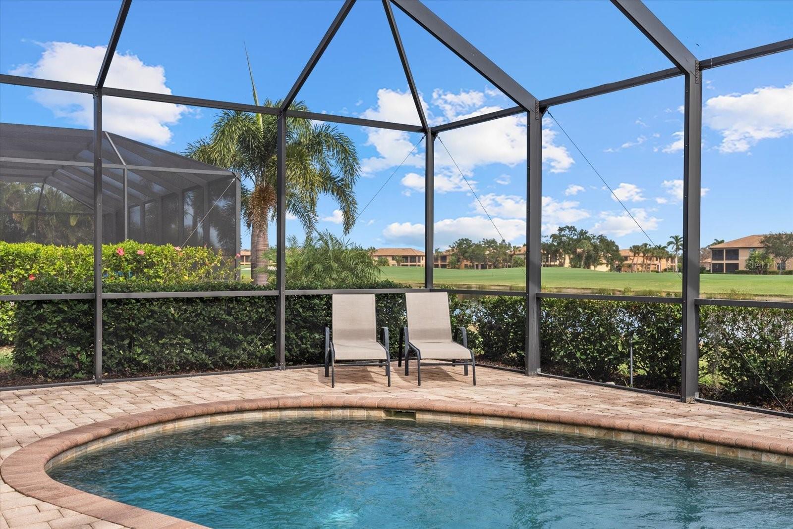 Enjoy breathtaking lake and golf course views at an exceptional value! Welcome home to River Strand Golf & Country Club! This stunning 4-bedroom, 2-bath, 3-car-garage Pool Home offers the perfect blend of comfort, style, and resort-style living. This one-story residence features an open, light-filled floor plan with a spacious great room, separate dining area, and a flexible home office space. The kitchen is the heart of the home, complete with stainless steel appliances, granite countertops, a large center island, and ample cabinetry, opening seamlessly to the main living area and screened lanai. Step outside to your private oasis featuring a sparkling heated pool and spa overlooking serene lake and golf views, ideal for entertaining or relaxing in the Florida sunshine. The primary suite offers a walk-in closet, dual vanities, a soaking tub, and a luxurious walk-in shower. Additional highlights include tile flooring throughout the main living areas, tray ceilings with crown molding, and an oversized 3-car garage providing plenty of storage. Enjoy maintenance-free living with lawn care, irrigation, and trimming included in the HOA. With a Deeded Social Membership, enjoy access to 27 holes of championship golf, 9 Har-Tru tennis courts, pickleball, resort pools, fitness centers, dining venues, and a full calendar of social activities. Take advantage of the $8.5 million community renovation in progress, upgrading the golf courses, clubhouse, and dining areas, with all assessments already paid. Conveniently located near I-75, shopping, restaurants, and the beaches of Anna Maria Island. Don’t miss this beautifully maintained home offering the best of Florida living in a premier, gated golf community!