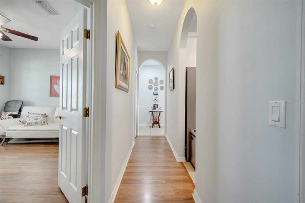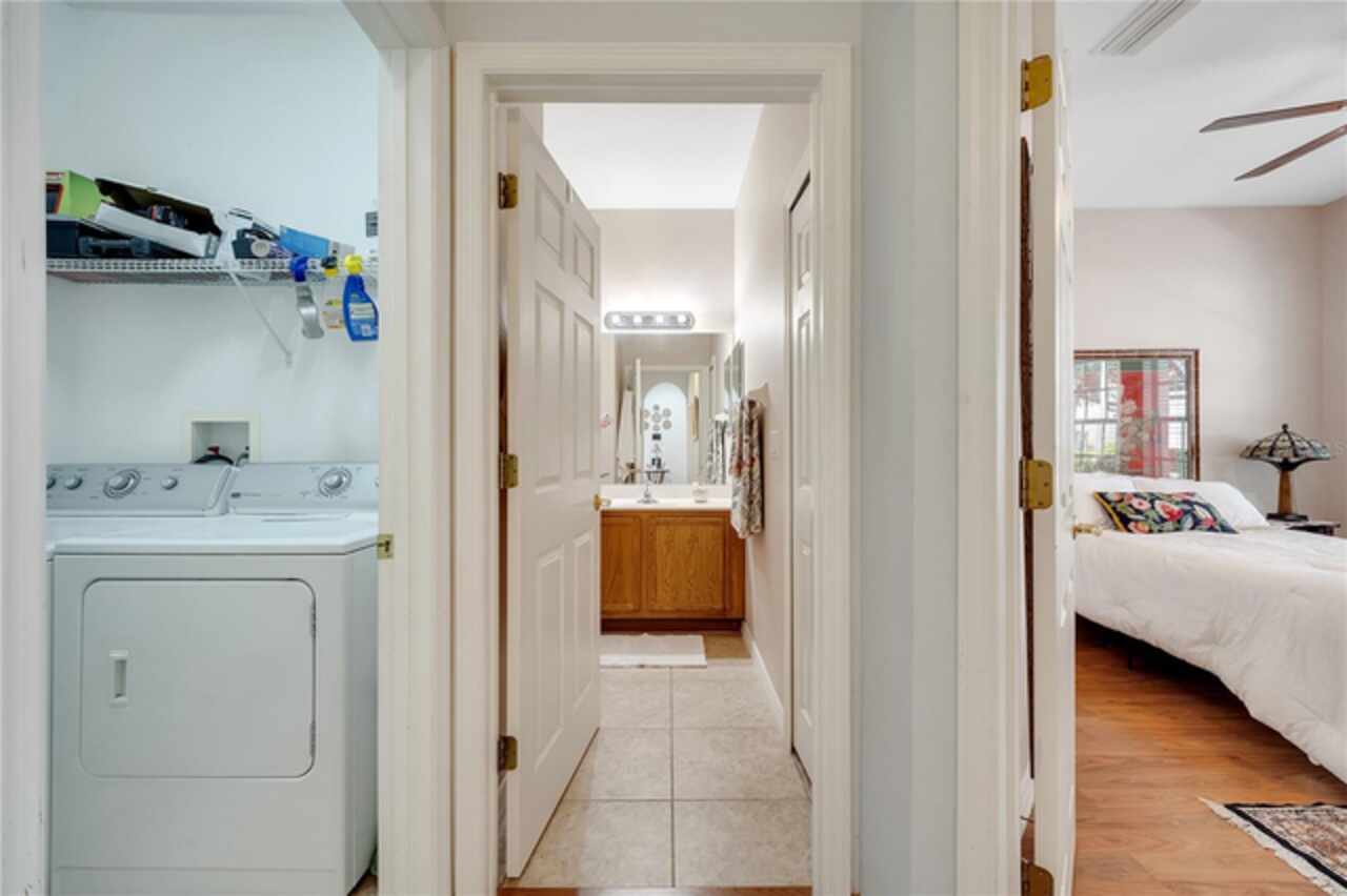 Beautifully maintained 3-bedroom, 2-bathroom home located in Signature Lakes community. Featuring a smart split floor plan, this home is completely move-in ready and designed for both comfort and convenience. Spacious, modern kitchen with stainless steel appliances, a gas range, 42” solid wood cabinets, granite countertops, an oversized pantry, and a large breakfast bar—ideal for everyday living or entertaining guests. The primary suite offers a peaceful retreat with a walk-in closet and private en-suite complete with a dual-sink vanity, separate soaking tub, and walk-in shower. The home features an open layout with stylish laminate flooring throughout and tile in all the wet areas. Enjoy outdoor living on the screened-in patio, perfect for relaxing or hosting cookouts. Additional perks include a detached 2-car garage, extra parking out front, and an inside laundry room with washer and dryer for added convenience. As part of the HOA, you’ll enjoy high-value amenities such as two resort-style pools, a fitness center, boat ramp, tennis courts, playground, arcade, and year-round events like food truck nights, movies on the lawn, and holiday fireworks. Ideally situated near Winter Garden Village and main highways, this home combines location, lifestyle, and lasting value. Come see it today! * Lighting fixtures on dining room, family room and hallway do not convey.