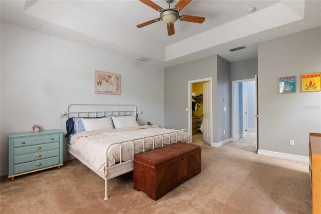 Ceiling Fans(s), Crown Molding, Eat-in Kitchen, Primary Bedroom Main Floor, Solid Wood Cabinets, Thermostat, Tray Ceiling(s), Walk-In Closet(s)