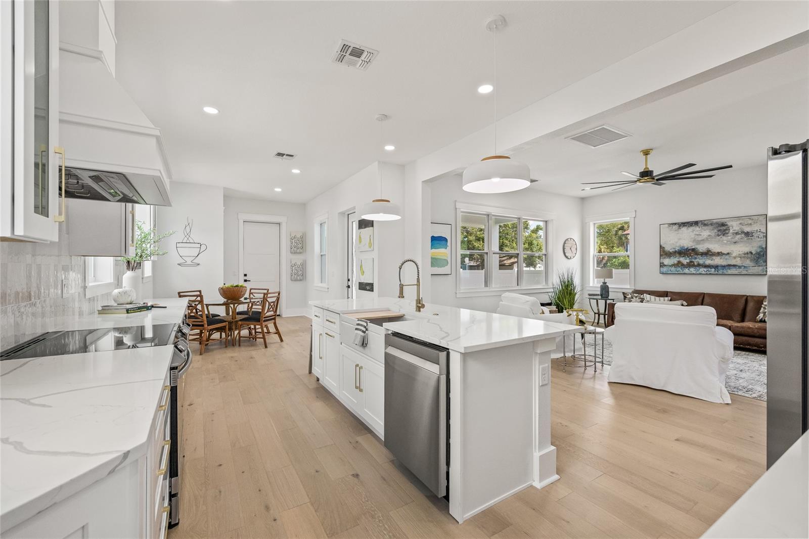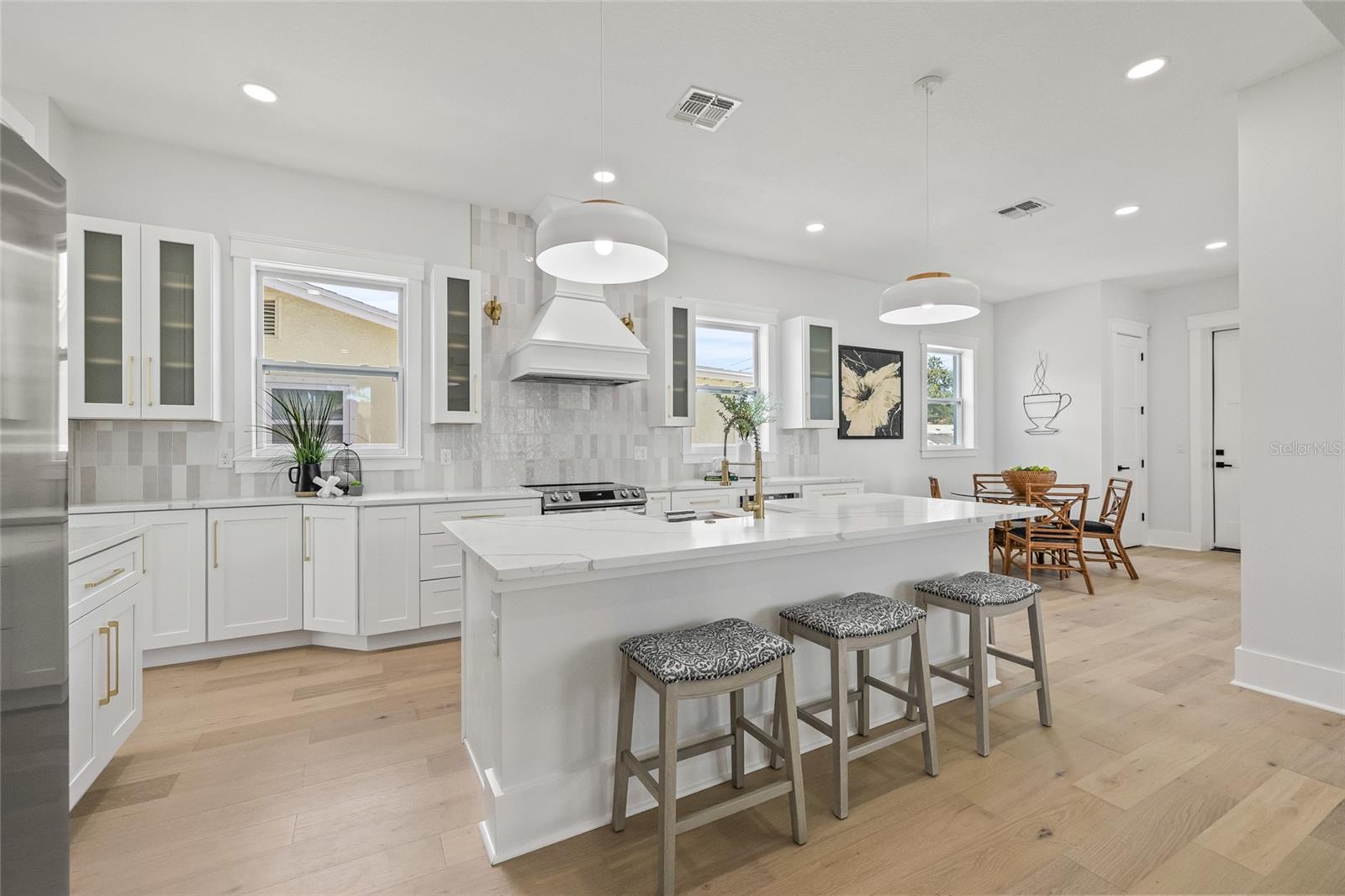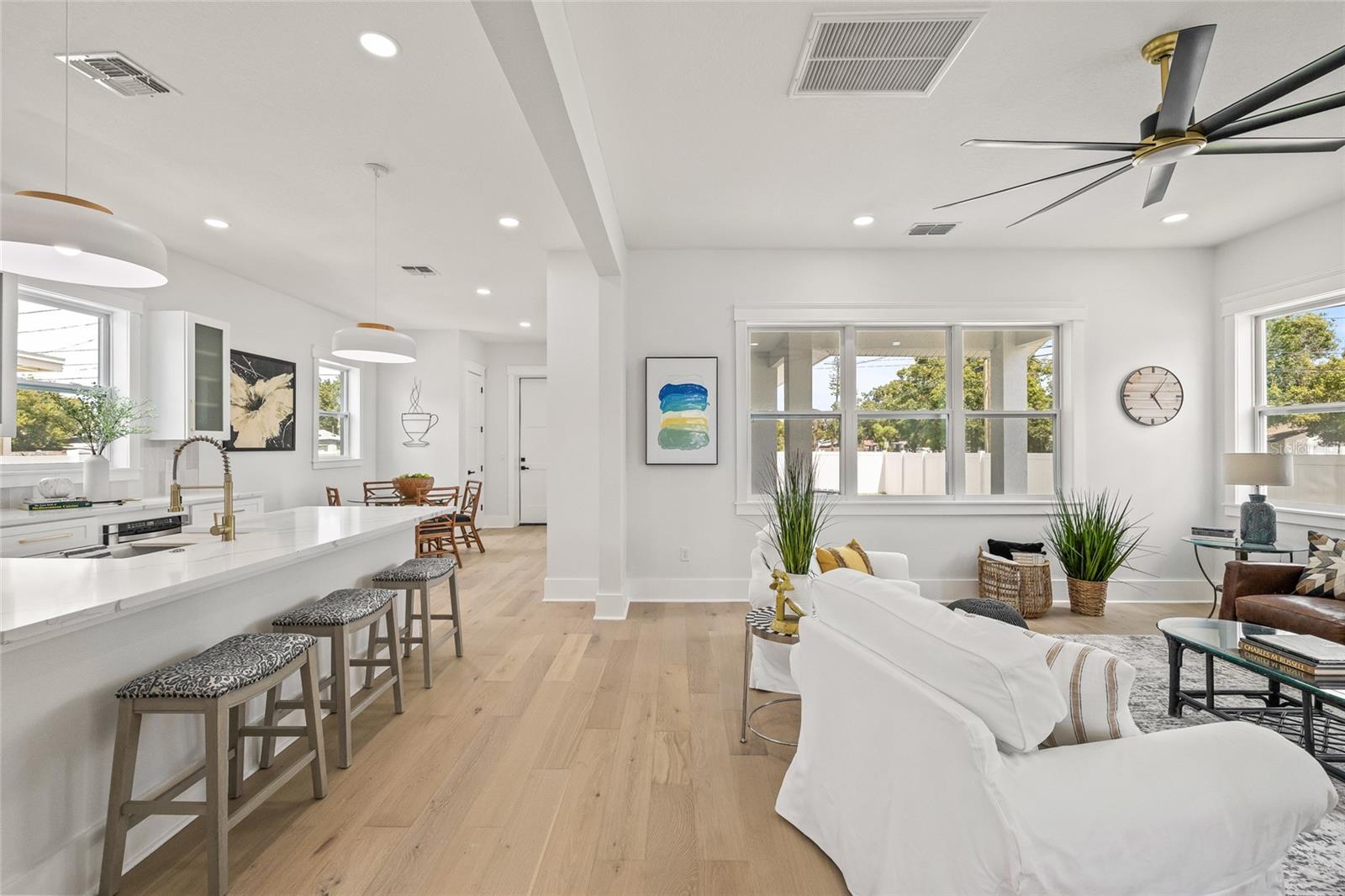 Under contract-accepting backup offers. Brand-New Construction in Prime St. Pete Location by Coastline Home! Situated at the intersection of the Eagle Crest, Lake Pasadena, and Azalea neighborhoods, this stunning new-construction home offers refined living in one of West St. Petersburg’s most sought-after areas. Fully completed and move-in ready, this thoughtfully designed residence features 4 bedrooms, 3.5 bathrooms, and an attached 2-car garage with rear alley access. Inside, you'll find 10’ ceilings, rich engineered hardwood flooring, 8’ interior doors, and high-end designer finishes throughout. Elegant trim work, oversized baseboards, and cased windows add to the home’s timeless charm. The custom kitchen is a chef’s dream with abundant cabinetry, a walk-in pantry, and stylish finishes, seamlessly connecting to two dining areas and two distinct living spaces. The main living room offers flexibility to serve as a playroom, home office, or additional lounging area, while the separate family room provides a comfortable space to relax or entertain. The Master Suite is a private retreat with a luxurious en-suite bathroom featuring an oversized double-sink vanity and a spa-like walk-in shower. Step outside to enjoy the covered front and rear porches and a fully fenced backyard with white vinyl fencing—perfectly private and offering ample space to add a future pool. Whether you're entertaining guests or enjoying a quiet evening at home, this outdoor space is ready to grow with your vision. Located just minutes from vibrant Downtown St. Pete, Gulf beaches, parks, and top-rated schools, this home blends luxury, comfort, and convenience in a location you’ll love. Don’t miss your chance to own this exceptional new home—schedule your private tour today! **Rendering of pool is included for reference purposes only, and new pool is not included with purchase.**