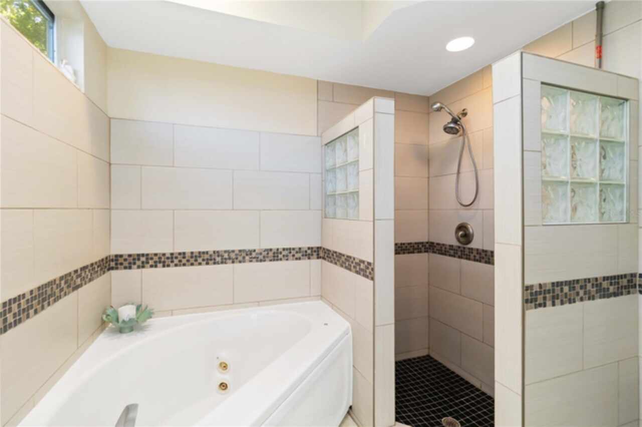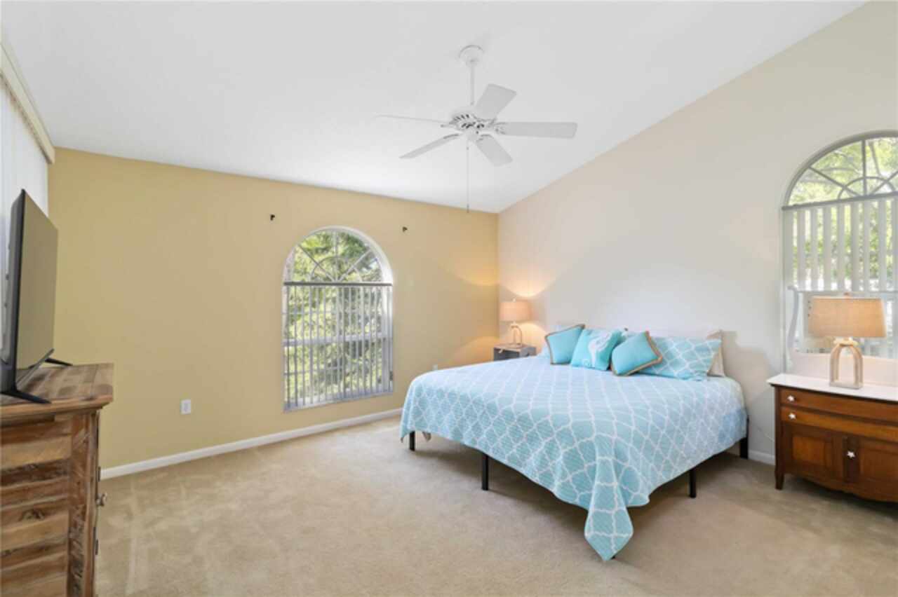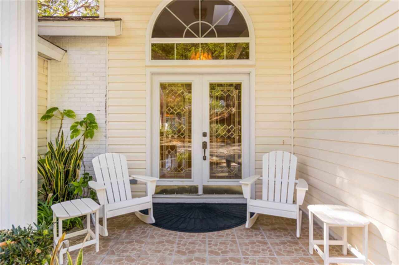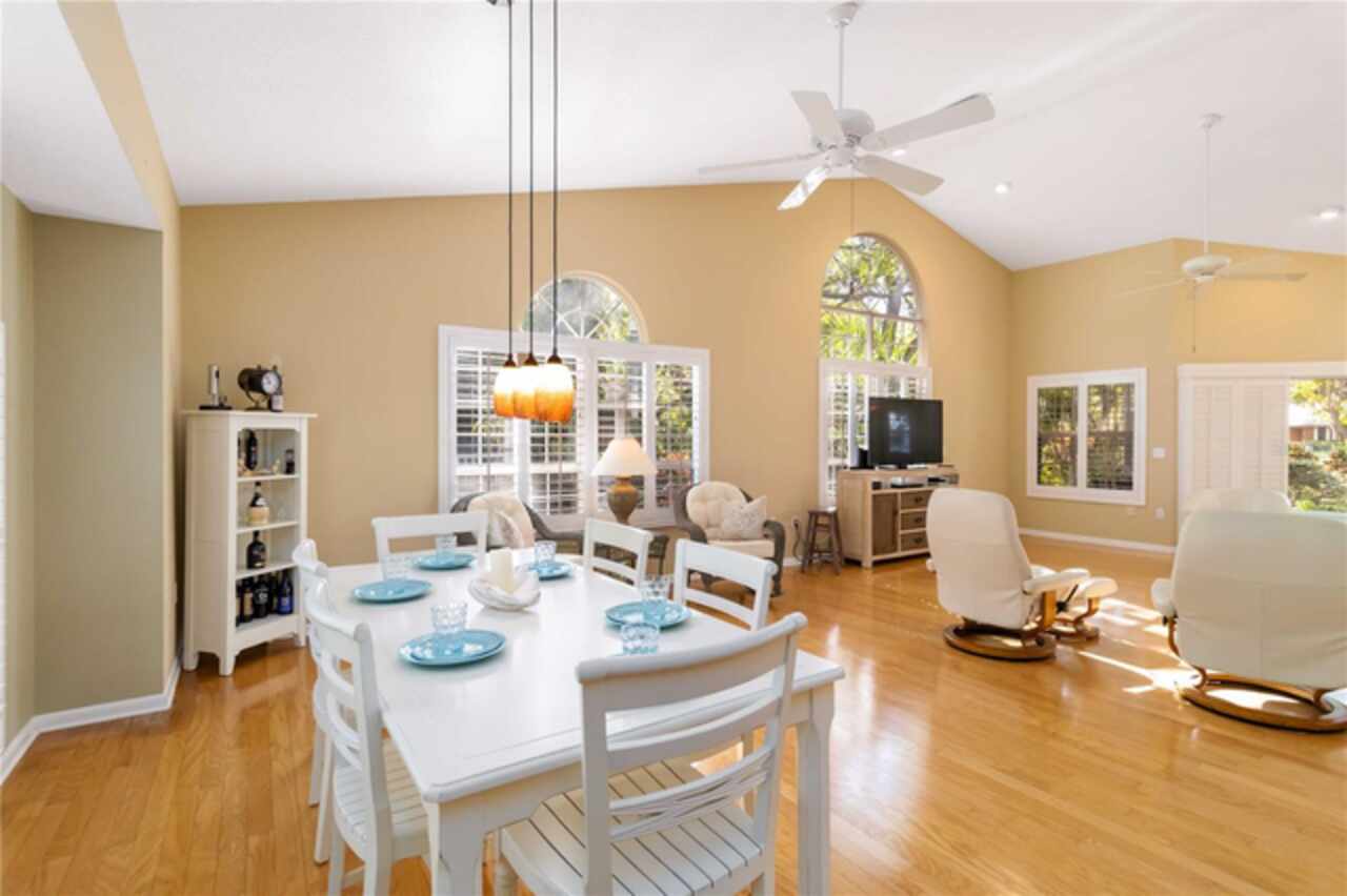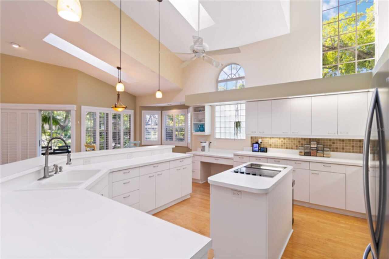 Welcome to this charming two-story home, offering over 3, 000 square feet of beautifully designed living space in the quaint, tree-lined neighborhood of Arbor Oaks. Surrounded by majestic oak trees, and nestled in a cul-de-sac, this home provides a serene and picturesque setting while still being conveniently located near shopping, dining, and minutes from the stunning beaches of Anna Maria Island. Fresh interior paint and new carpet installed in all bedrooms. Inside, you'll find a spacious and inviting floor plan featuring real wood floors throughout the large living space. With soaring cathedral ceilings, you're instantly greeted with an open and airy ambiance that beautifully showcases this one of a kind floorplan. The large kitchen boasts ample cabinetry and large island which is perfect for cooking and entertaining. The primary suite located on the main floor is a true retreat with an ensuite bath and a large walk-in closet. Other charming features include a laundry chute, central vacuum, skylights and large radius windows letting in so much light. The loft space on the second floor adds additional flex space. Enjoy relaxing evenings on the covered patio, overlooking the lush backyard shaded by beautiful oaks. Even more, the community pool is just steps away from your screened lanai, so you have the convenience of a private pool in your back yard but without the maintenance. With its charming curb appeal, ample space, and peaceful surroundings, this home is a rare find.