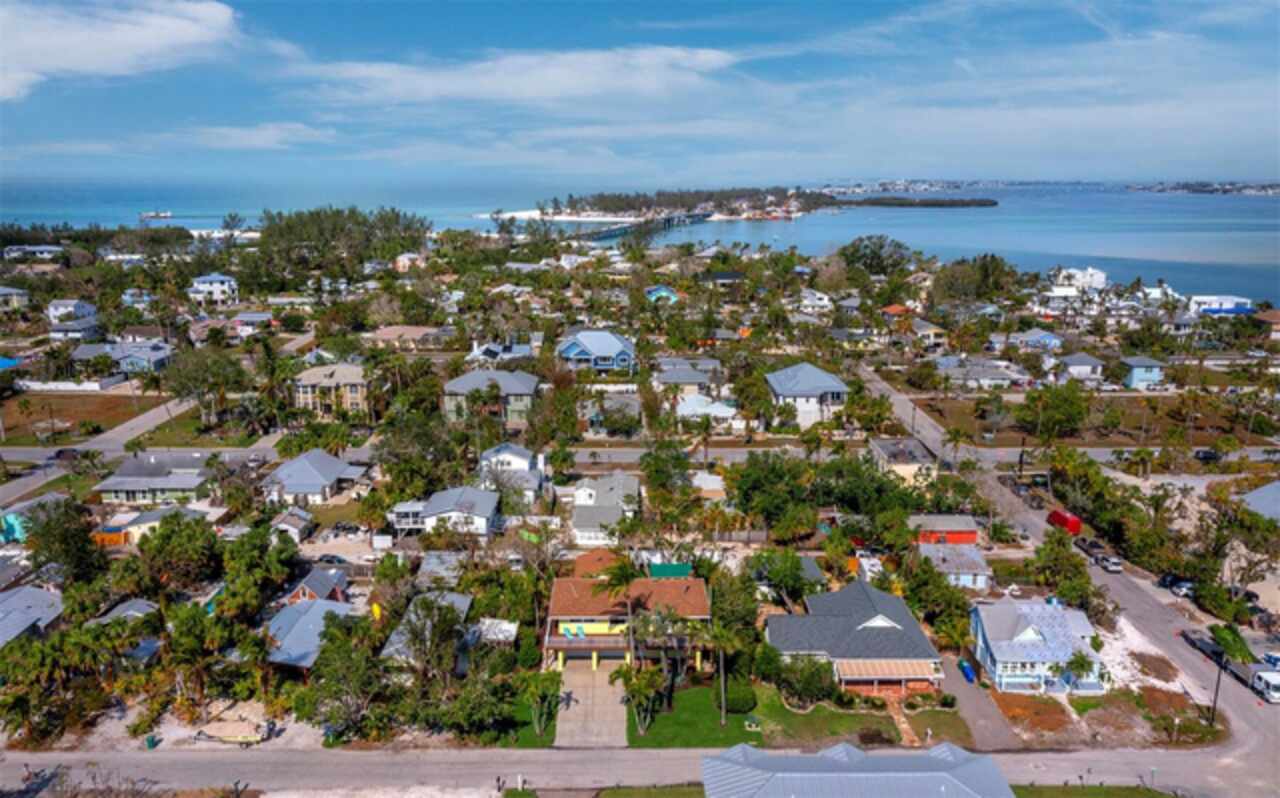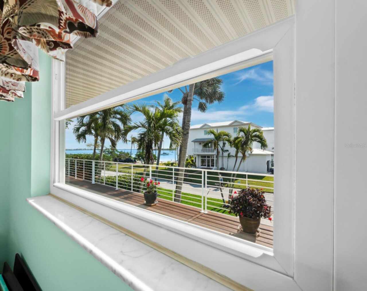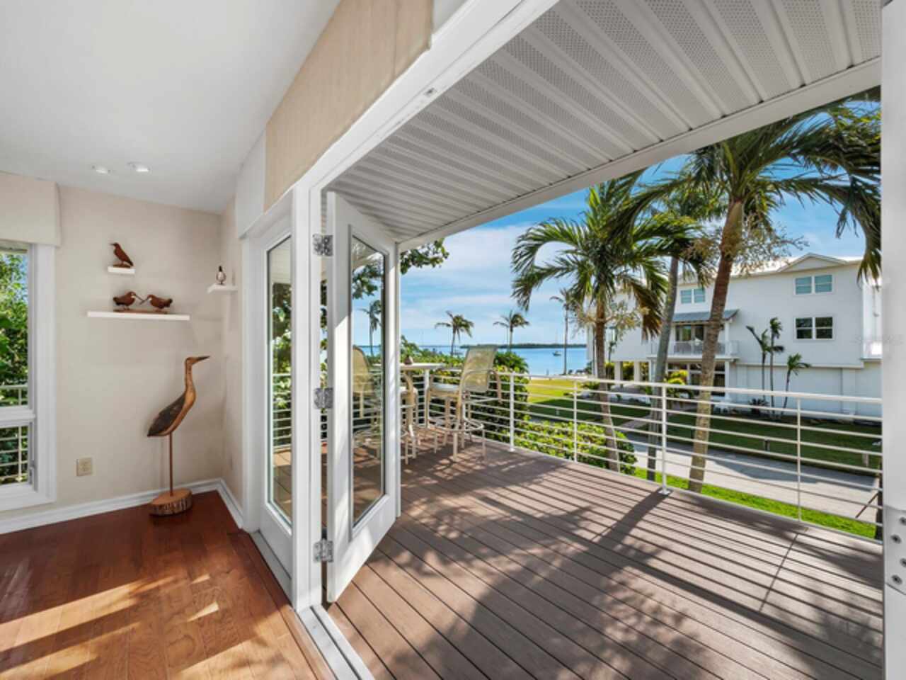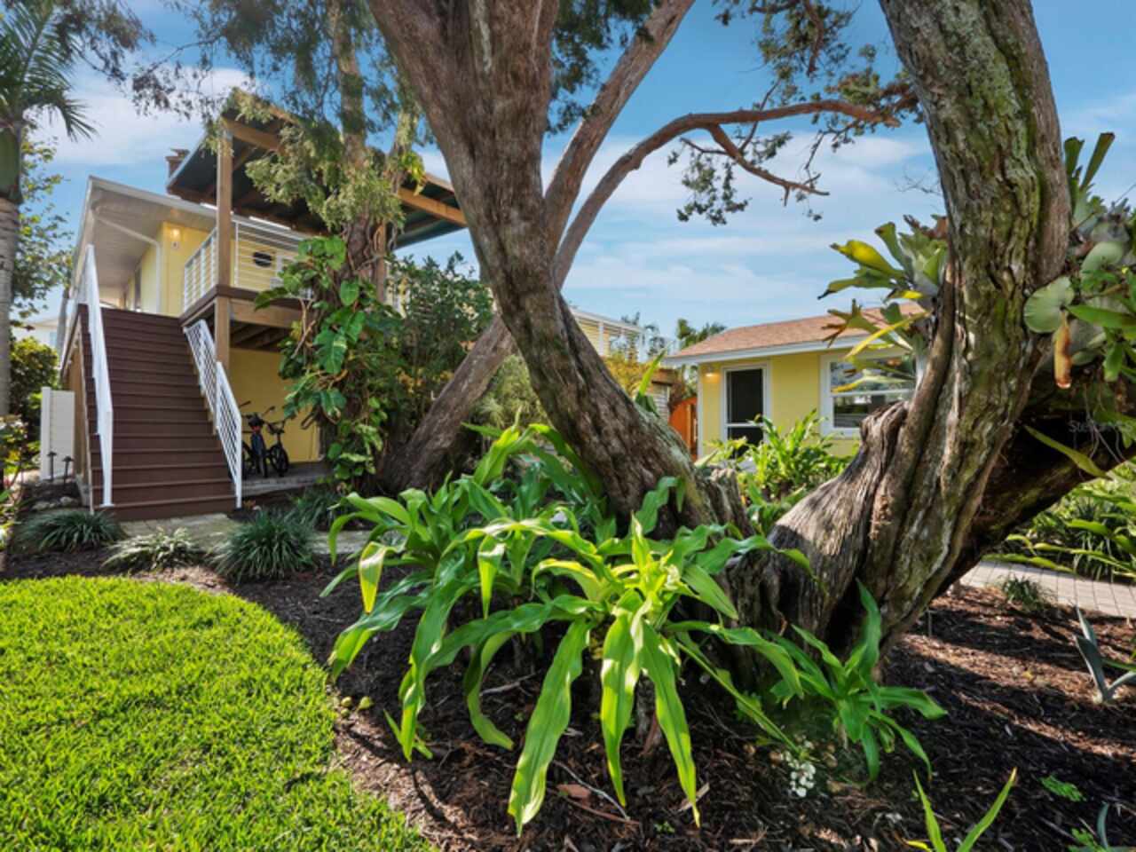 HUGH PRICE REDUCTION!!!Welcome to historic Longbeach Village, the first neighborhood, established on Longboat Key in 1885. As you enter The Village you will notice a variety of architectural home styles from the 1930s to the present day reflecting the diversity of the folks who live here. This wonderful home has stunning water views of Sarasota Bay, The Village harbor with its small public beach, the town dock, and the boat ramp all of which serve as community gathering spots to launch your boat, kayaks, canoes, and view sunrises, sunsets, dolphins, manatees, and aquatic birds. Pelicans love this placid harbor. Capture and immerse yourself in these magical surroundings from the spacious elevated second level front deck. The open concept great room with the three sets of French doors and seven windows is flooded with natural light. The kitchen offers bay views and will be the envy of amateur as well as gourmet cooks. Here you will enjoy a Sub-Zero refrigerator, two drawer Sub Zero freezer, Wolf 5 burner range, large Wolf oven, Miele steam oven, Tanzanian granite counter tops, custom German cabinets, large and deep storage drawers, workstation, and travertine floors. The great room includes an abundance of recessed lighting and a free-standing wood burning fireplace on a raised hearth as well as a dining area with a distinctive wood table, benches, and chairs. The primary bedroom has water views, access to the wrap around deck through sliding glass doors, and a large walk-in closet, en-suite bathroom with striking wood vanity and marble-like glass sink and dual rainfall shower heads. The powder room off the great room has high end fixtures. The guest bedroom has twin beds, a ceiling fan and rolling shades to keep the light out. The adjoining room could function as an office, art studio, or an extra bedroom. The bathroom has a shower stall and a walk-in closet. The oversized two car garage has hurricane reinforced doors, windows, a work bench, ample shelving throughout and peg boards for tools. A composite “wood” deck that is impervious to rot and insects, surrounds the entire house creating massive outdoor living space. The back deck, overlooking a beautifully landscaped yard, has a heated hot tub, a dining area which has a new awning, and a staircase leading to the backyard, guest house/studio, and new two-person barrel sauna in 2023. The guest house/studio was totally renovated by current owners in 2015 with new Hardi Board siding and insulation. It could also serve as a recreation room with pool table etc. All windows throughout the structures are hurricane compliant. Meticulous and impeccable pride in ownership can be found in every detail throughout! From this lovely home you can walk to the beach, five restaurants, and Whitney Beach shopping center. The Centre Shops with dining, boutiques, hair salon, UPS store are about three miles south. Bradenton Beach, with its multiple attractions, is less than 1 mile north. Famous St. Armands Circle is eleven miles south. The Villagers meet once a month from October to April for socializing and gathering updates on LBK activities. Offered furnished, completely outfitted, and move in ready excluding original artwork and some personal items.