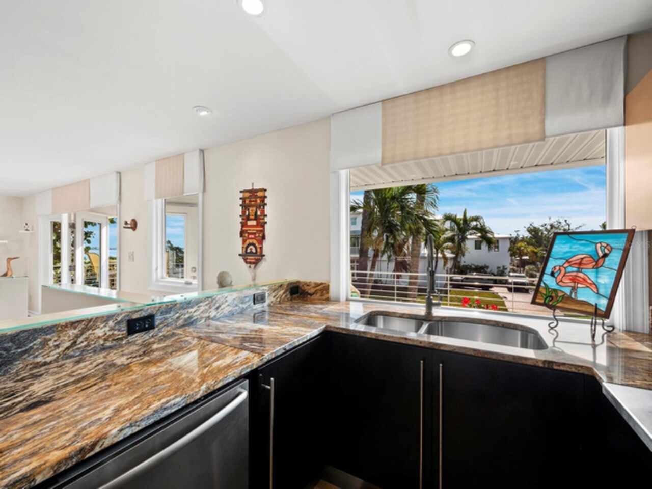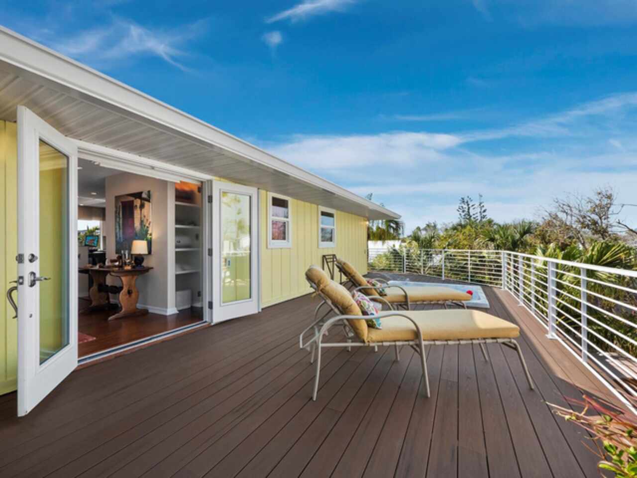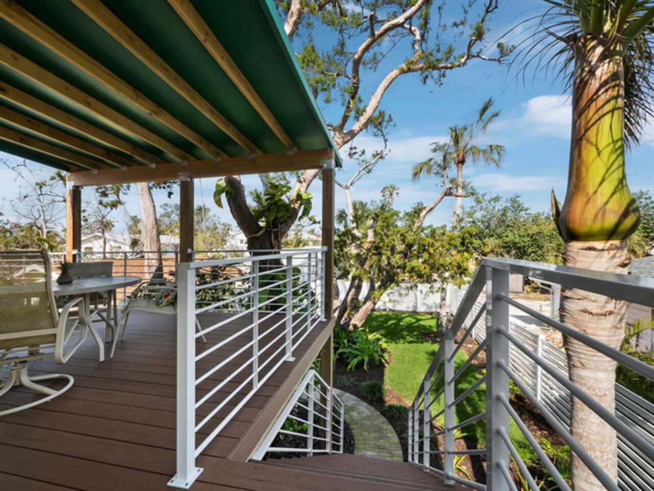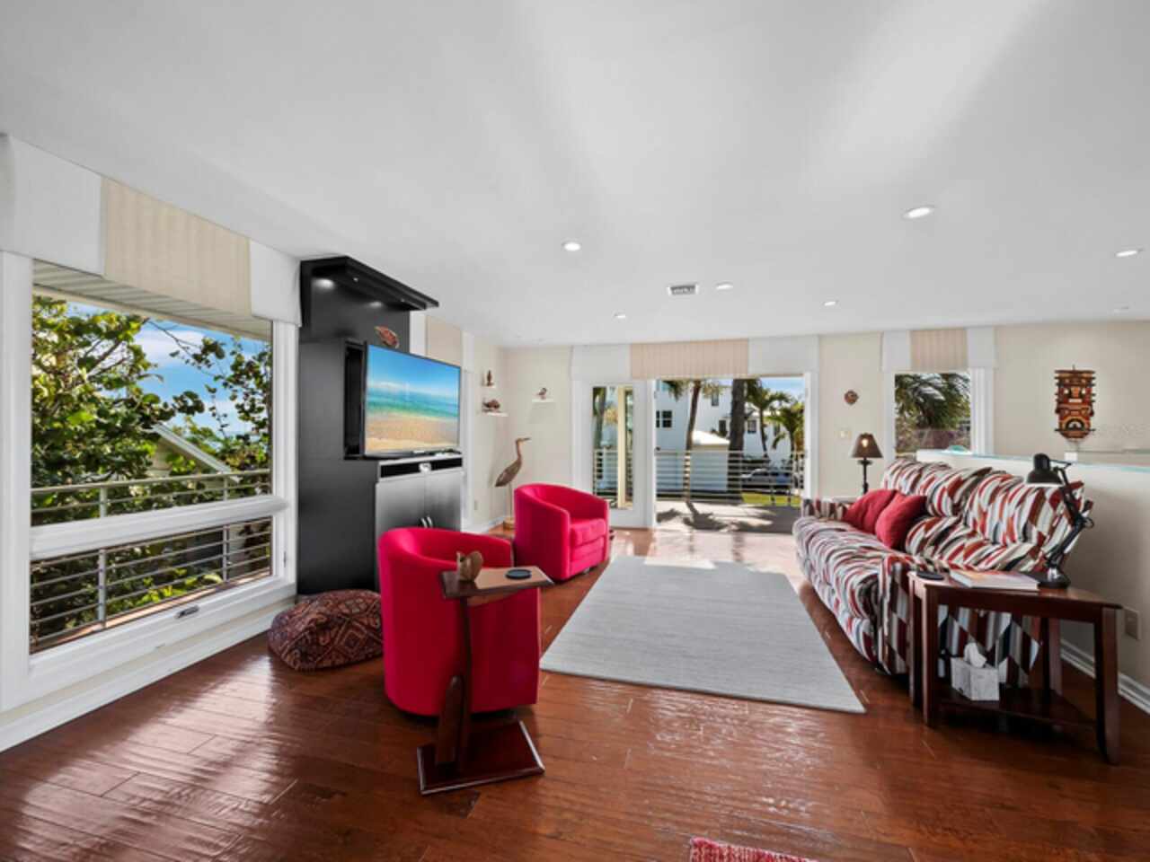 HUGH PRICE REDUCTION!!!Welcome to historic Longbeach Village, the first neighborhood, established on Longboat Key in 1885. As you enter The Village you will notice a variety of architectural home styles from the 1930s to the present day reflecting the diversity of the folks who live here. This wonderful home has stunning water views of Sarasota Bay, The Village harbor with its small public beach, the town dock, and the boat ramp all of which serve as community gathering spots to launch your boat, kayaks, canoes, and view sunrises, sunsets, dolphins, manatees, and aquatic birds. Pelicans love this placid harbor. Capture and immerse yourself in these magical surroundings from the spacious elevated second level front deck. The open concept great room with the three sets of French doors and seven windows is flooded with natural light. The kitchen offers bay views and will be the envy of amateur as well as gourmet cooks. Here you will enjoy a Sub-Zero refrigerator, two drawer Sub Zero freezer, Wolf 5 burner range, large Wolf oven, Miele steam oven, Tanzanian granite counter tops, custom German cabinets, large and deep storage drawers, workstation, and travertine floors. The great room includes an abundance of recessed lighting and a free-standing wood burning fireplace on a raised hearth as well as a dining area with a distinctive wood table, benches, and chairs. The primary bedroom has water views, access to the wrap around deck through sliding glass doors, and a large walk-in closet, en-suite bathroom with striking wood vanity and marble-like glass sink and dual rainfall shower heads. The powder room off the great room has high end fixtures. The guest bedroom has twin beds, a ceiling fan and rolling shades to keep the light out. The adjoining room could function as an office, art studio, or an extra bedroom. The bathroom has a shower stall and a walk-in closet. The oversized two car garage has hurricane reinforced doors, windows, a work bench, ample shelving throughout and peg boards for tools. A composite “wood” deck that is impervious to rot and insects, surrounds the entire house creating massive outdoor living space. The back deck, overlooking a beautifully landscaped yard, has a heated hot tub, a dining area which has a new awning, and a staircase leading to the backyard, guest house/studio, and new two-person barrel sauna in 2023. The guest house/studio was totally renovated by current owners in 2015 with new Hardi Board siding and insulation. It could also serve as a recreation room with pool table etc. All windows throughout the structures are hurricane compliant. Meticulous and impeccable pride in ownership can be found in every detail throughout! From this lovely home you can walk to the beach, five restaurants, and Whitney Beach shopping center. The Centre Shops with dining, boutiques, hair salon, UPS store are about three miles south. Bradenton Beach, with its multiple attractions, is less than 1 mile north. Famous St. Armands Circle is eleven miles south. The Villagers meet once a month from October to April for socializing and gathering updates on LBK activities. Offered furnished, completely outfitted, and move in ready excluding original artwork and some personal items.