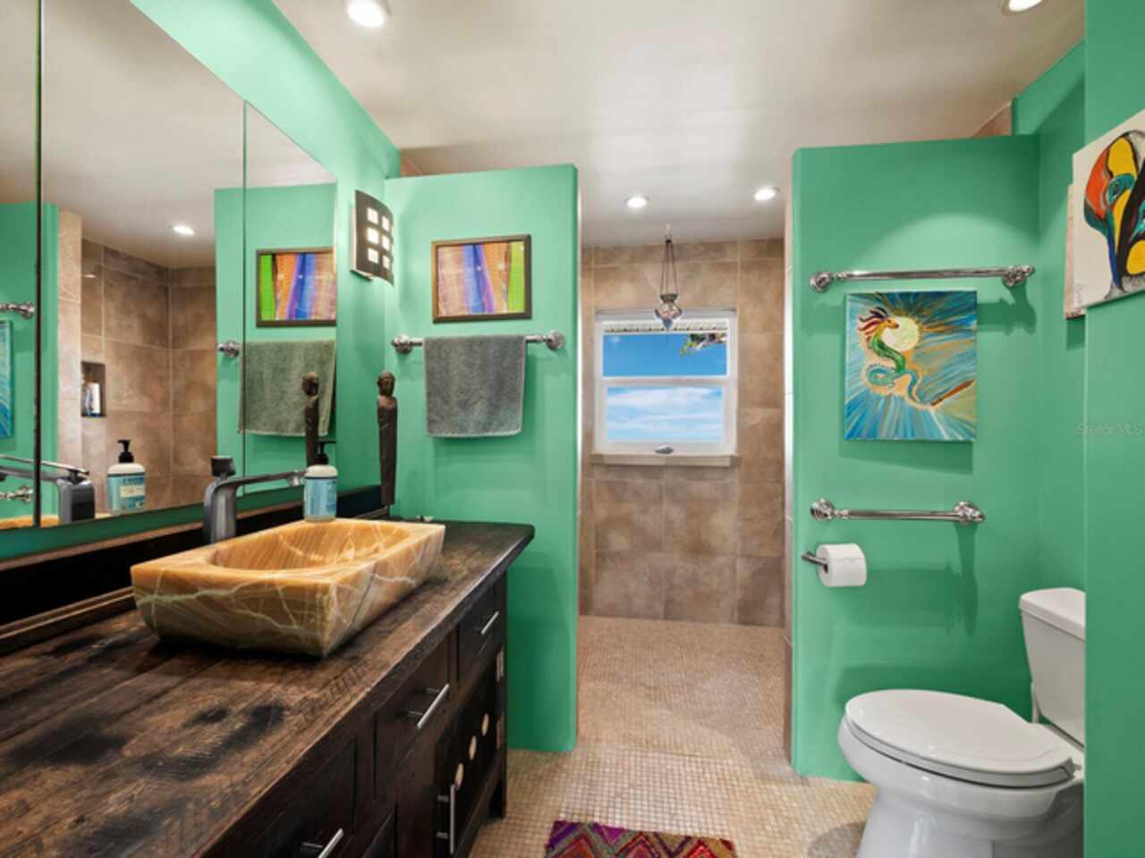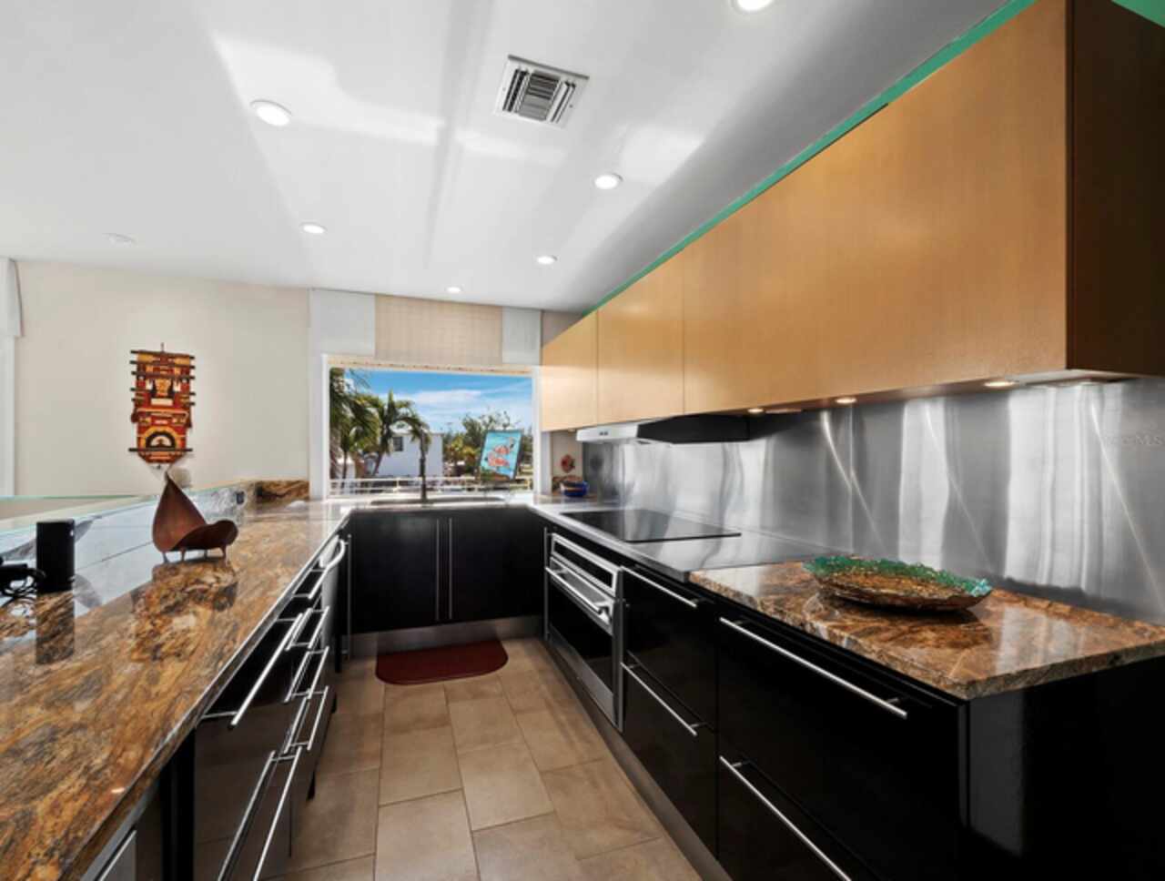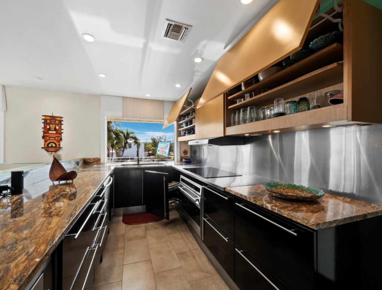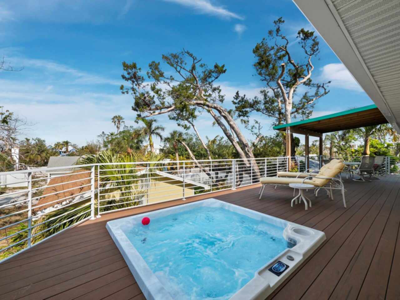 HUGH PRICE REDUCTION!!!Welcome to historic Longbeach Village, the first neighborhood, established on Longboat Key in 1885. As you enter The Village you will notice a variety of architectural home styles from the 1930s to the present day reflecting the diversity of the folks who live here. This wonderful home has stunning water views of Sarasota Bay, The Village harbor with its small public beach, the town dock, and the boat ramp all of which serve as community gathering spots to launch your boat, kayaks, canoes, and view sunrises, sunsets, dolphins, manatees, and aquatic birds. Pelicans love this placid harbor. Capture and immerse yourself in these magical surroundings from the spacious elevated second level front deck. The open concept great room with the three sets of French doors and seven windows is flooded with natural light. The kitchen offers bay views and will be the envy of amateur as well as gourmet cooks. Here you will enjoy a Sub-Zero refrigerator, two drawer Sub Zero freezer, Wolf 5 burner range, large Wolf oven, Miele steam oven, Tanzanian granite counter tops, custom German cabinets, large and deep storage drawers, workstation, and travertine floors. The great room includes an abundance of recessed lighting and a free-standing wood burning fireplace on a raised hearth as well as a dining area with a distinctive wood table, benches, and chairs. The primary bedroom has water views, access to the wrap around deck through sliding glass doors, and a large walk-in closet, en-suite bathroom with striking wood vanity and marble-like glass sink and dual rainfall shower heads. The powder room off the great room has high end fixtures. The guest bedroom has twin beds, a ceiling fan and rolling shades to keep the light out. The adjoining room could function as an office, art studio, or an extra bedroom. The bathroom has a shower stall and a walk-in closet. The oversized two car garage has hurricane reinforced doors, windows, a work bench, ample shelving throughout and peg boards for tools. A composite “wood” deck that is impervious to rot and insects, surrounds the entire house creating massive outdoor living space. The back deck, overlooking a beautifully landscaped yard, has a heated hot tub, a dining area which has a new awning, and a staircase leading to the backyard, guest house/studio, and new two-person barrel sauna in 2023. The guest house/studio was totally renovated by current owners in 2015 with new Hardi Board siding and insulation. It could also serve as a recreation room with pool table etc. All windows throughout the structures are hurricane compliant. Meticulous and impeccable pride in ownership can be found in every detail throughout! From this lovely home you can walk to the beach, five restaurants, and Whitney Beach shopping center. The Centre Shops with dining, boutiques, hair salon, UPS store are about three miles south. Bradenton Beach, with its multiple attractions, is less than 1 mile north. Famous St. Armands Circle is eleven miles south. The Villagers meet once a month from October to April for socializing and gathering updates on LBK activities. Offered furnished, completely outfitted, and move in ready excluding original artwork and some personal items.