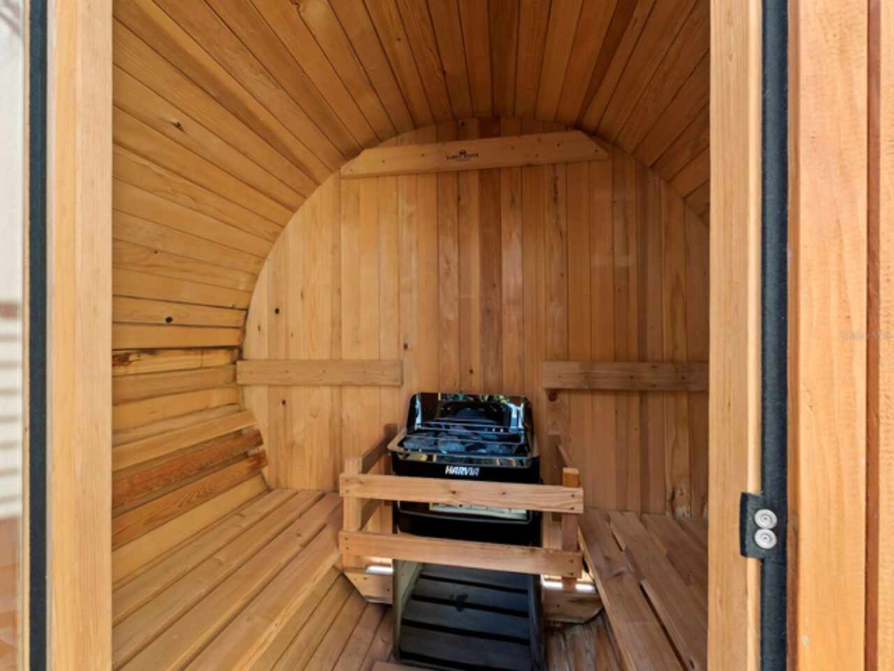 Awning(s), French Doors, Lighting, Outdoor Shower, Private Mailbox, Sauna, Sliding Doors, Sprinkler Metered, Storage